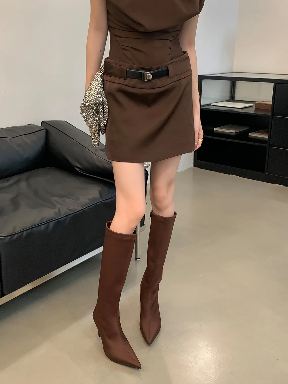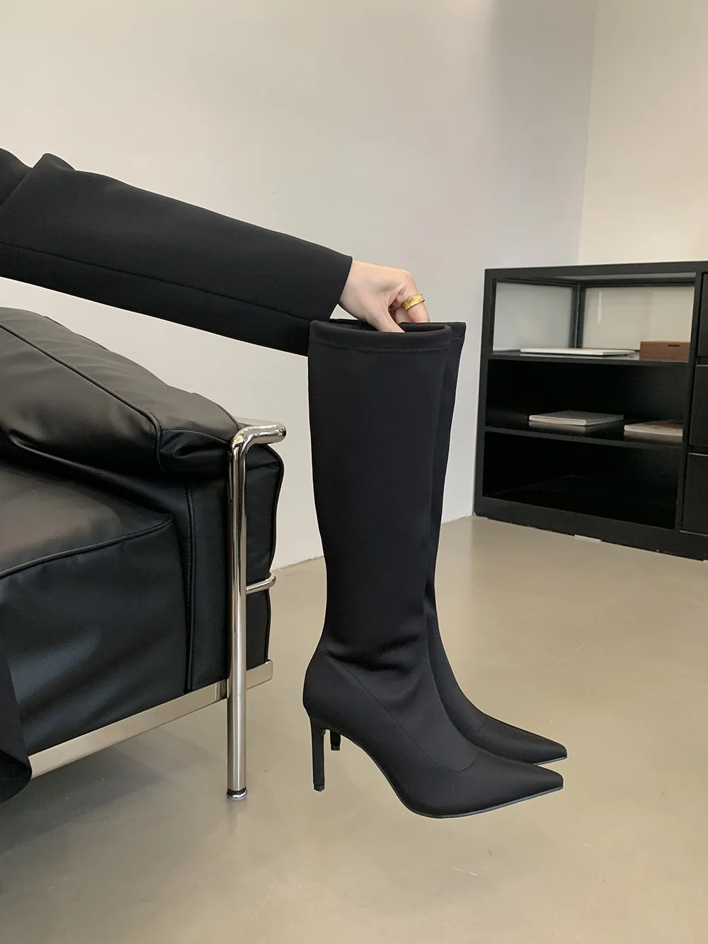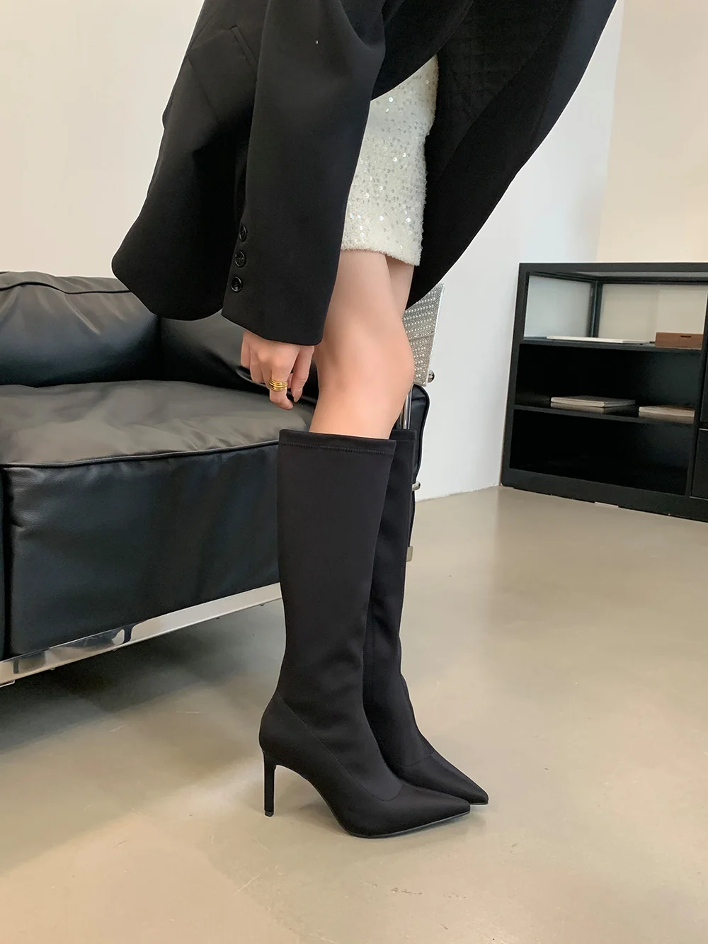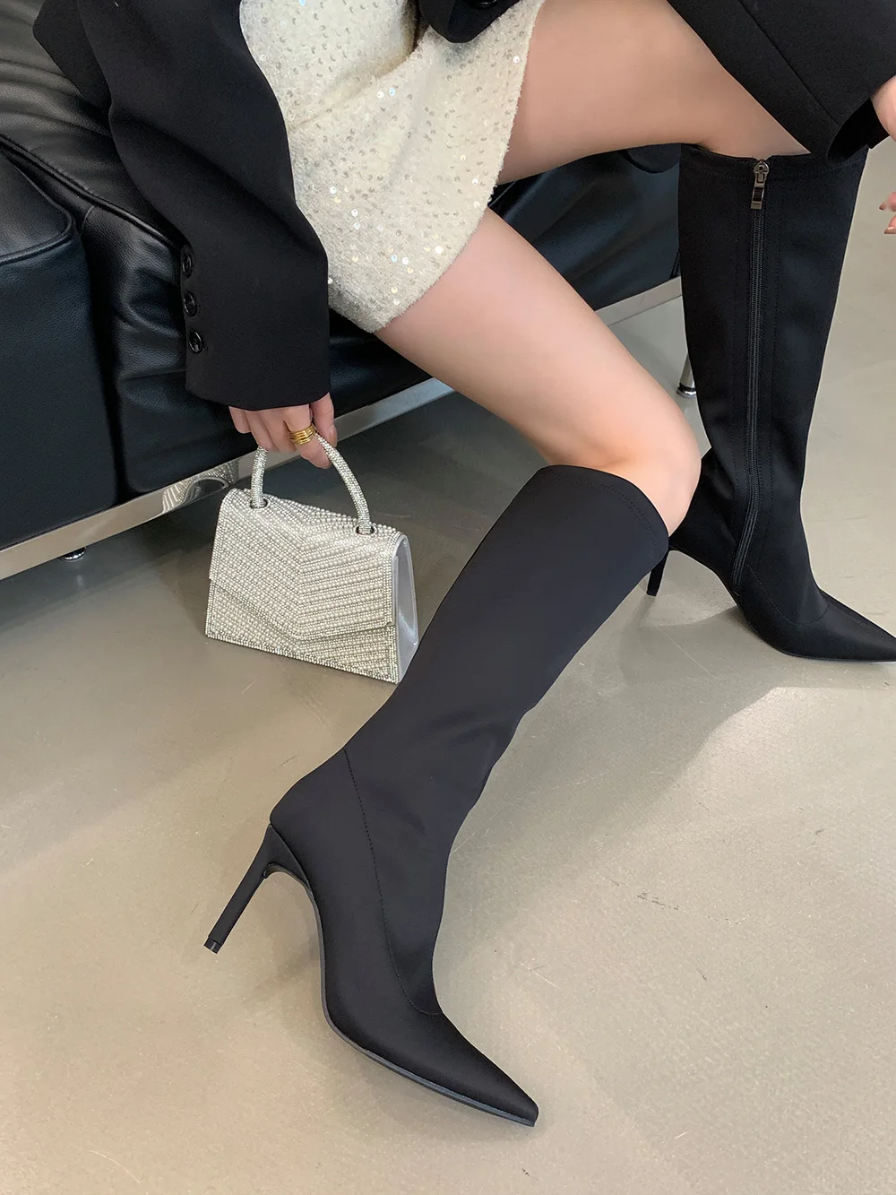 LBSFY - Black Purple Brown Women Knee High Boots Chelsea Botas Thin High Heels Side Zipper Party Pumps Shoes Winter Boot Woman Gladiator