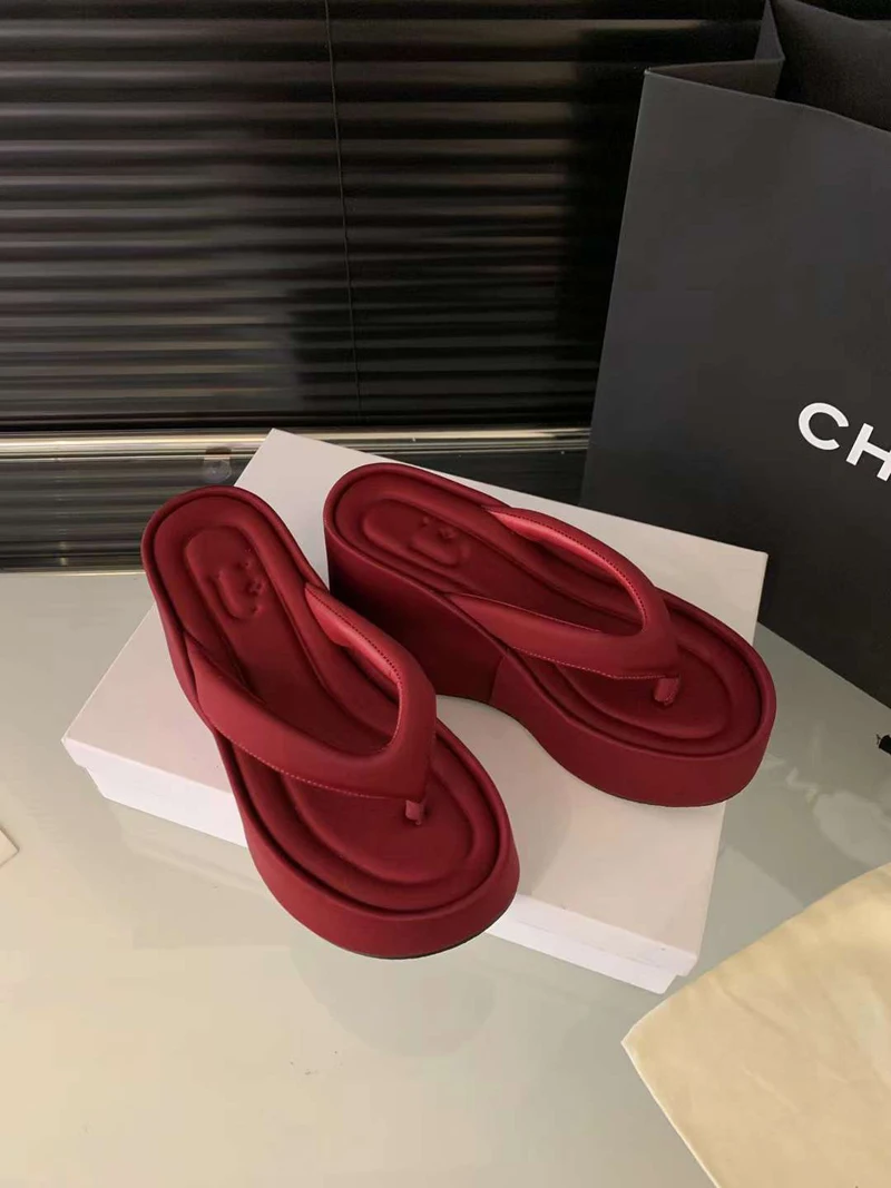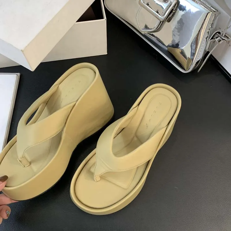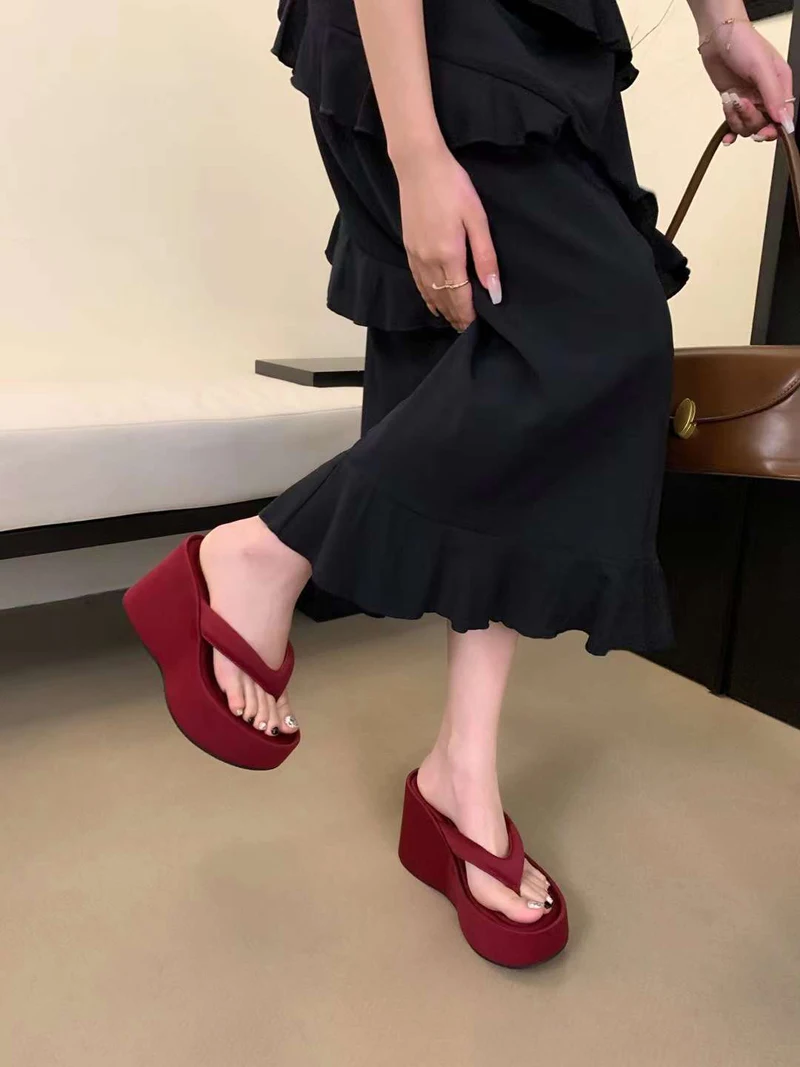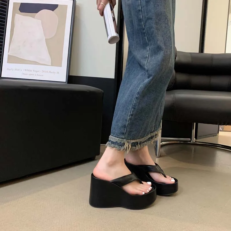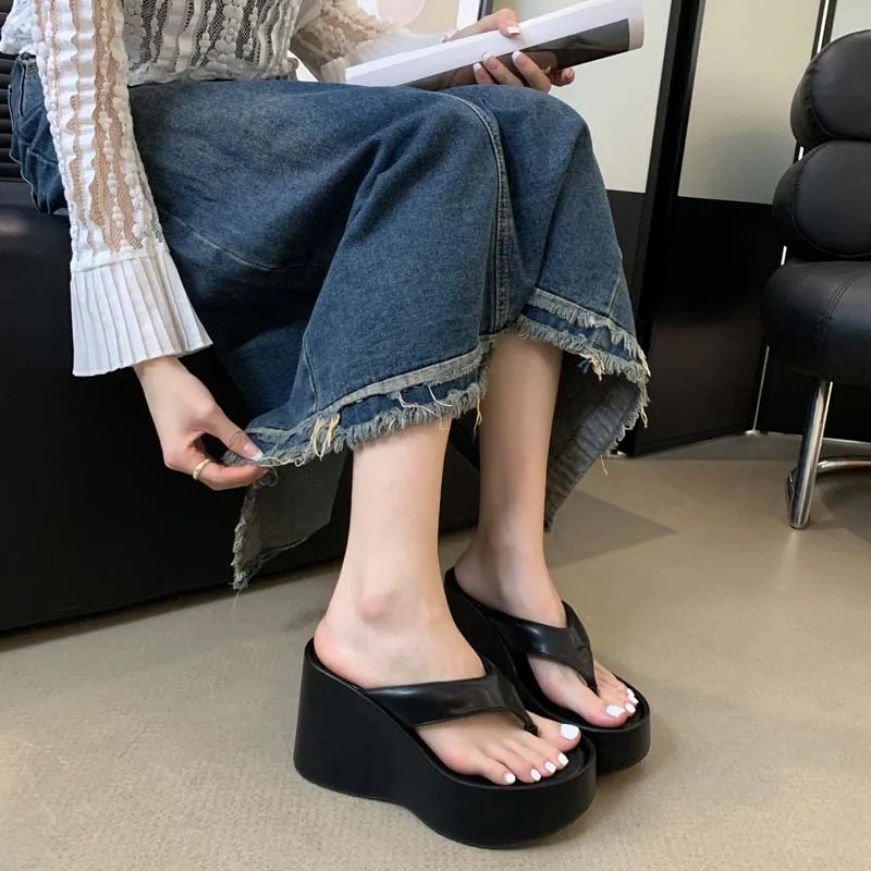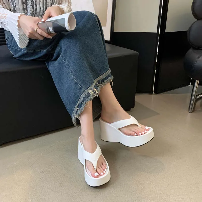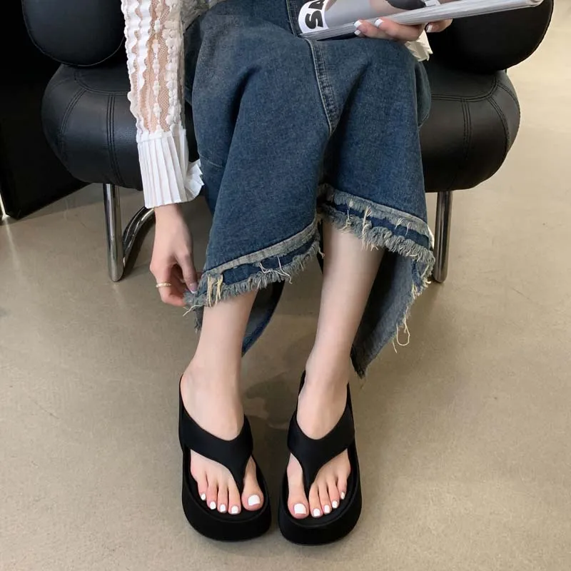 LBSFY - Black Slippers Women Platform Flip Flops Wedges Sandals Outdoor Summer Ladies Shoes White Beach Slippers 2024 Zapatos De Mujer