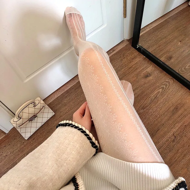 Lbsfy Black White Lolita Hollowed Lace Mesh Stockings Women Bottomed Pantyhose Japanese Goth Thin Stocking Hot Classic Tights