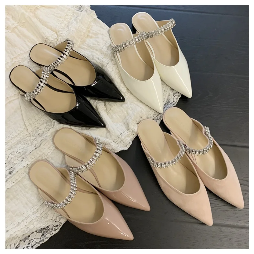 LBSFY -Bling Diamond Slippers Fashion Brand Close Toe Mule Shoes Women Slides Flats Ballet Outdoor Flip Flops Ladies Shoes Loafer Mujer
