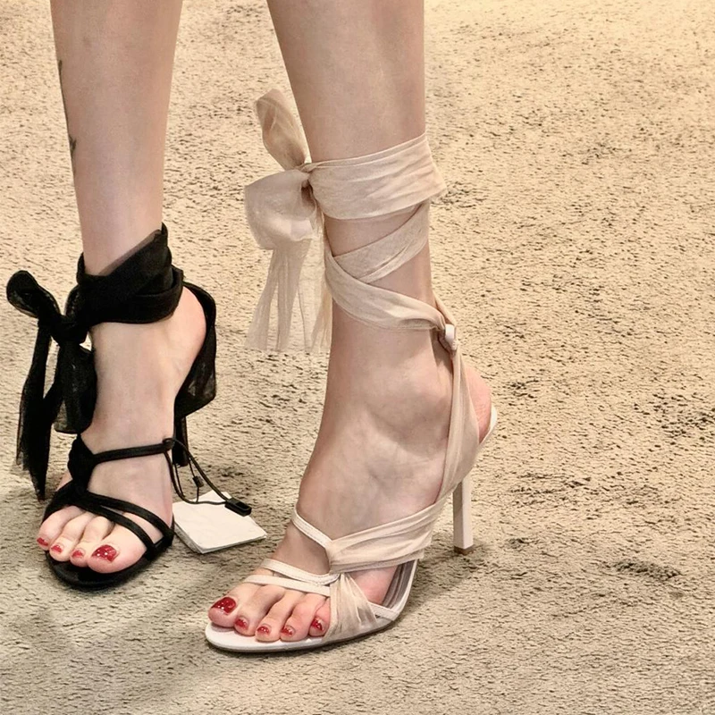 LBSFY - Bohemian Style Summer Women Sandals Fashion Ankle Lace Up Pumps Ladies Outdoor Party Dress High Heel Sandalias