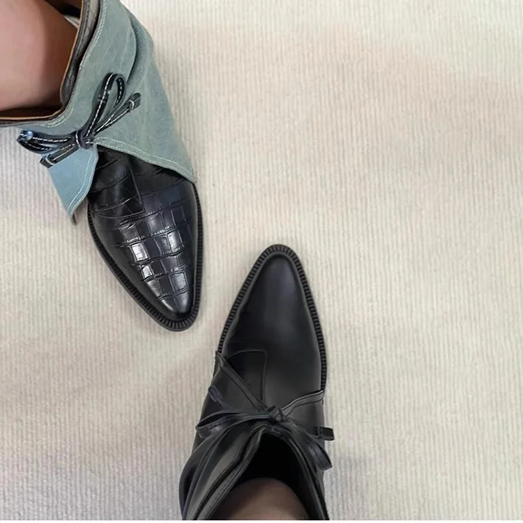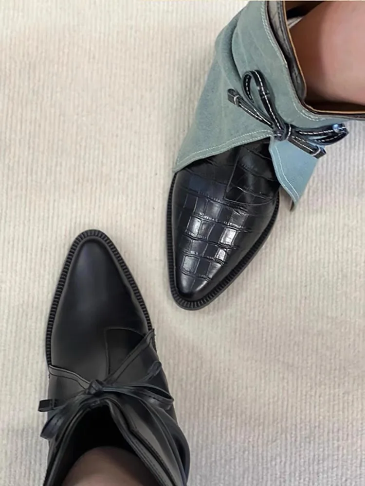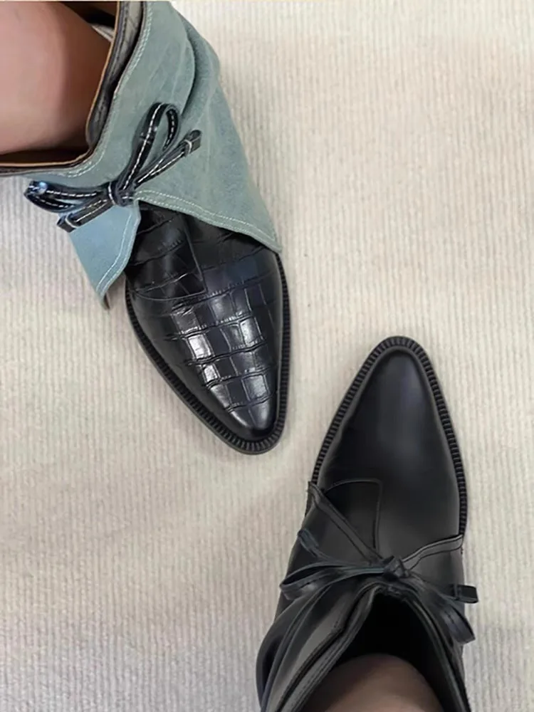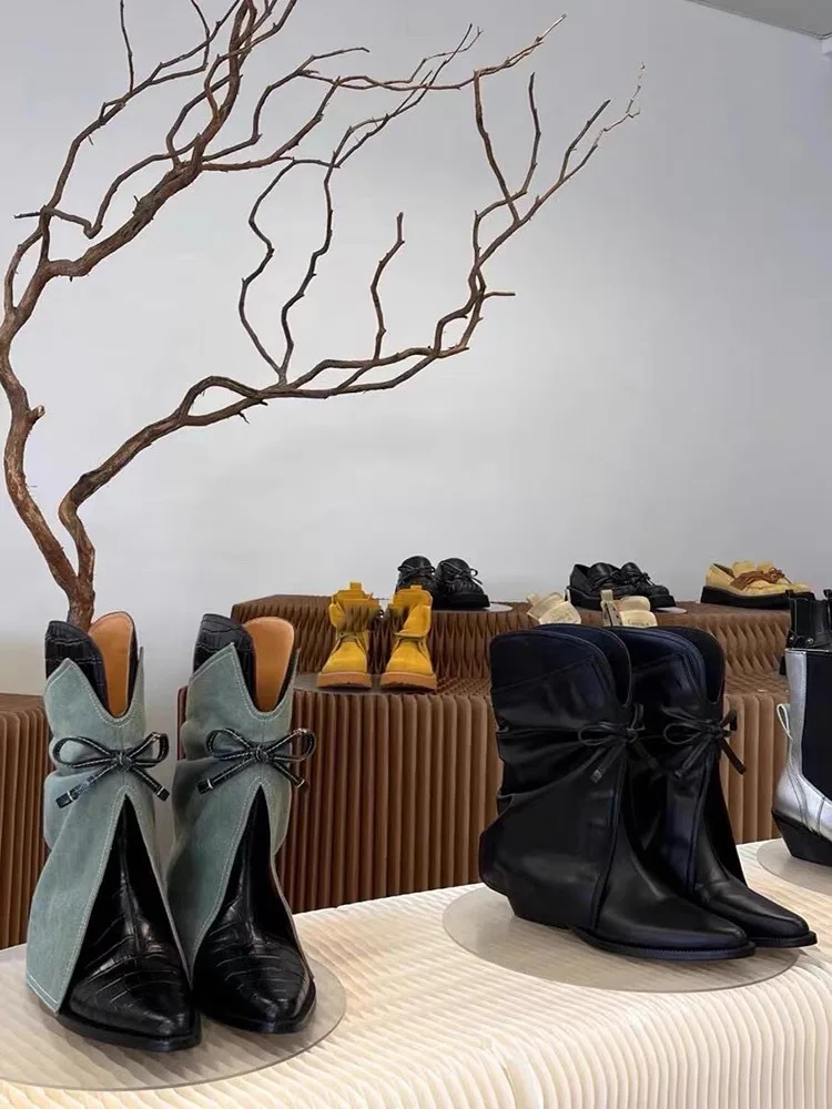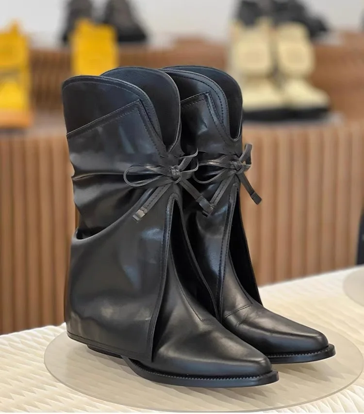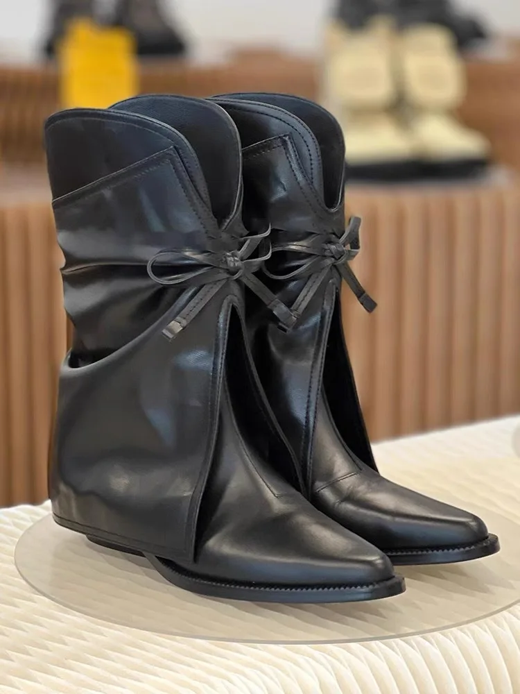 LBSFY - Bow Western Cowboy Boots for Women 2024 New Pointed Slope Heel Chelsea Mid Short Boots