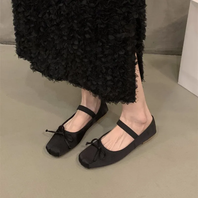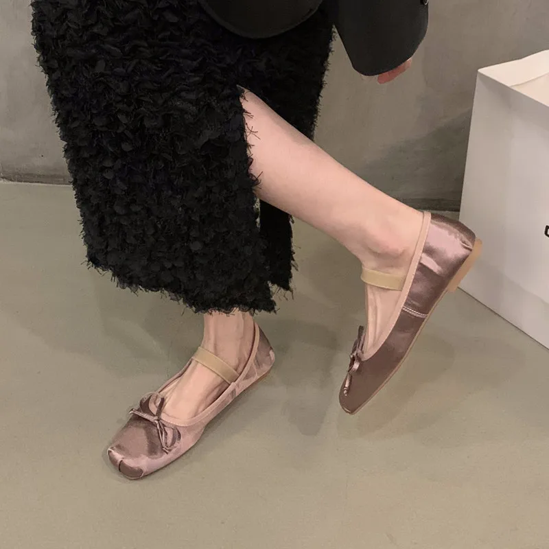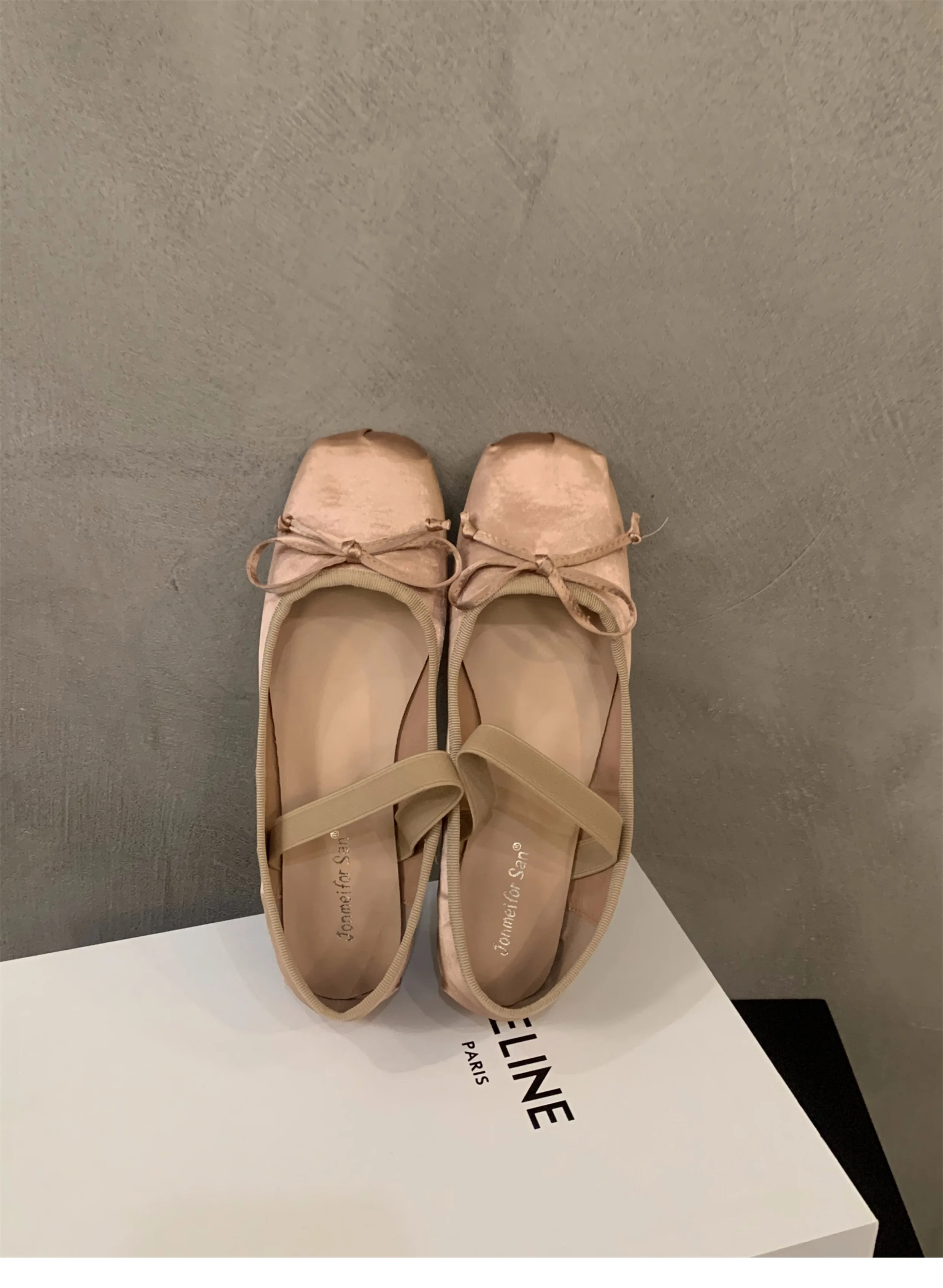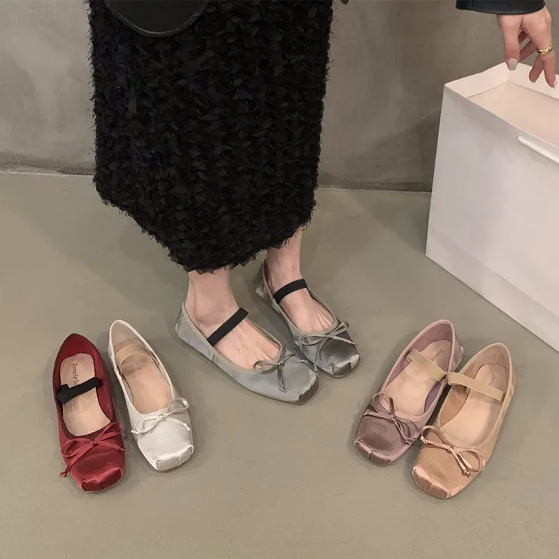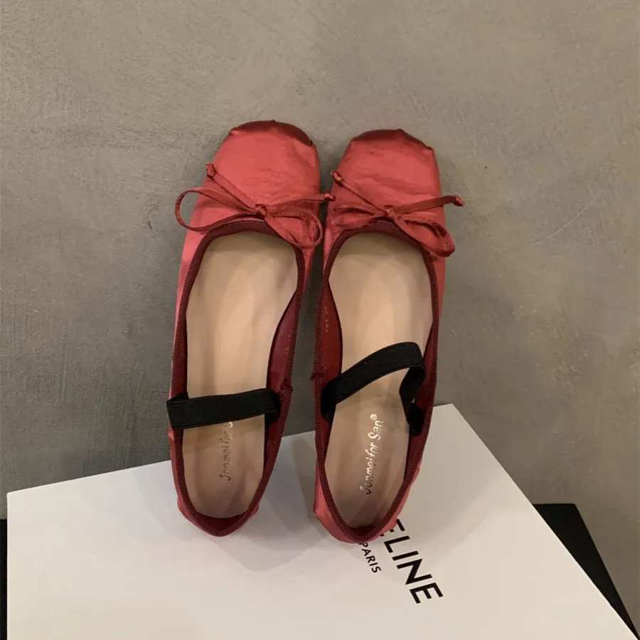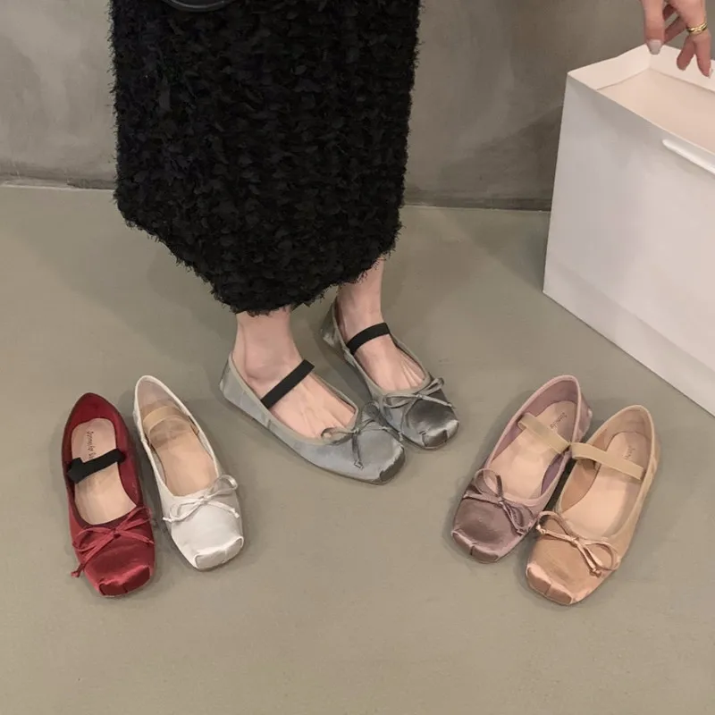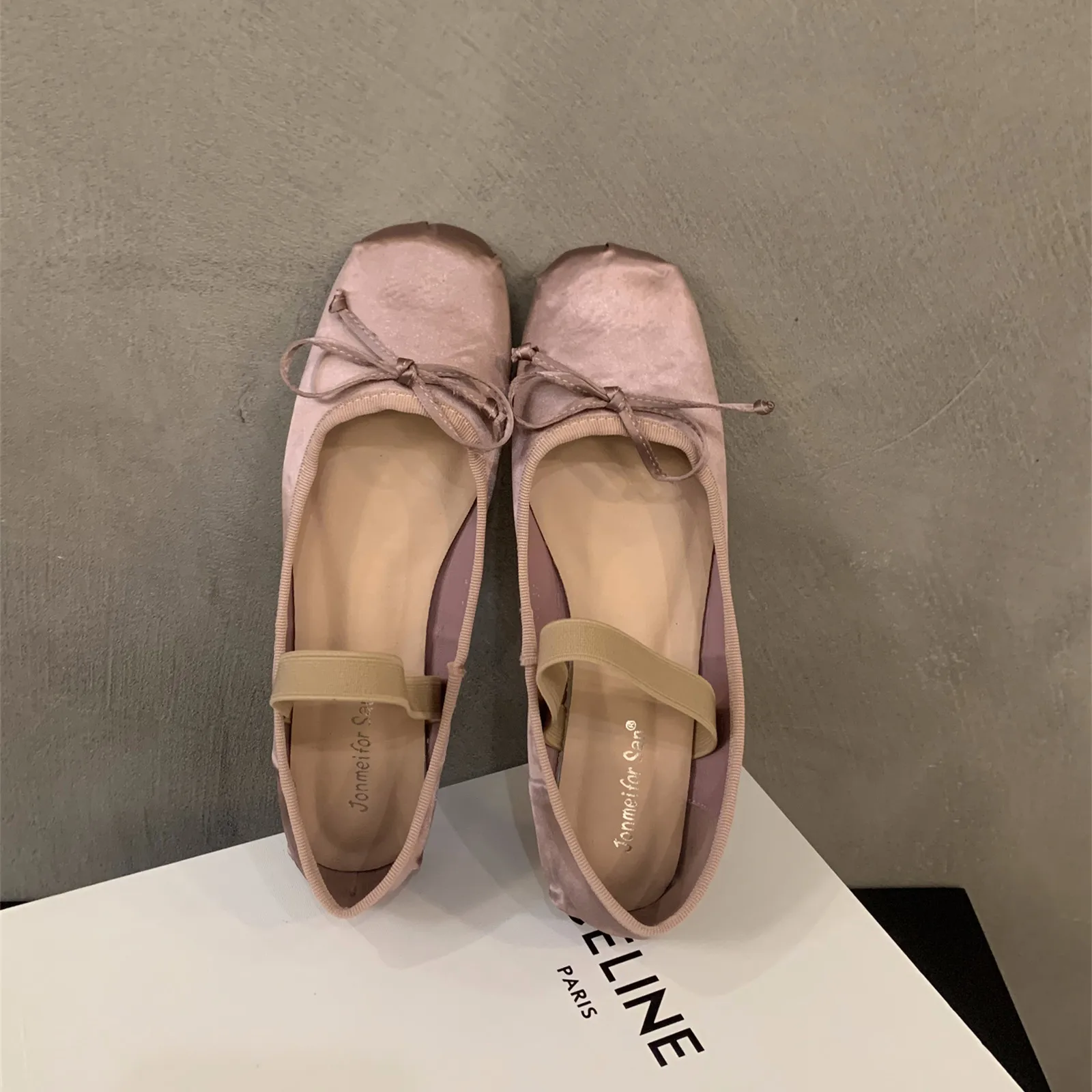 LBSFY -Brand Luxury Satin Silk Ballet Shoes Woman Classic Square Toe Bowtie Elastic Band Ballerina Flats Ladies Soft Loafers M