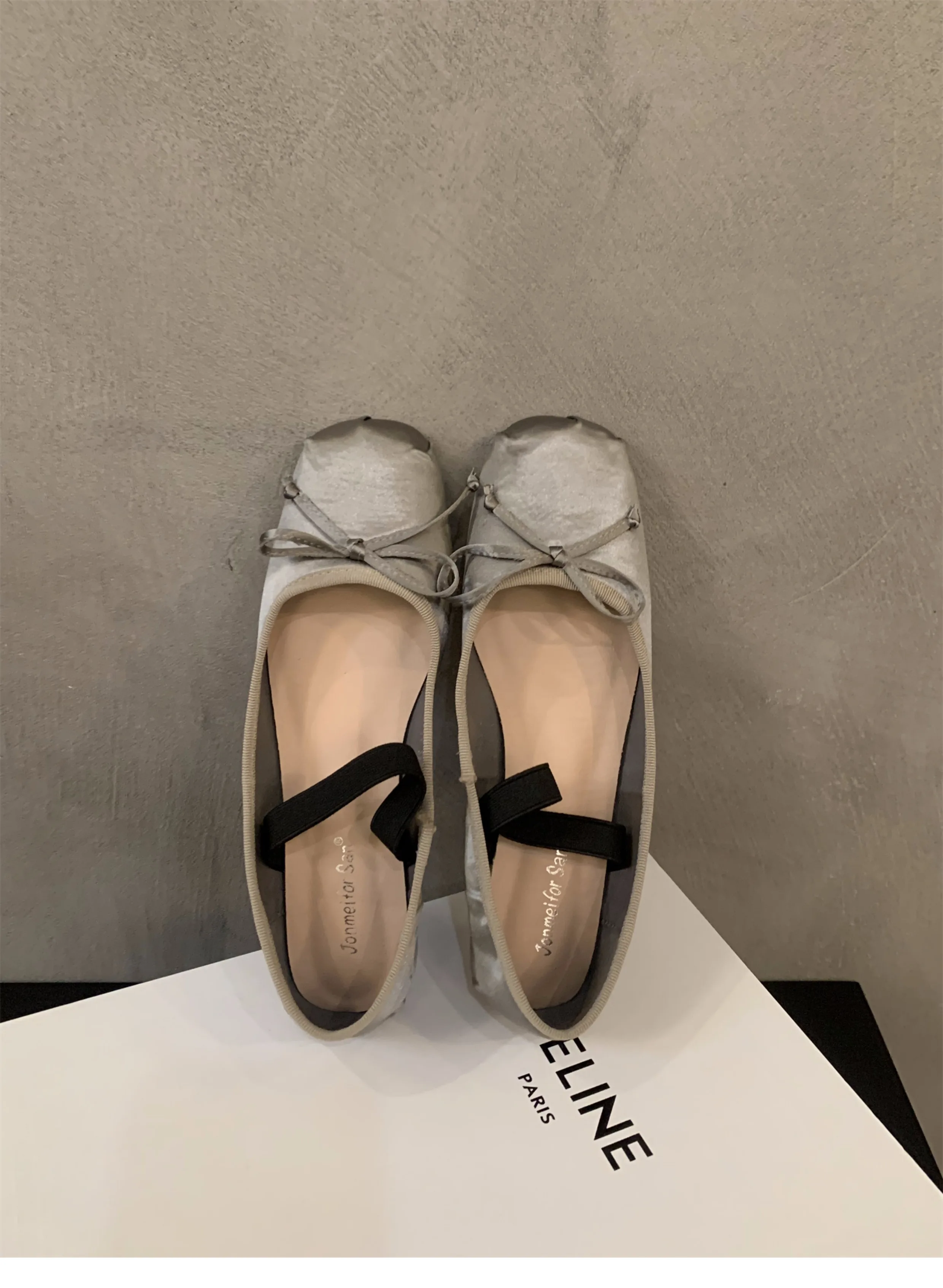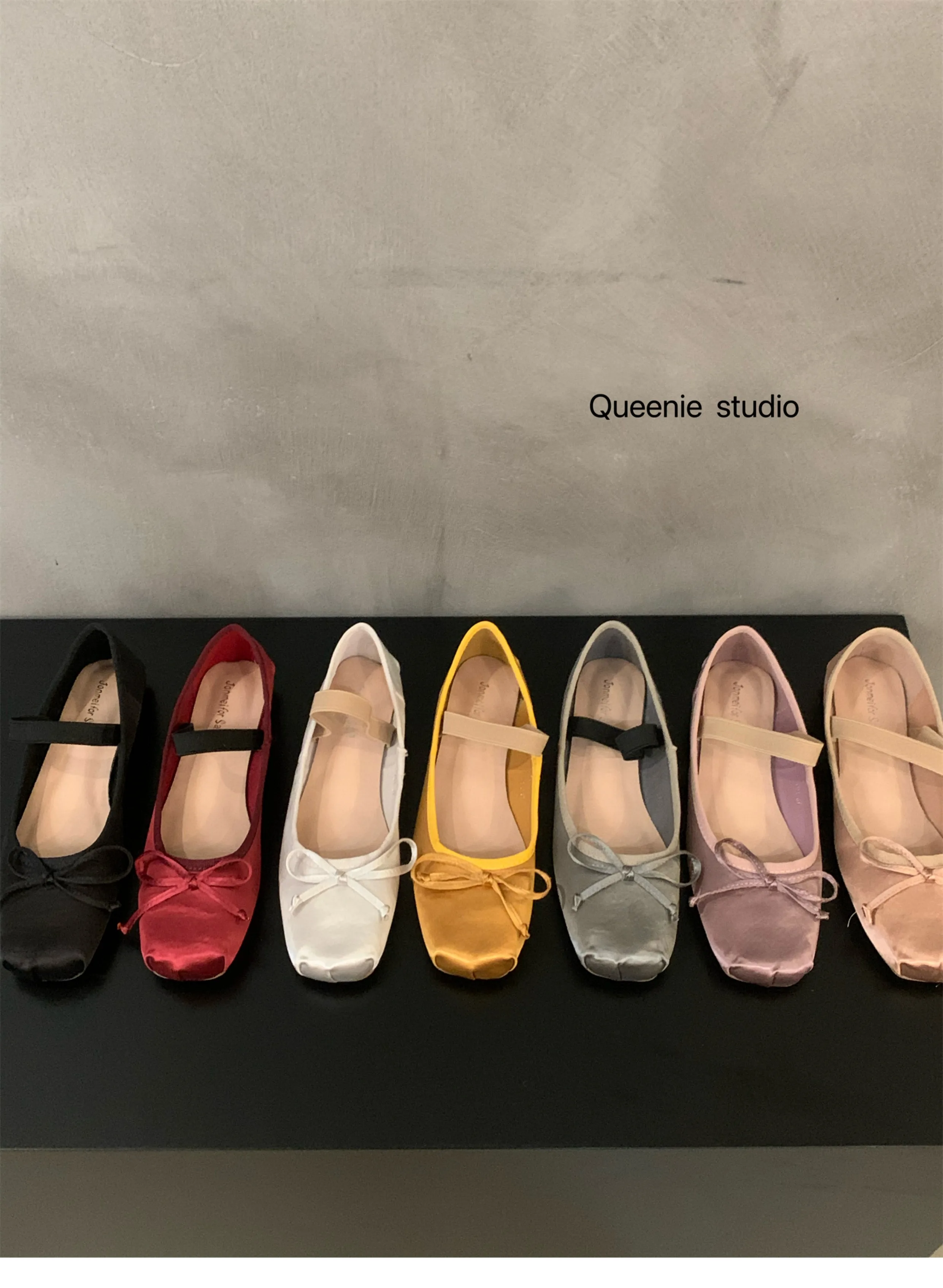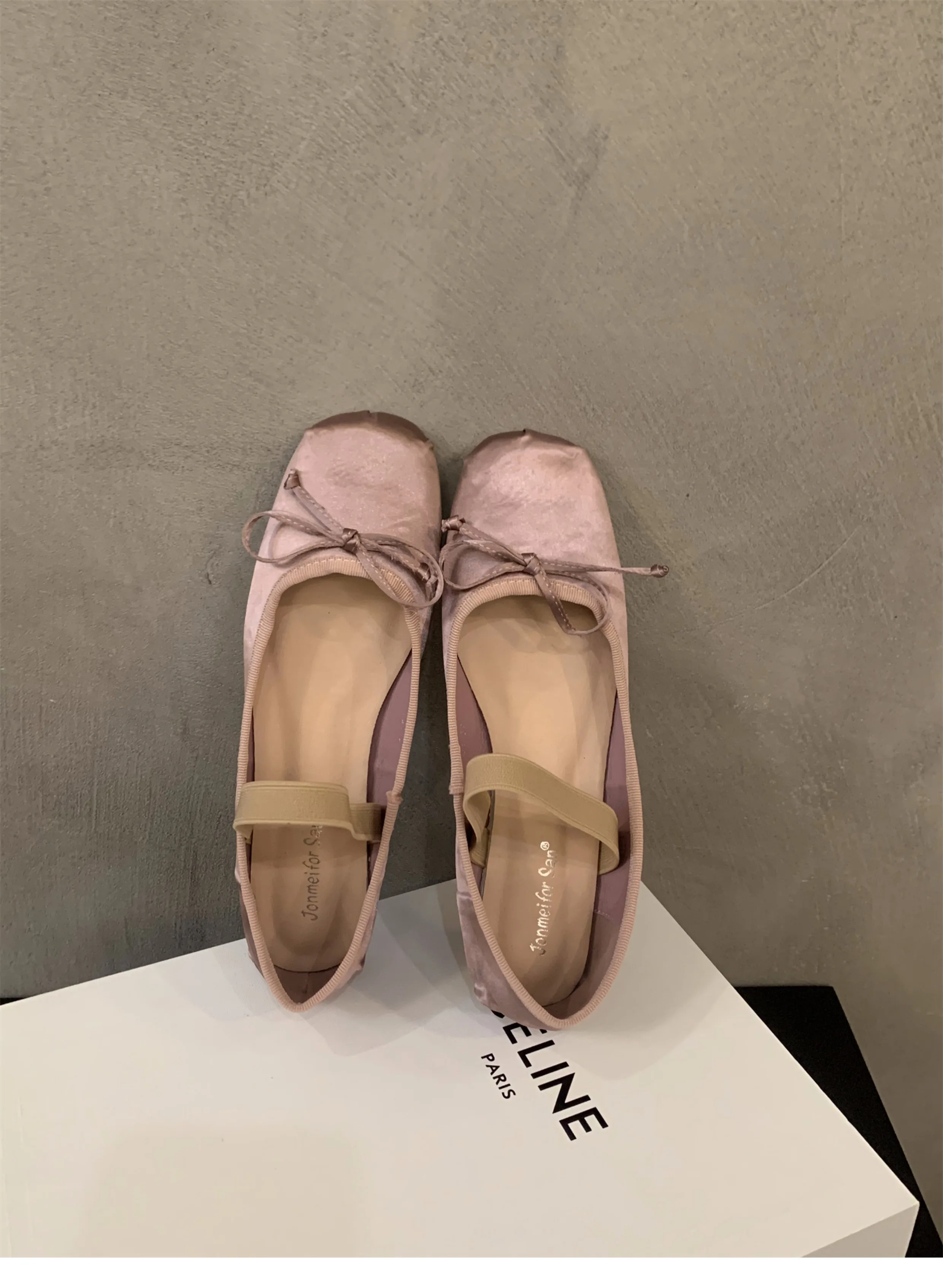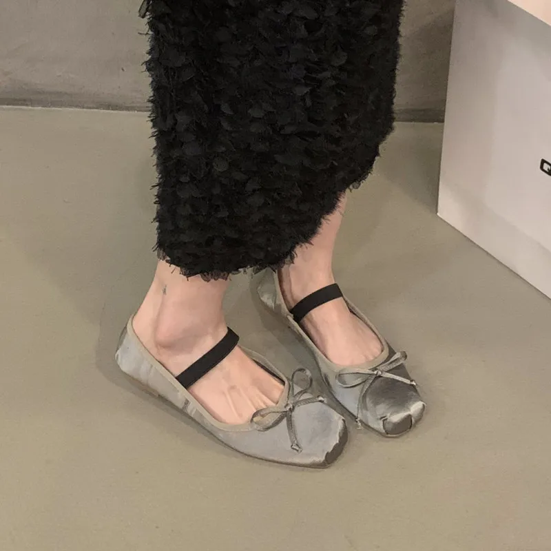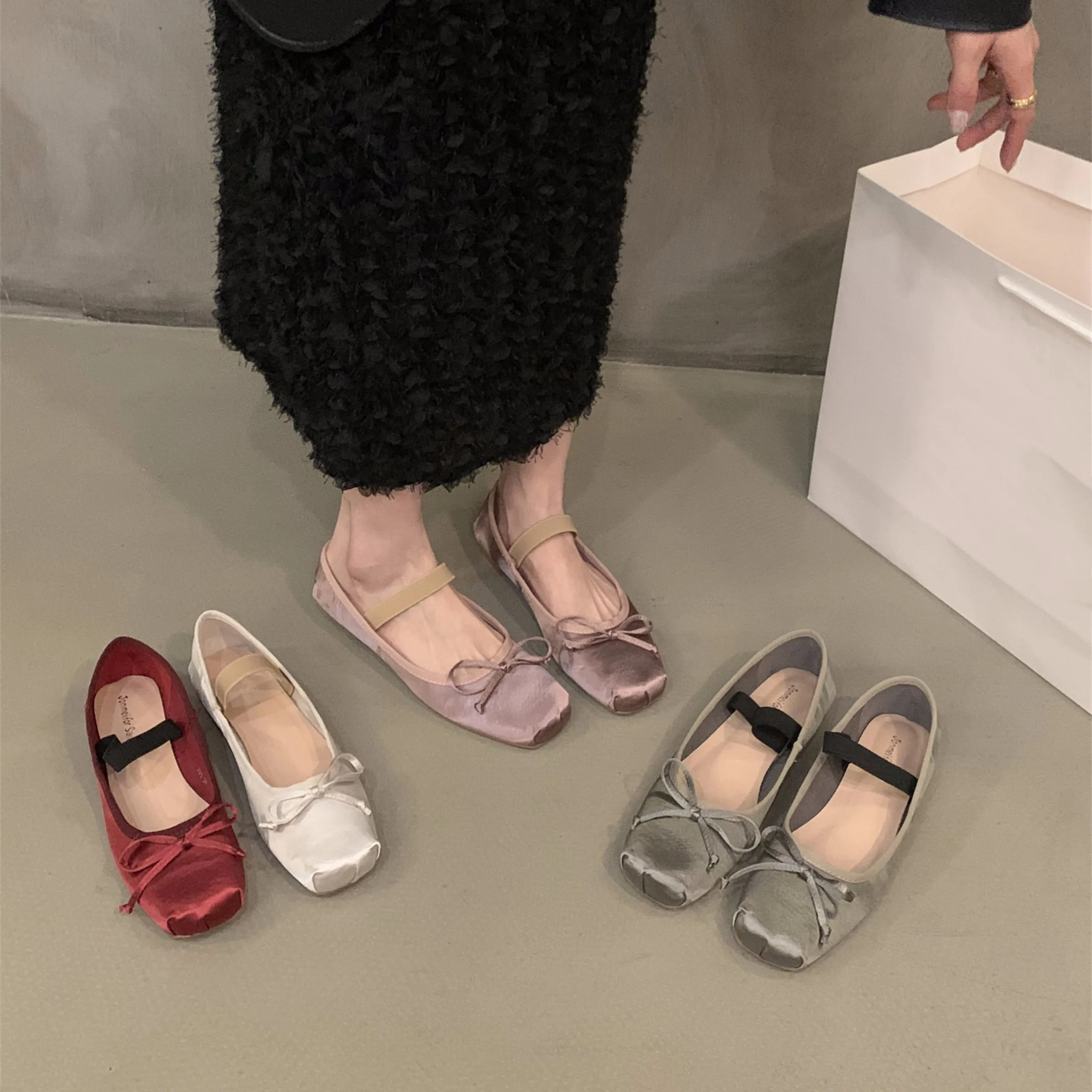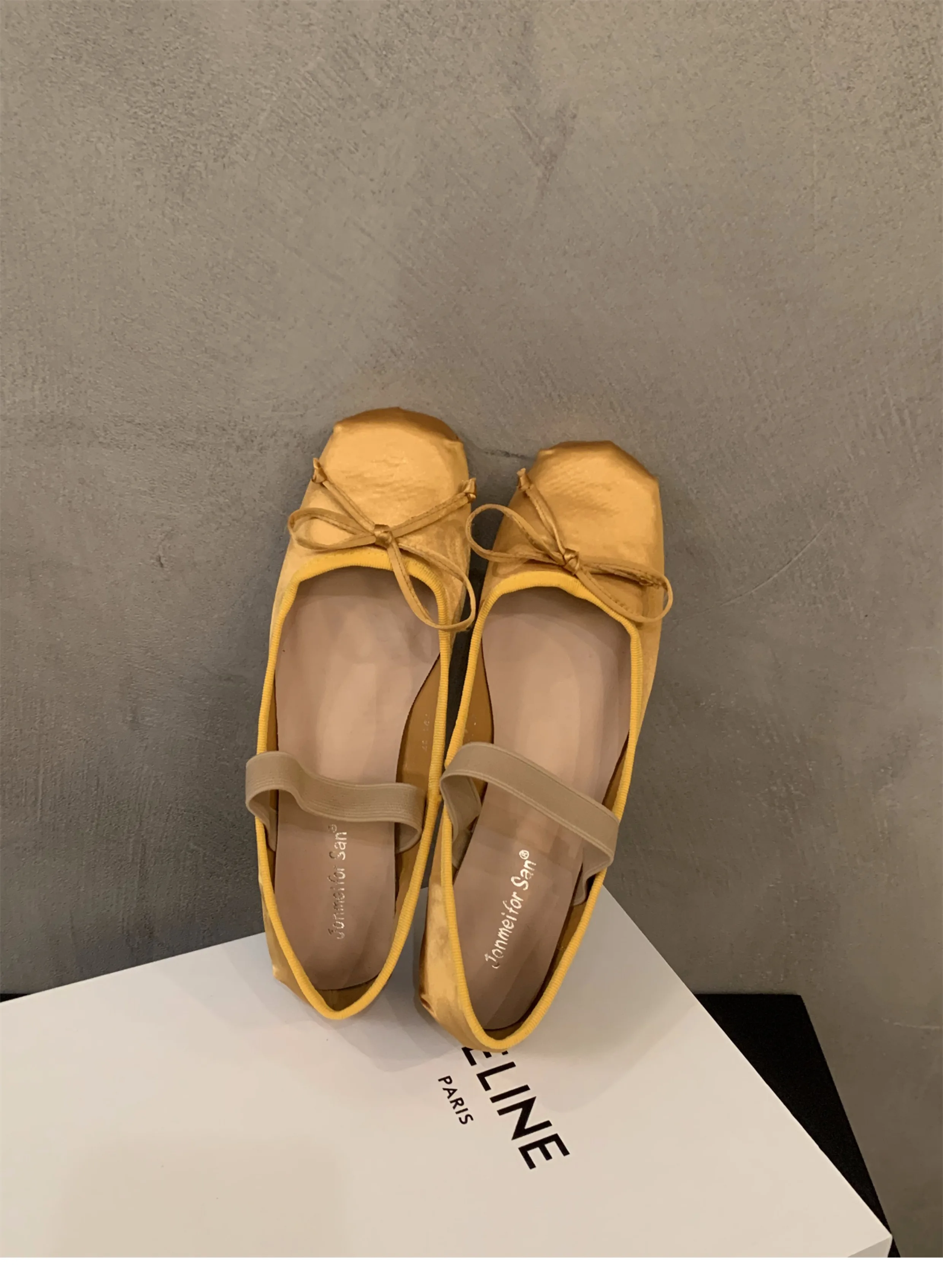 LBSFY -Brand Luxury Satin Silk Ballet Shoes Woman Classic Square Toe Bowtie Elastic Band Ballerina Flats Ladies Soft Loafers M