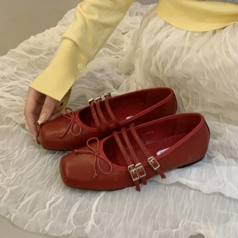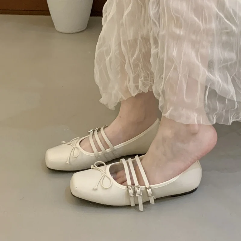 LBSFY -Brand New Women Flats Soft Ballerinas Flat Heel Casual Ballet Shoes Fashion Square Toe Shallow Ladies Mary Jane Shoes