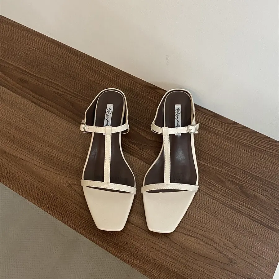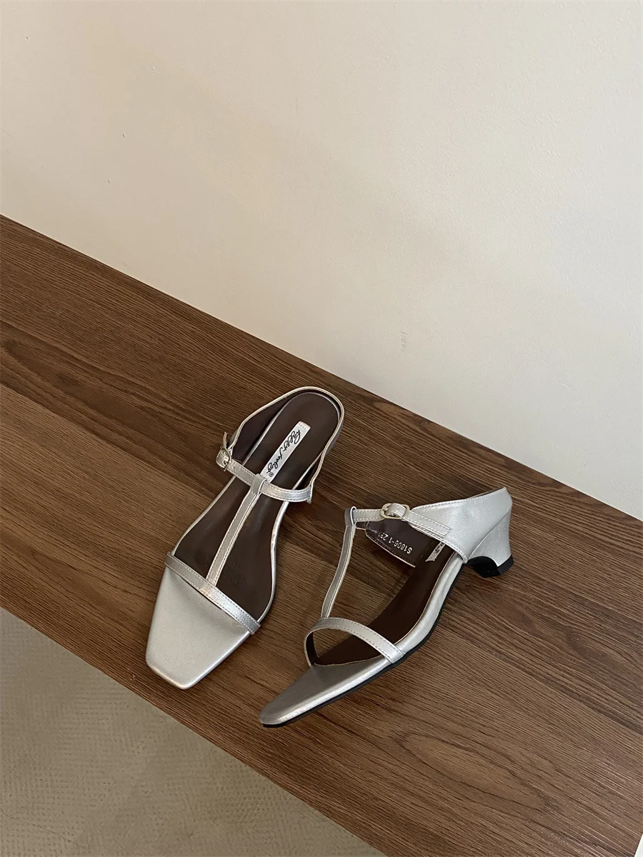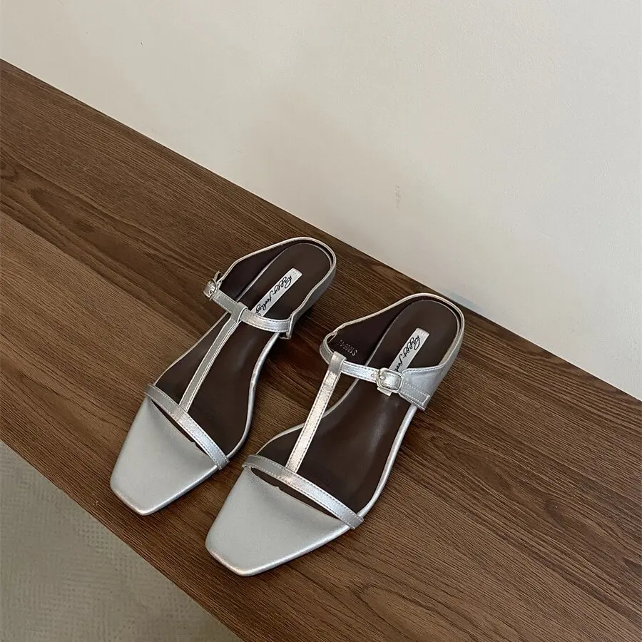 LBSFY - Brand Summer Women Slipper Square Heels Sandals Square Toe Party Wedding Shoes Slip On Beach Slides Mujer