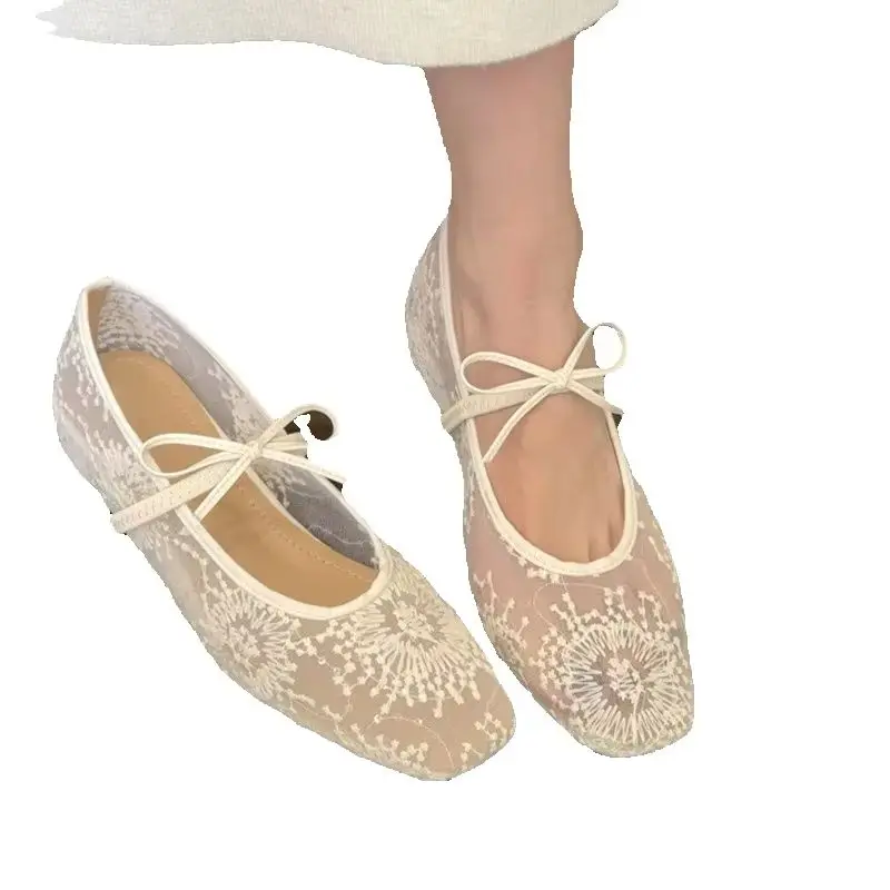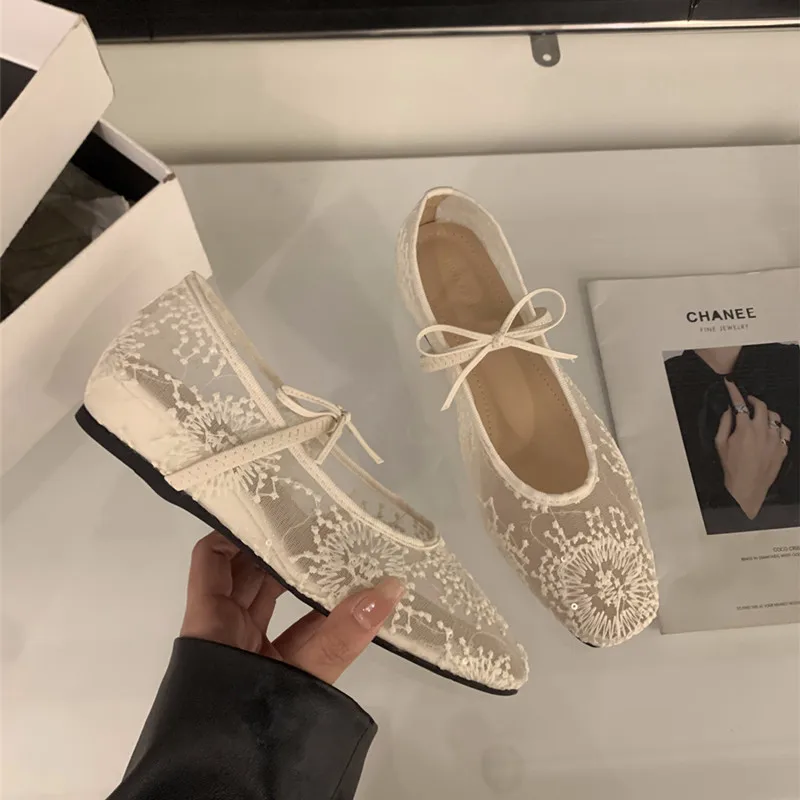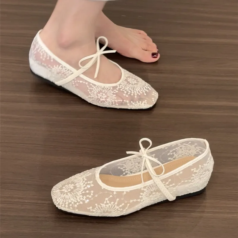 LBSFY -Brand Women Flats Fashion Mesh Flat Shoes Ladies Elegant Mary Jane Shoes Soft Sole Outdoor Dress Ballerinas Shoes