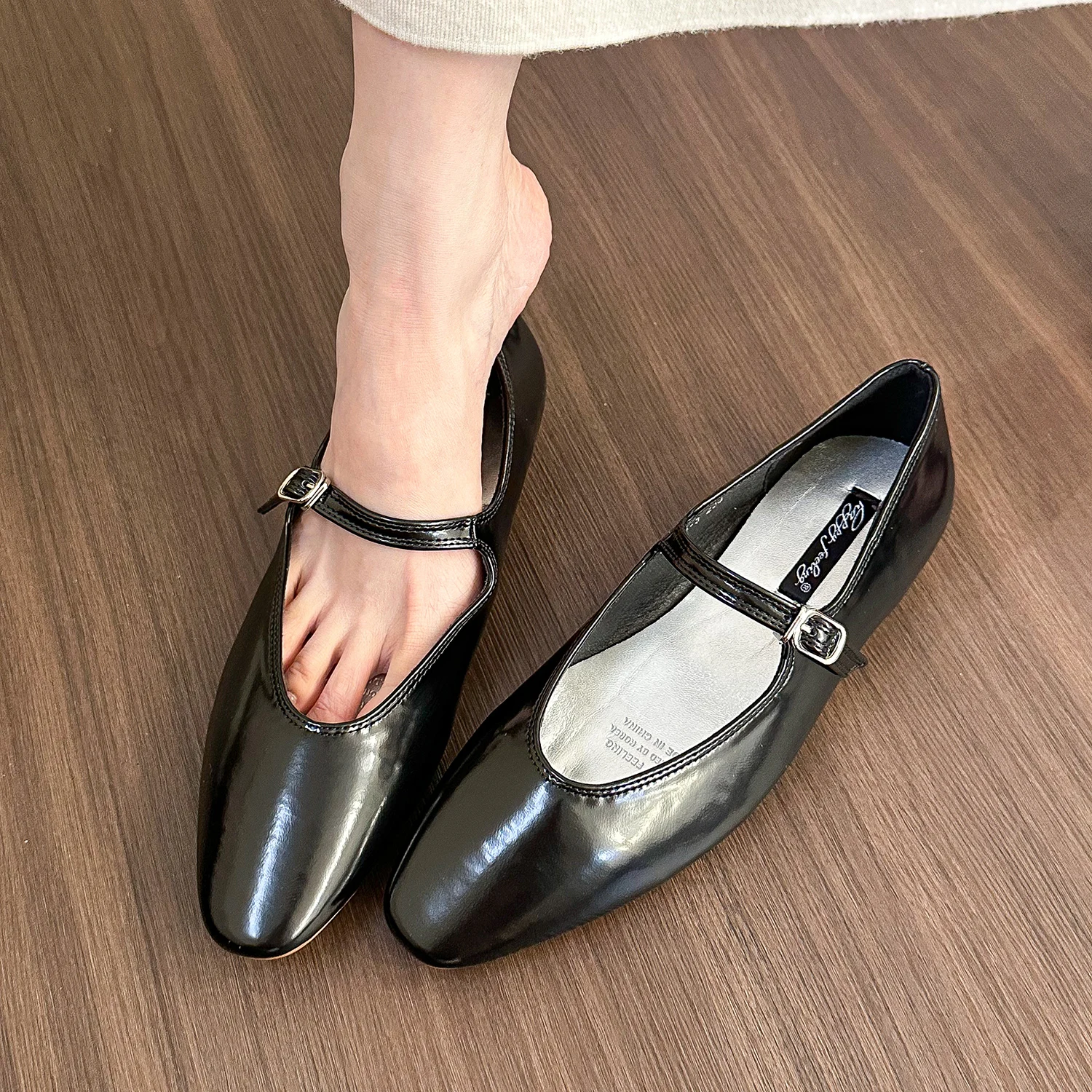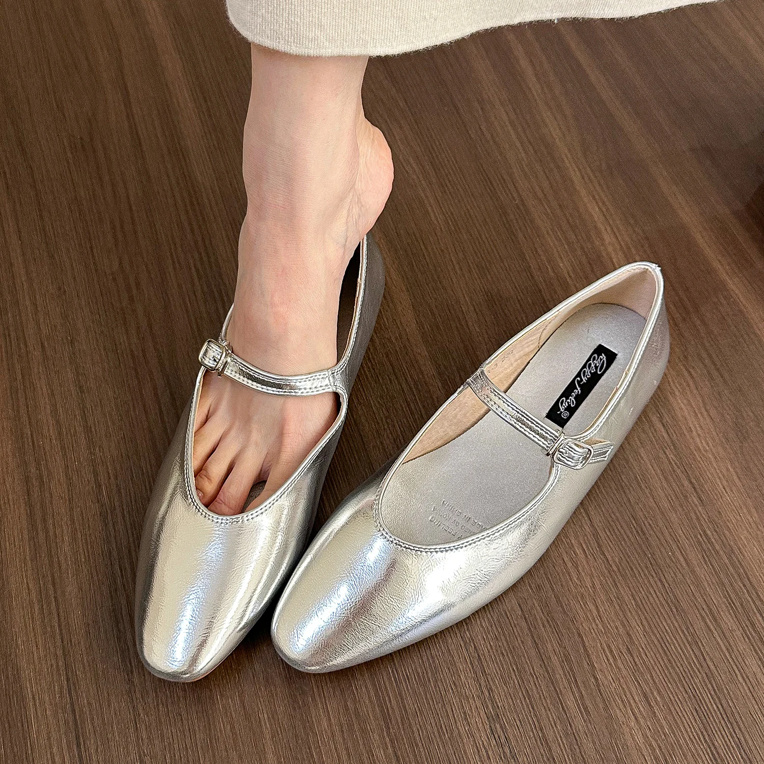 LBSFY -Brand Women Silver Flats Fashion Square Toe Shallow Ladies Slip On Ballet Shoes Soft Casual Flat Mary Jane Shoes Mujer