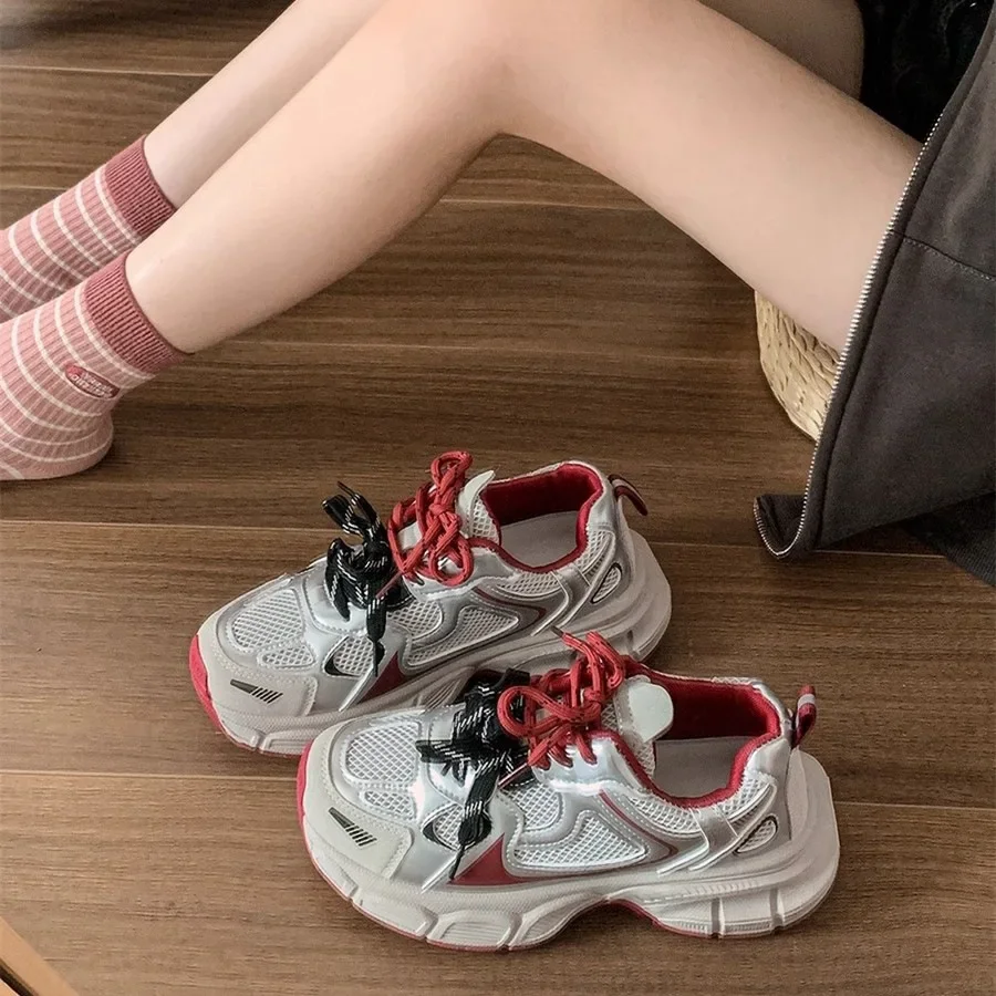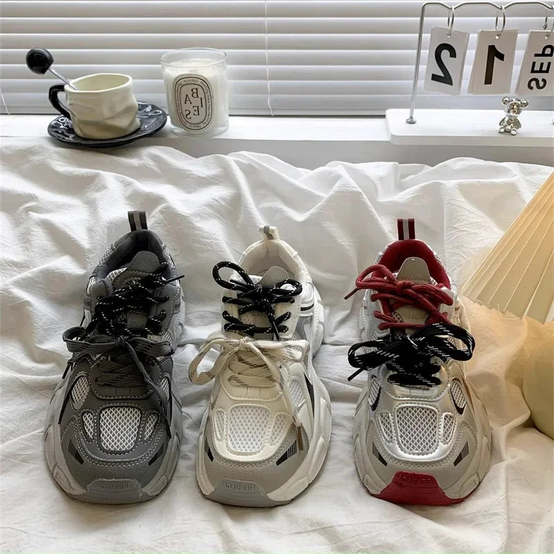 LBSFY -Breathable Lightweight Casual Sports Shoes Women's 2024 Autumn New Style Thick Sole Increased Height Versatile Trendy