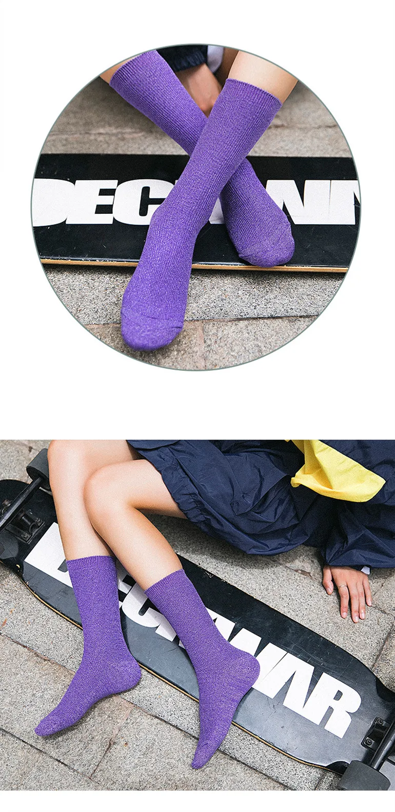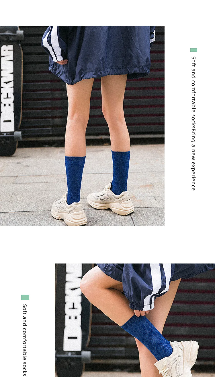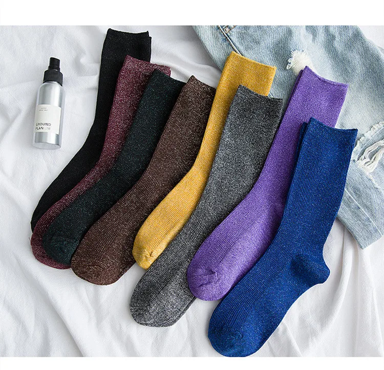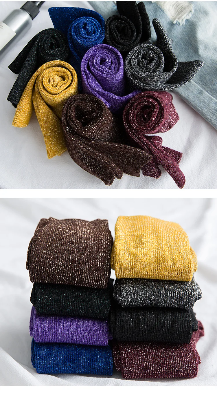 Lbsfy Bright Sparkling Women's Socks Fashion Glitter Shiny Sock Sweet Cute golden silver socks Spring Autumn Breathable Soxs