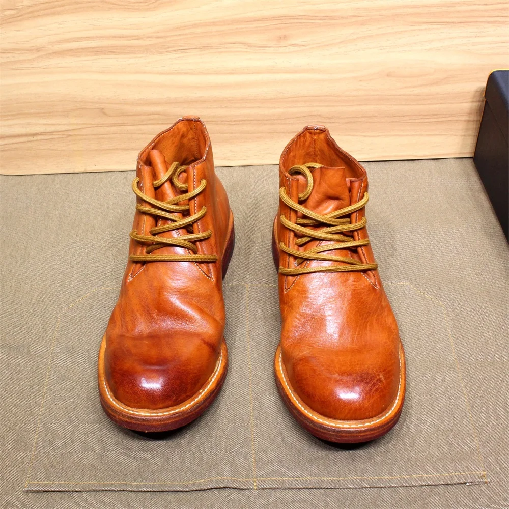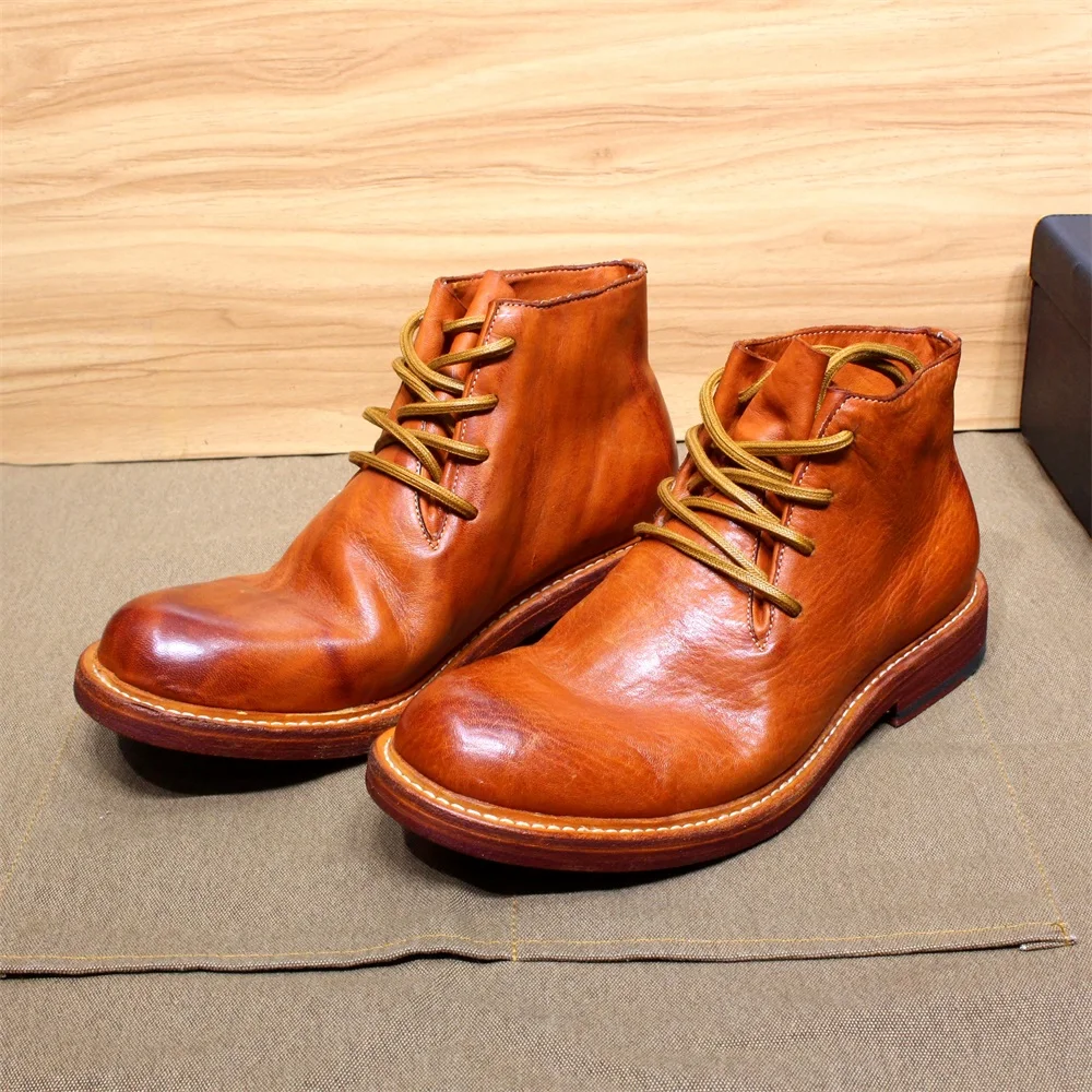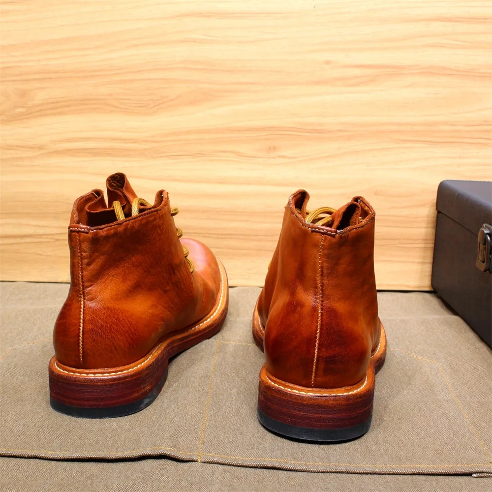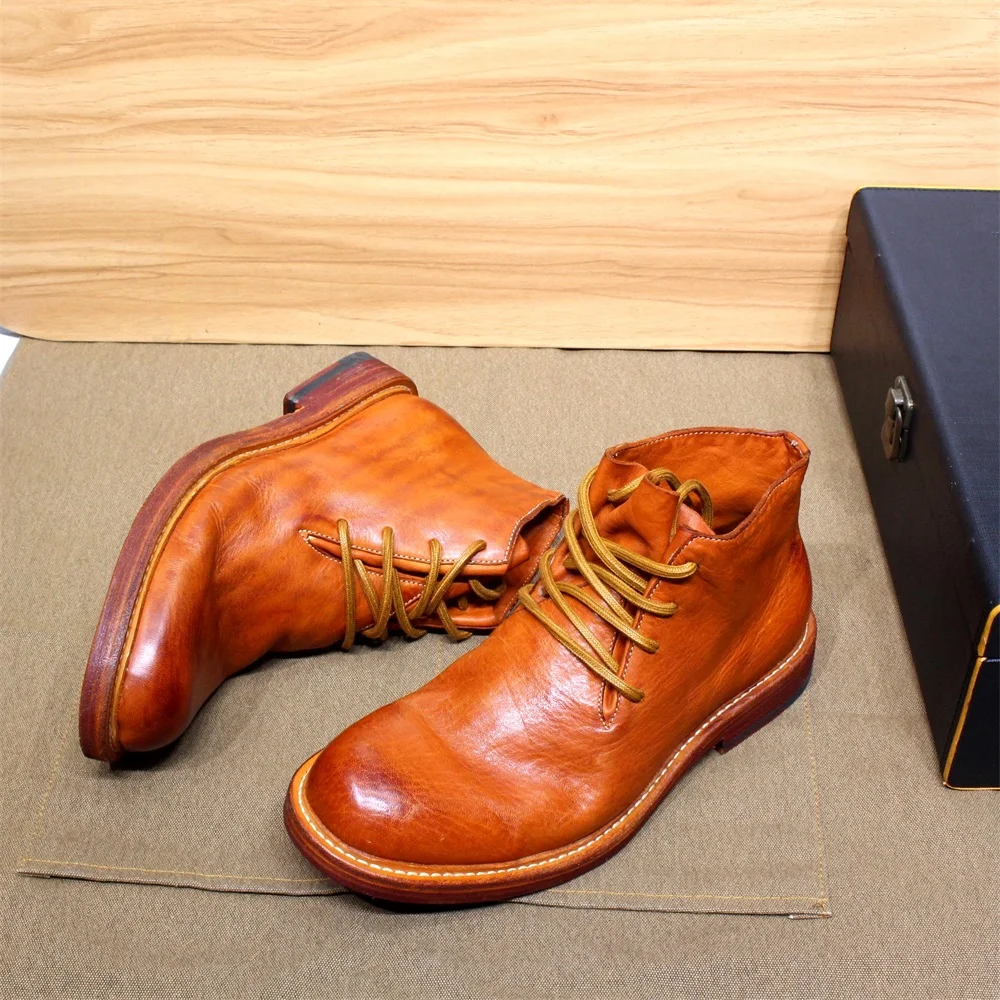 LBSFY - British Style Mens Ankle Boots Soft Calf Real Leather Handmade Motorcycle Boots Leather Sole Comfortable Lace Up Winter Footwear