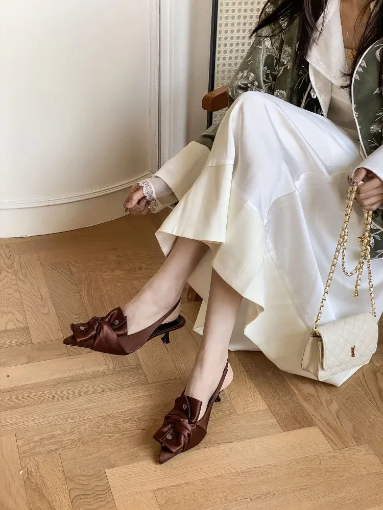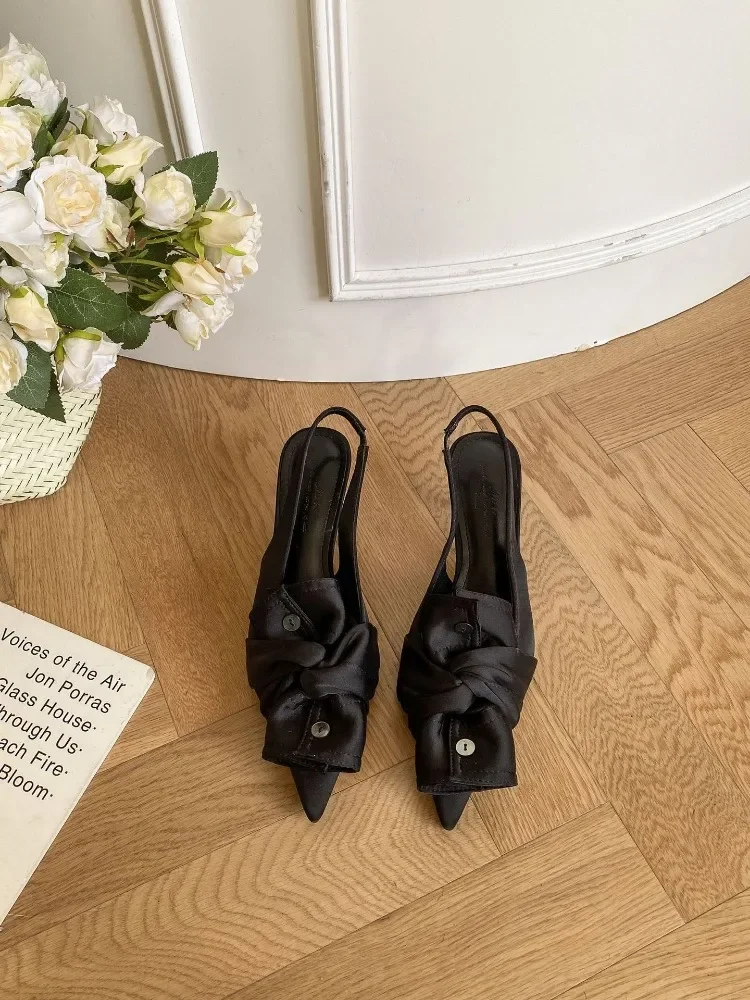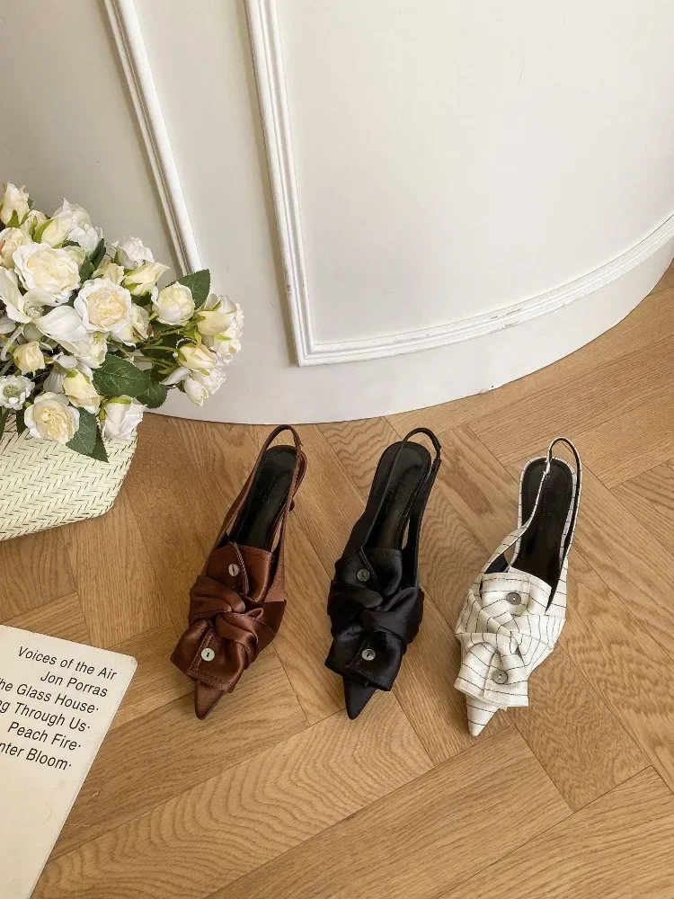 Lbsfy Button Designer High Heels Women Butterfly-knot Sandals Female Elegant Brand Pointed Toe Pumps Party Dress Shoe Zapatos De Mujer