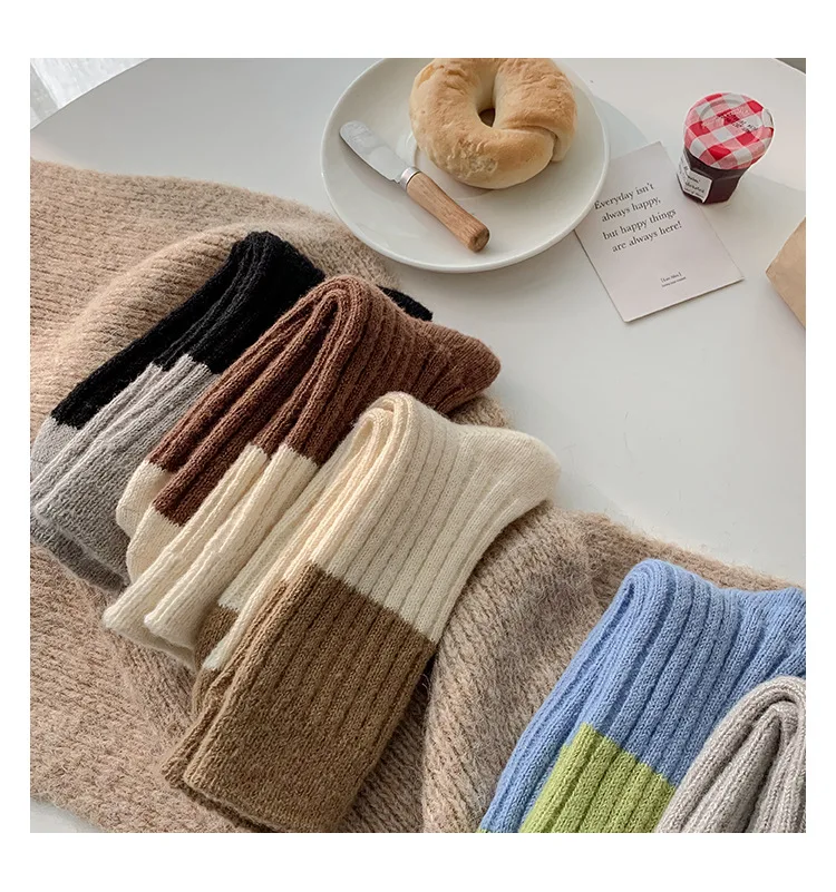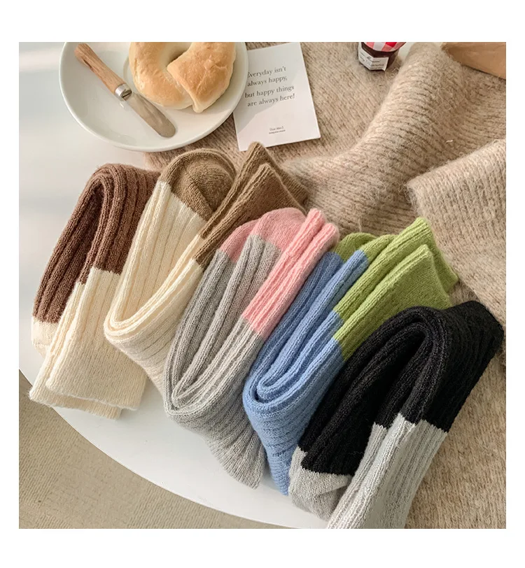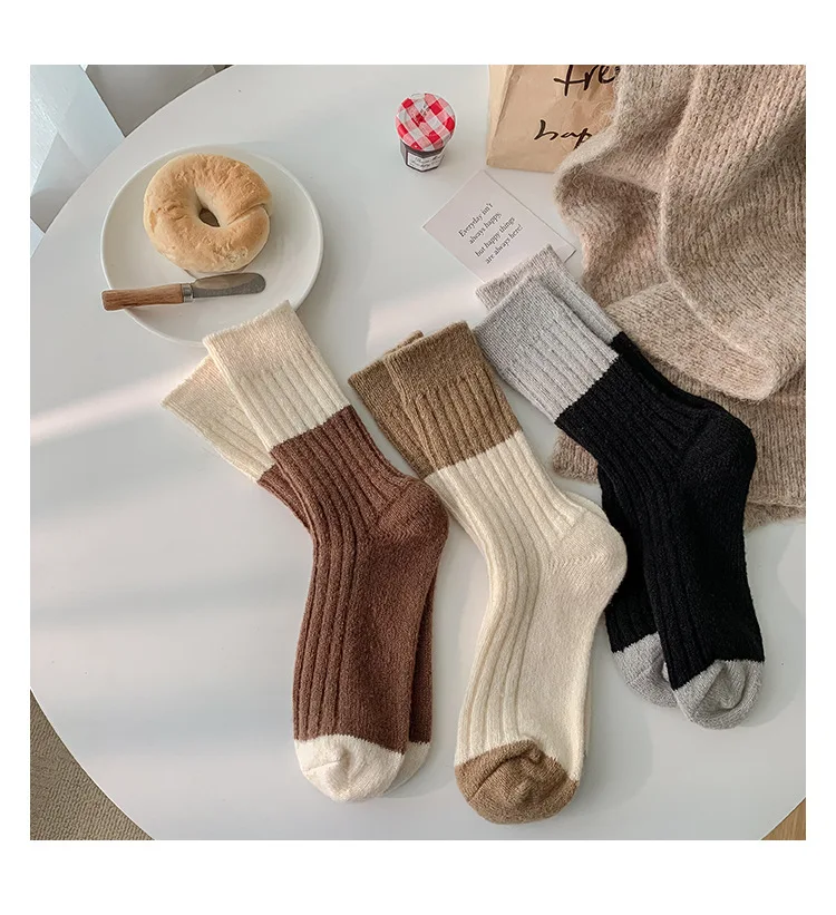 Lbsfy Cashmere Mid-calf Socks Women Korean Style Thickened Japanese Thermal Insulation Retro Wool Long Socks Autumn Winter