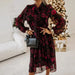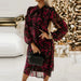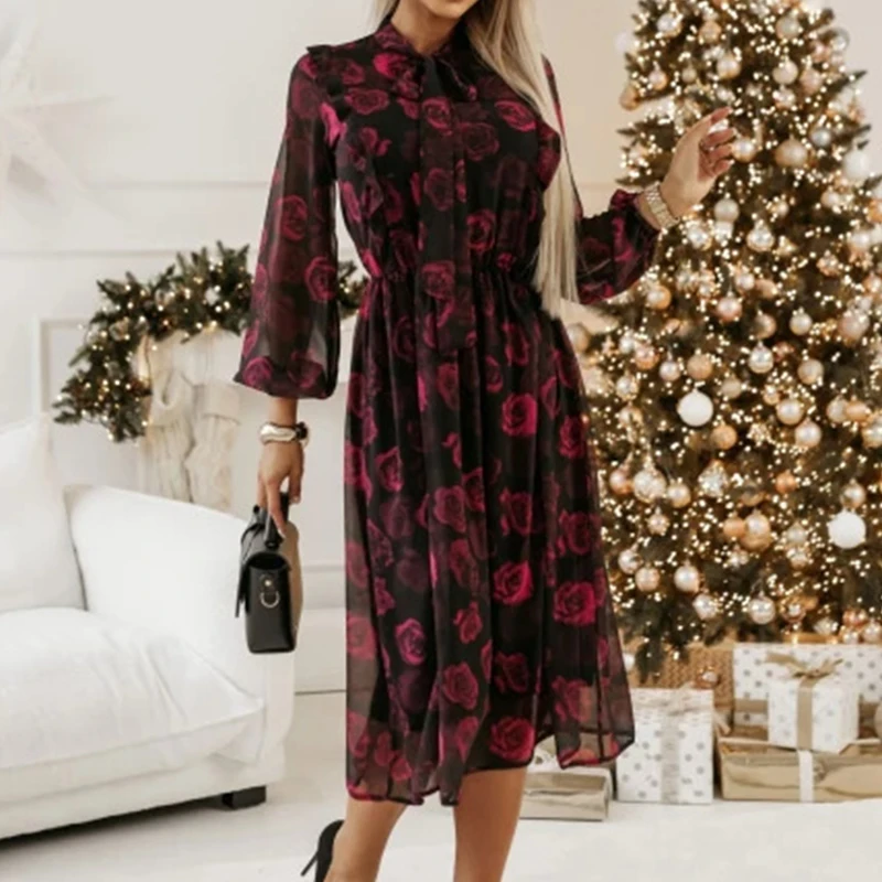 LBSFY - Casual Autumn Retro Floral Print Office Long Dress 2025 Elegant Bow Collar Belt Loose Party Dress Women Long Sleeve Waist Dress