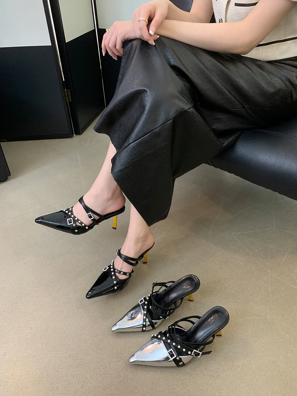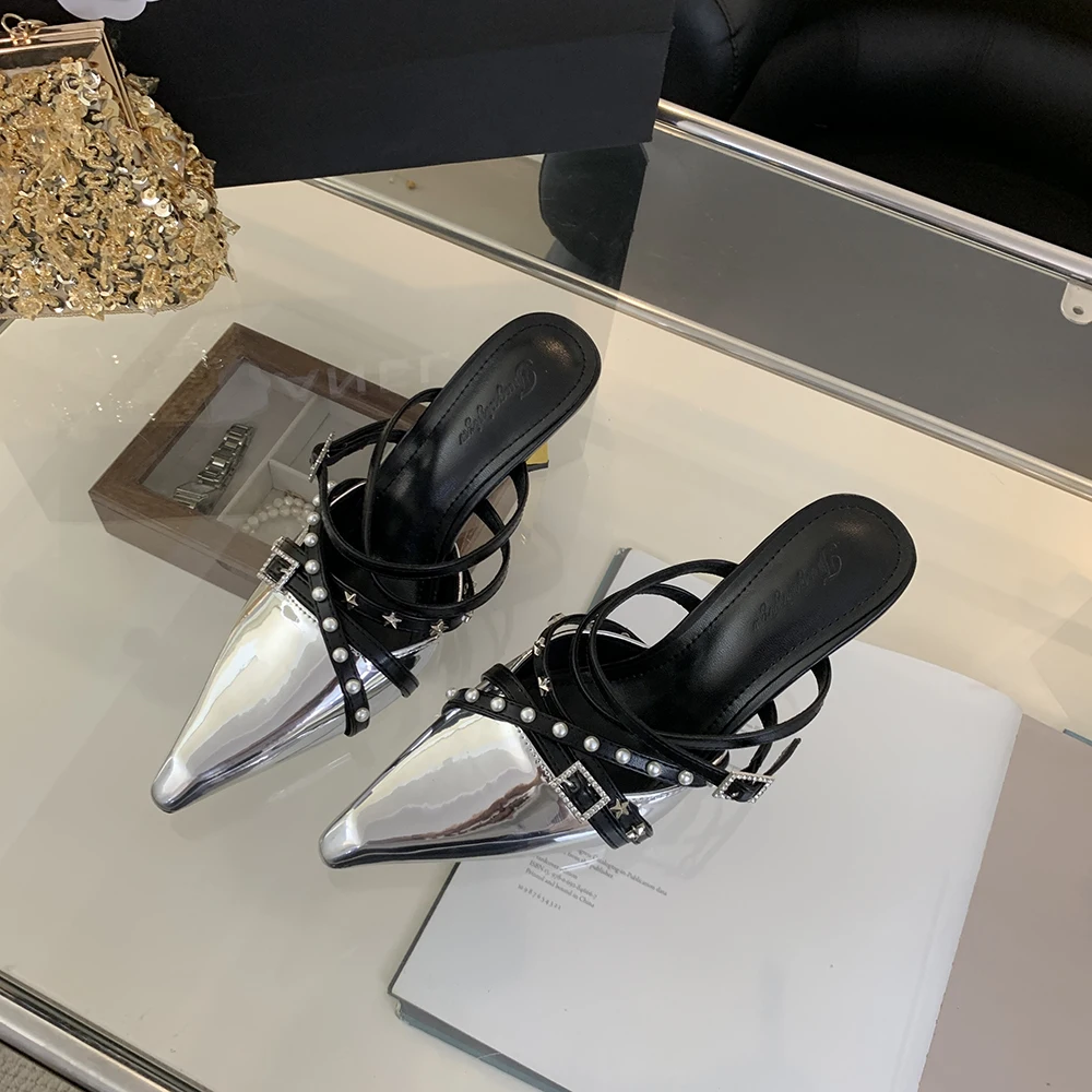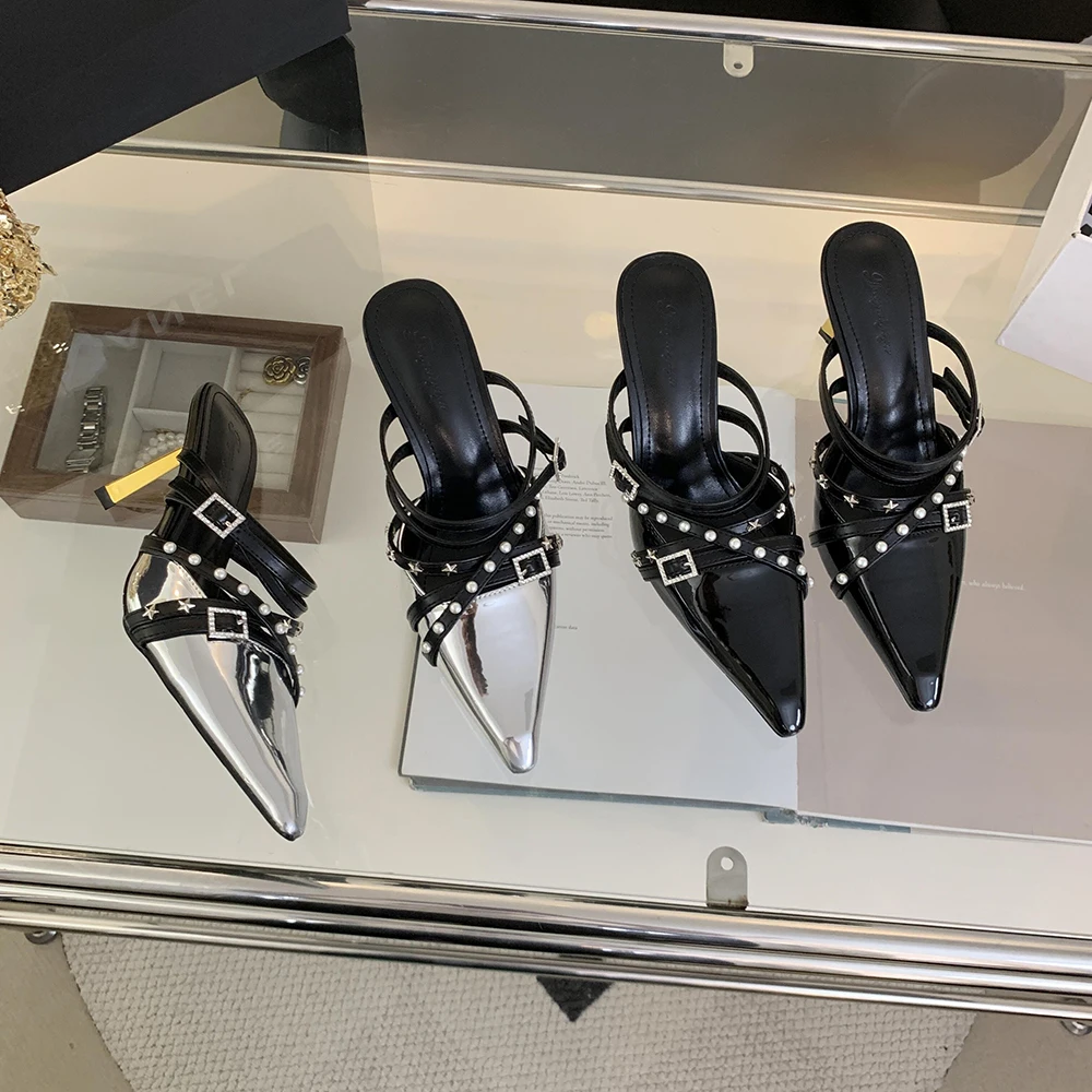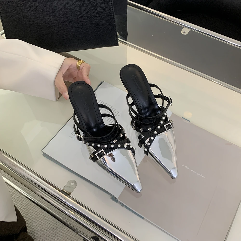 LBSFY - Casual Women Slides Slippers Thin High Heels Party Pumps Stiletto Office Party Shoes Casual Mules Shoes Size Gladiator 35-39