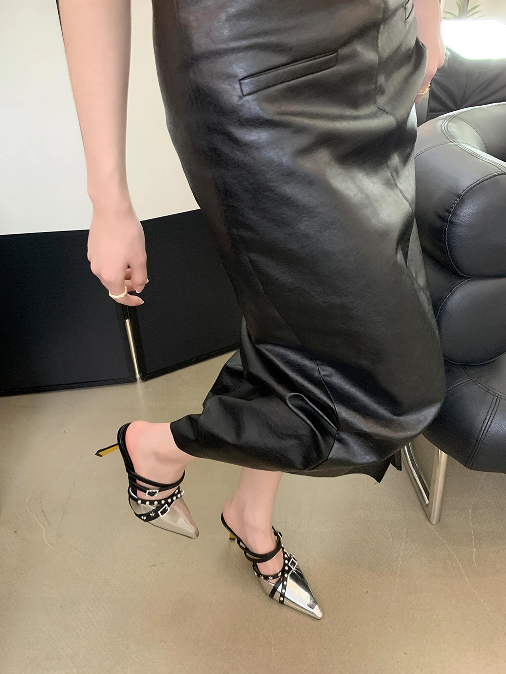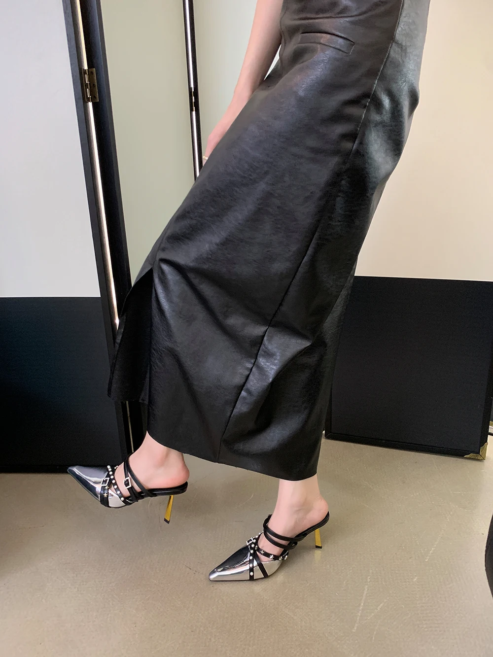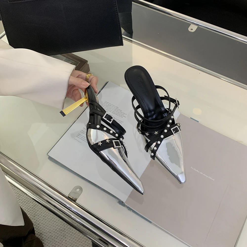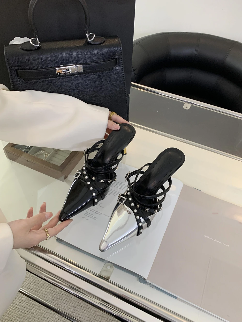 LBSFY - Casual Women Slides Slippers Thin High Heels Party Pumps Stiletto Office Party Shoes Casual Mules Shoes Size Gladiator 35-39