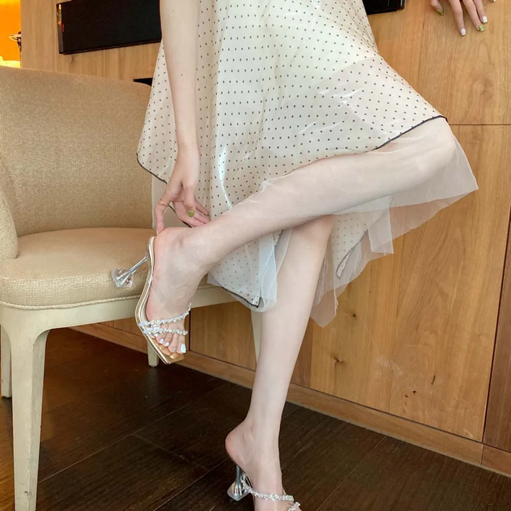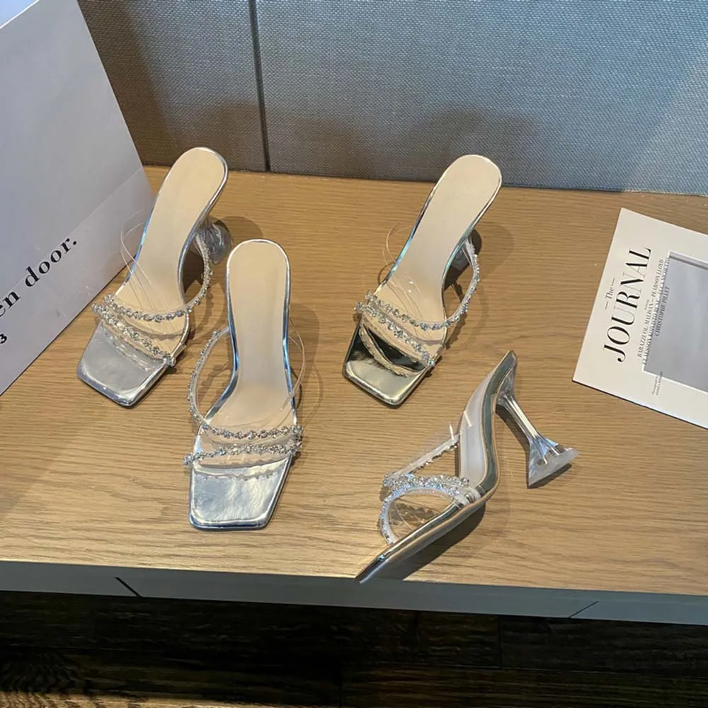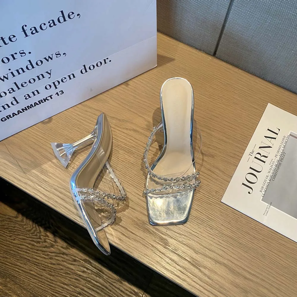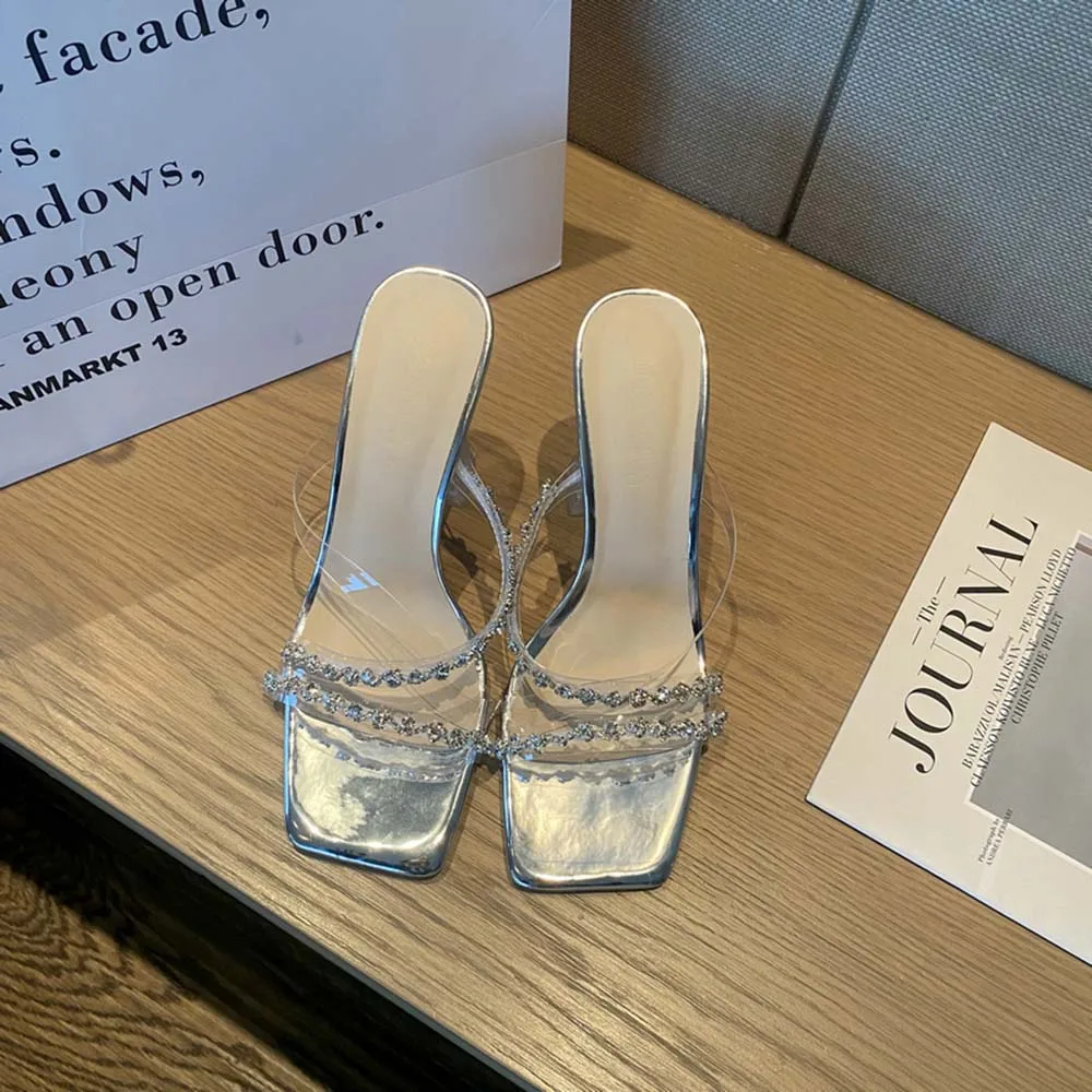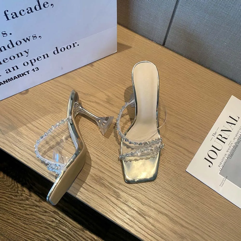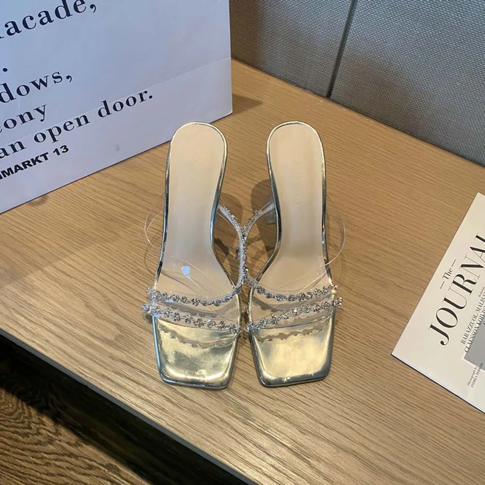 LBSFY - Casual Women Slippers Slides Thin High Heels Summer Outside Mules Shoes Stiletto Party Pumps Dress Wedding Shoes Woman Size 39