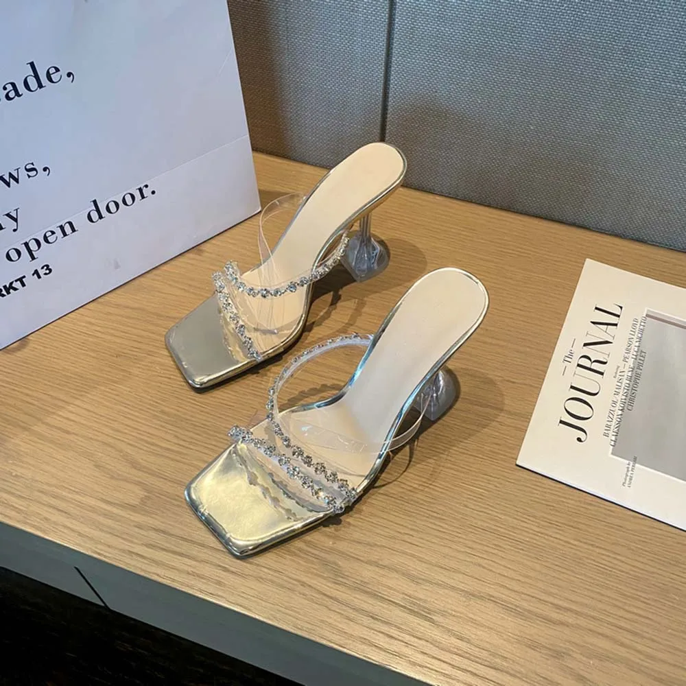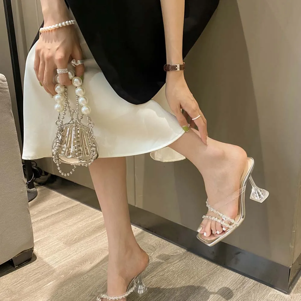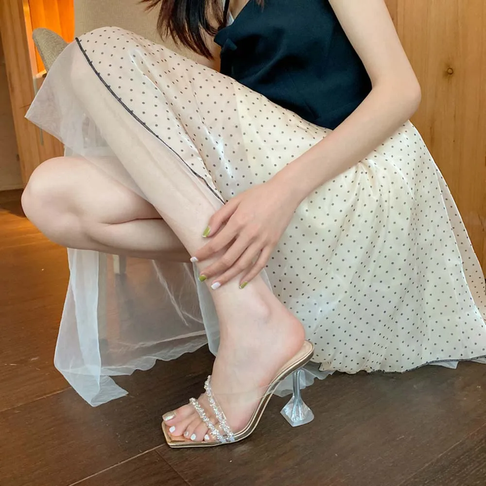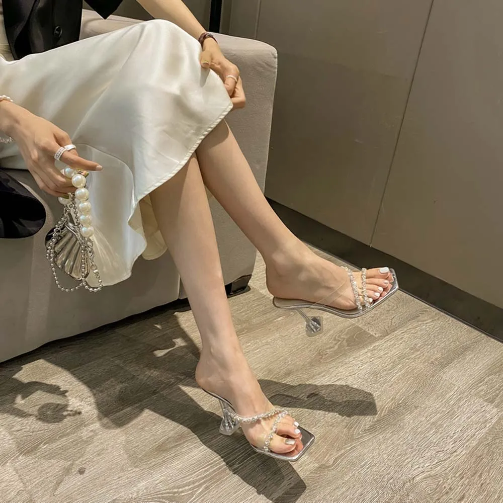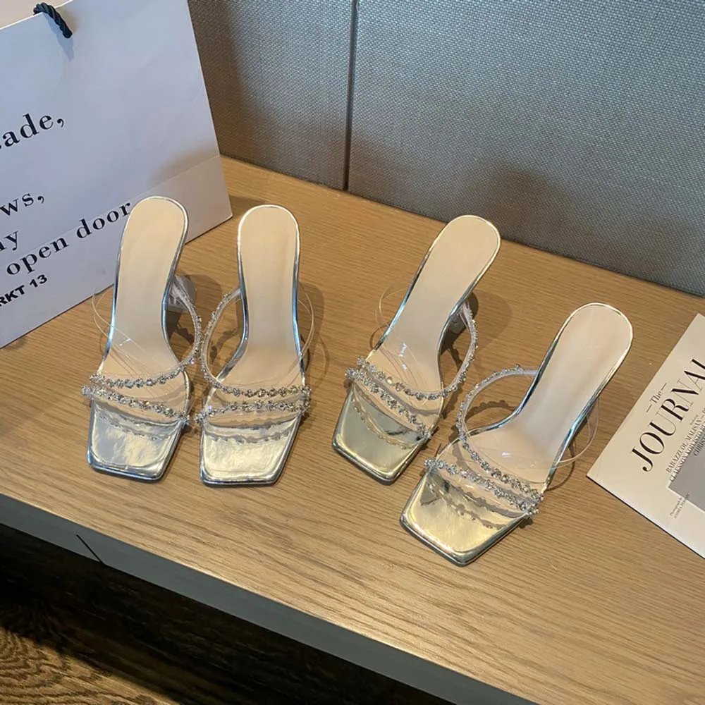 LBSFY - Casual Women Slippers Slides Thin High Heels Summer Outside Mules Shoes Stiletto Party Pumps Dress Wedding Shoes Woman Size 39