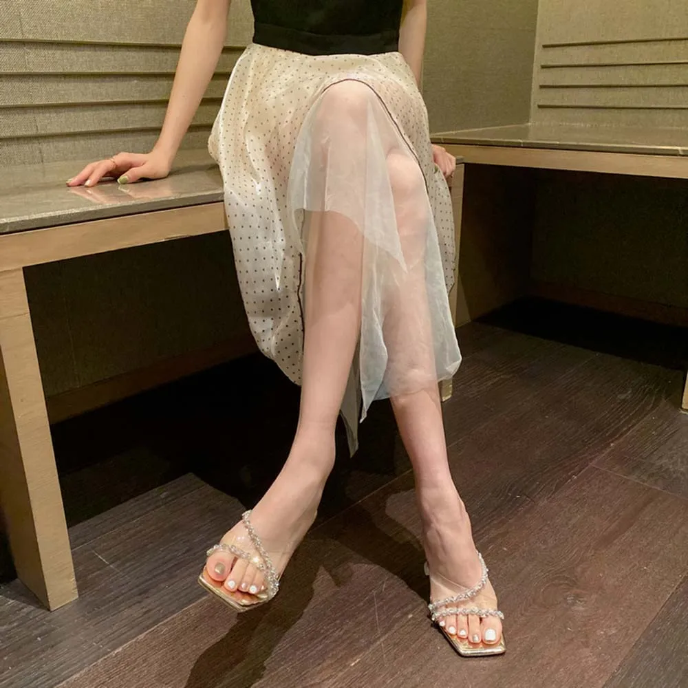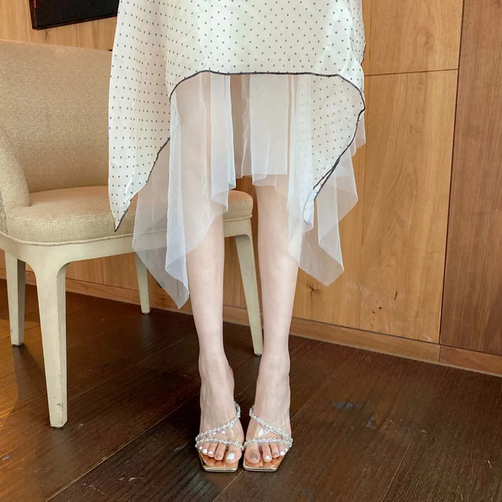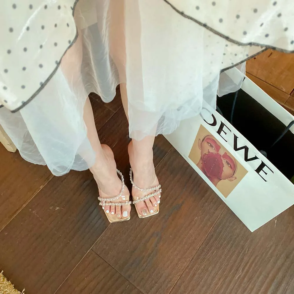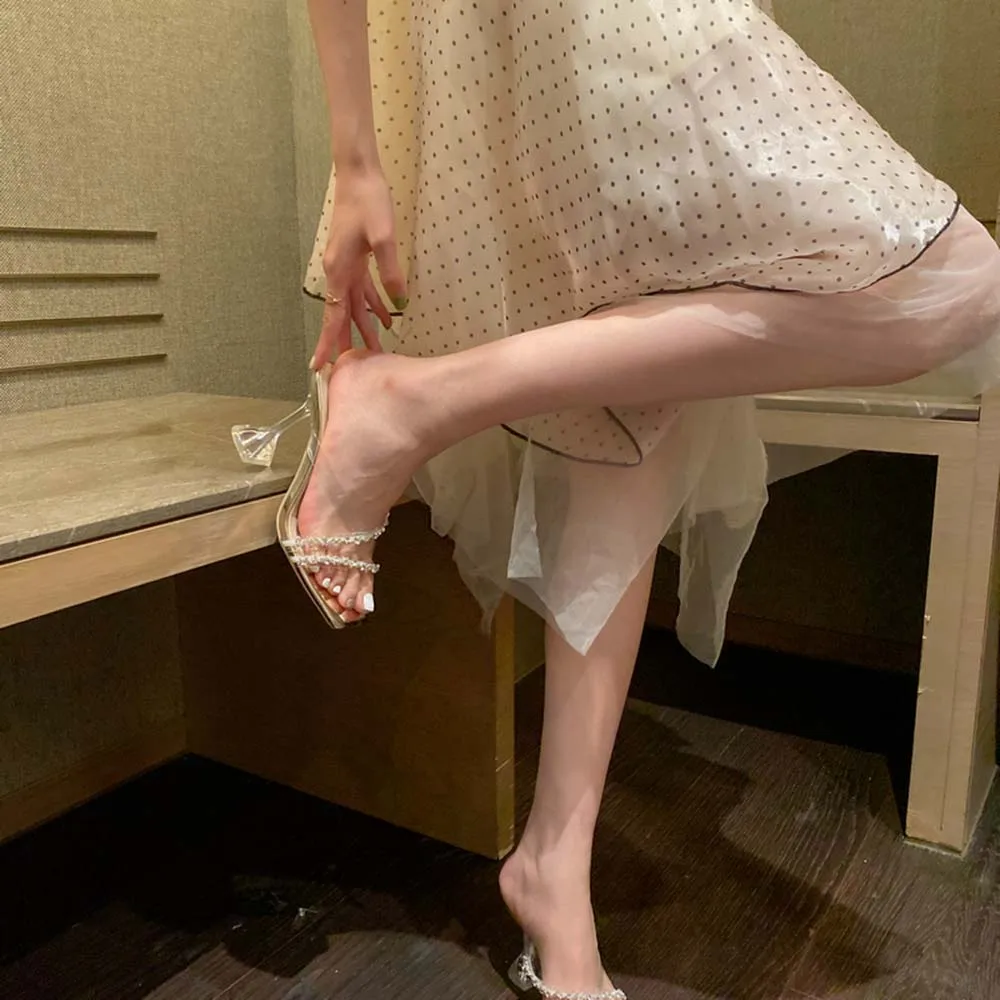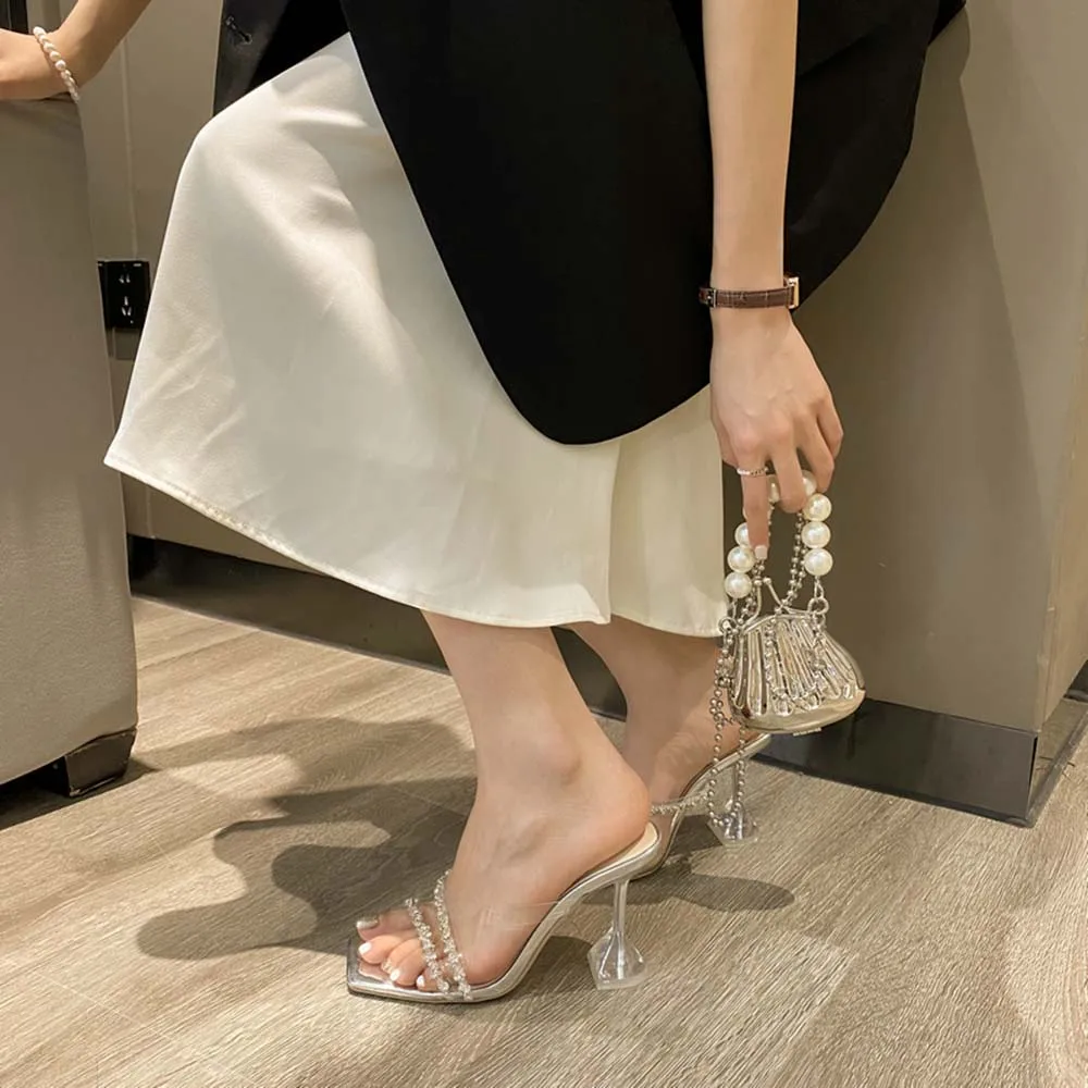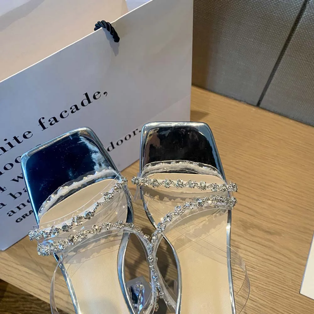 LBSFY - Casual Women Slippers Slides Thin High Heels Summer Outside Mules Shoes Stiletto Party Pumps Dress Wedding Shoes Woman Size 39