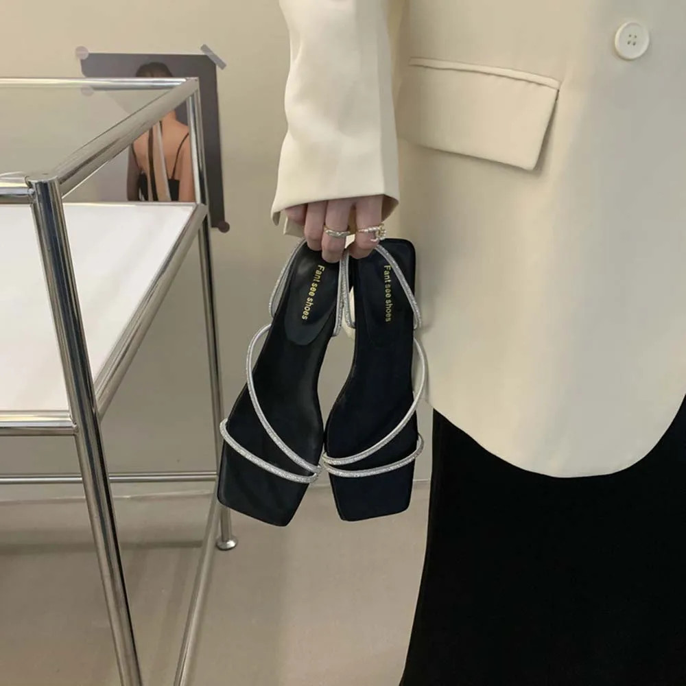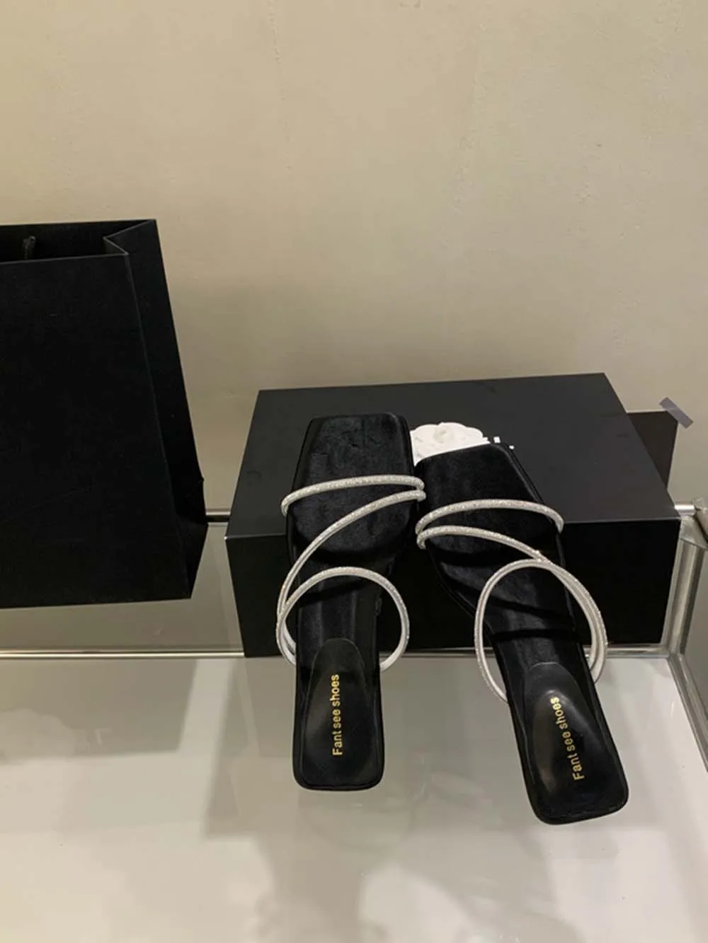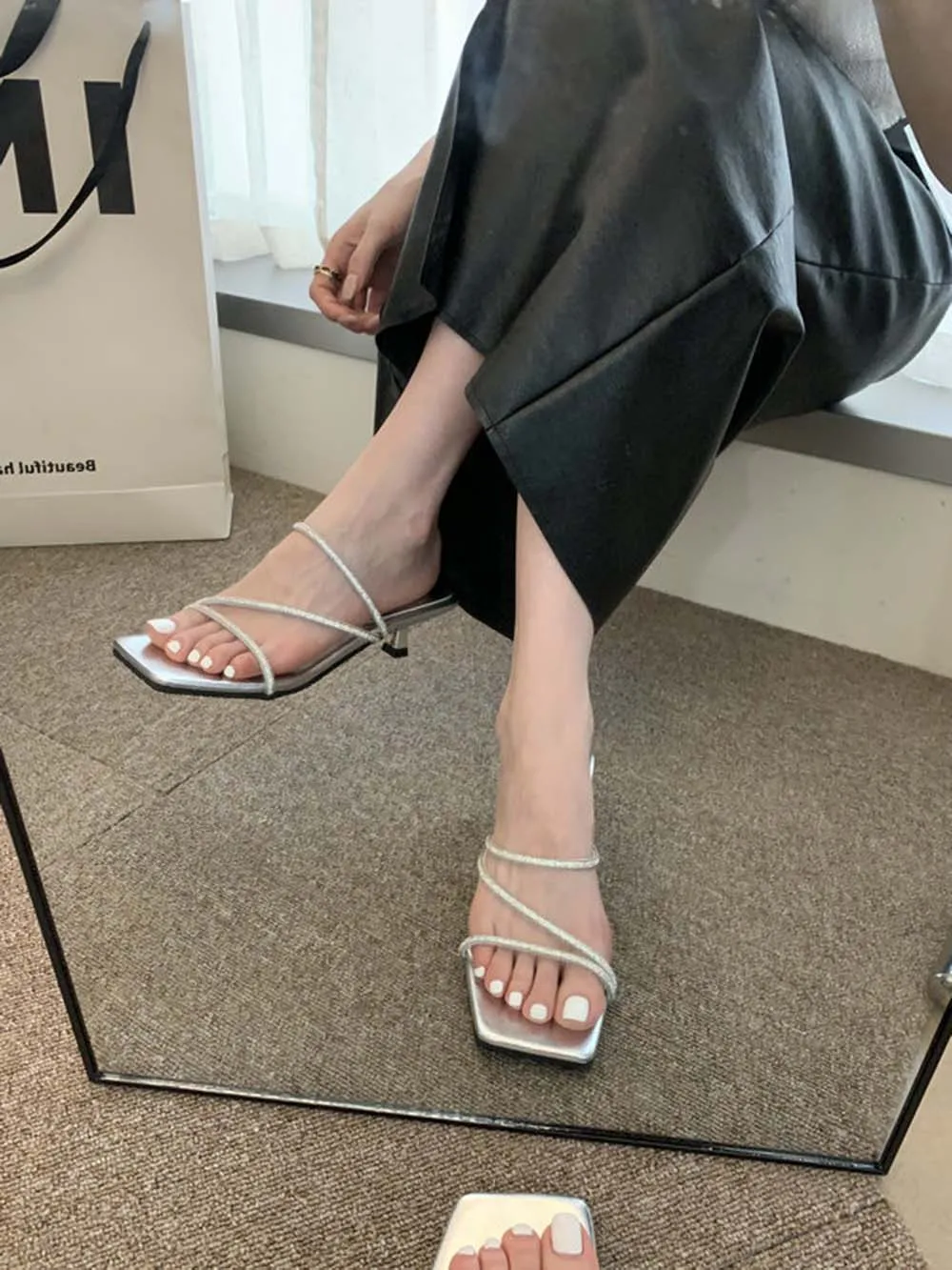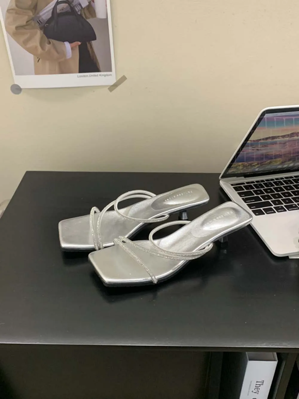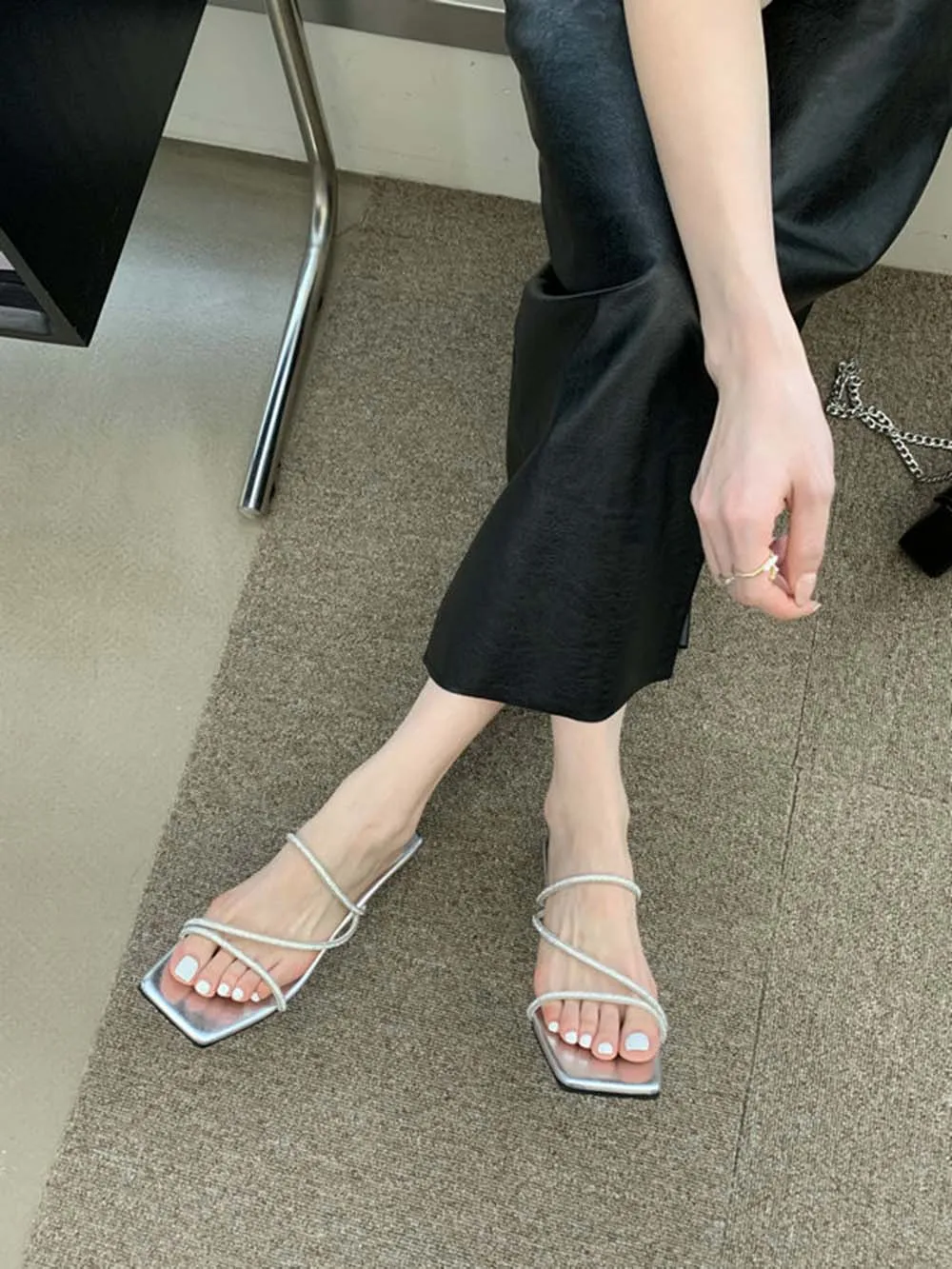 LBSFY - Chain Women Slides Slippers Thin Low Heels Black Silver Gold Summer Outside Low Heeled Sexy Party Pumps Size 35-39