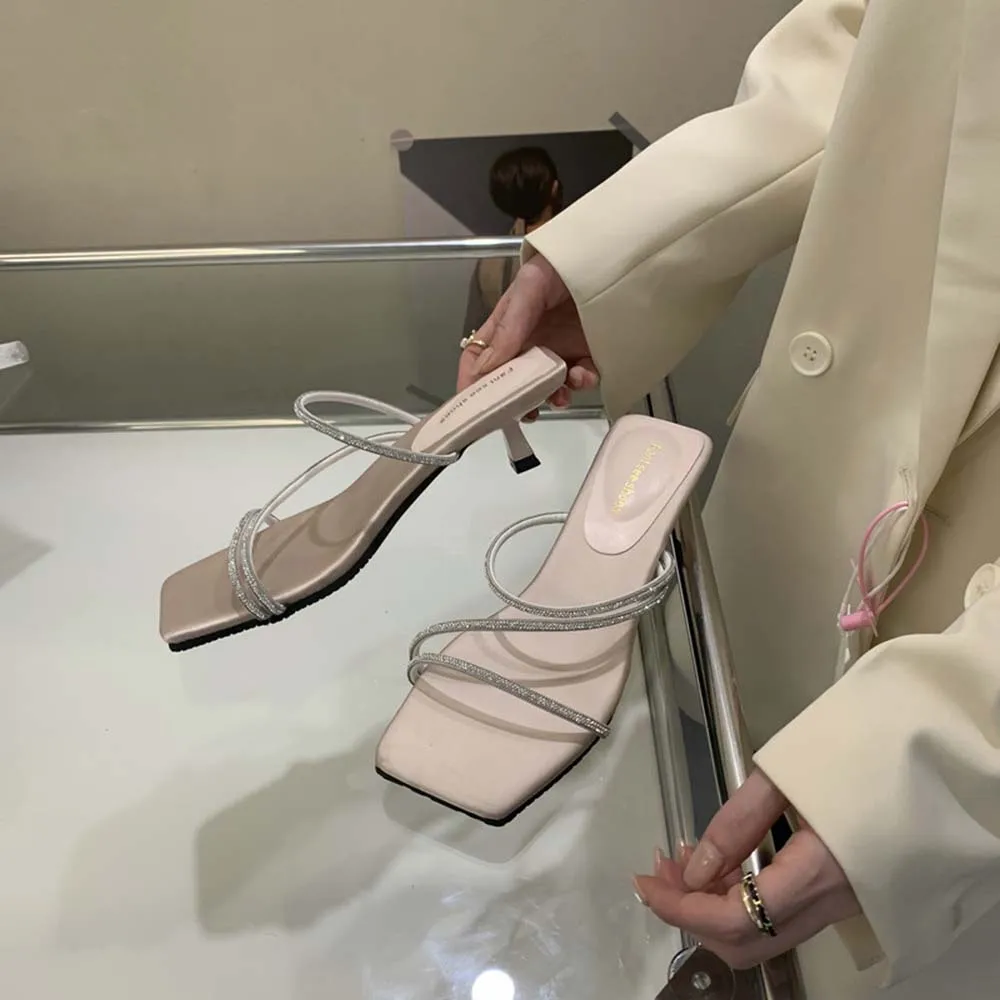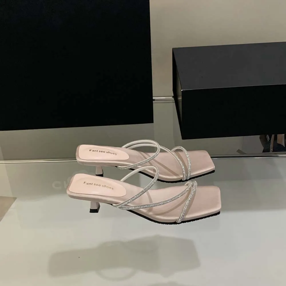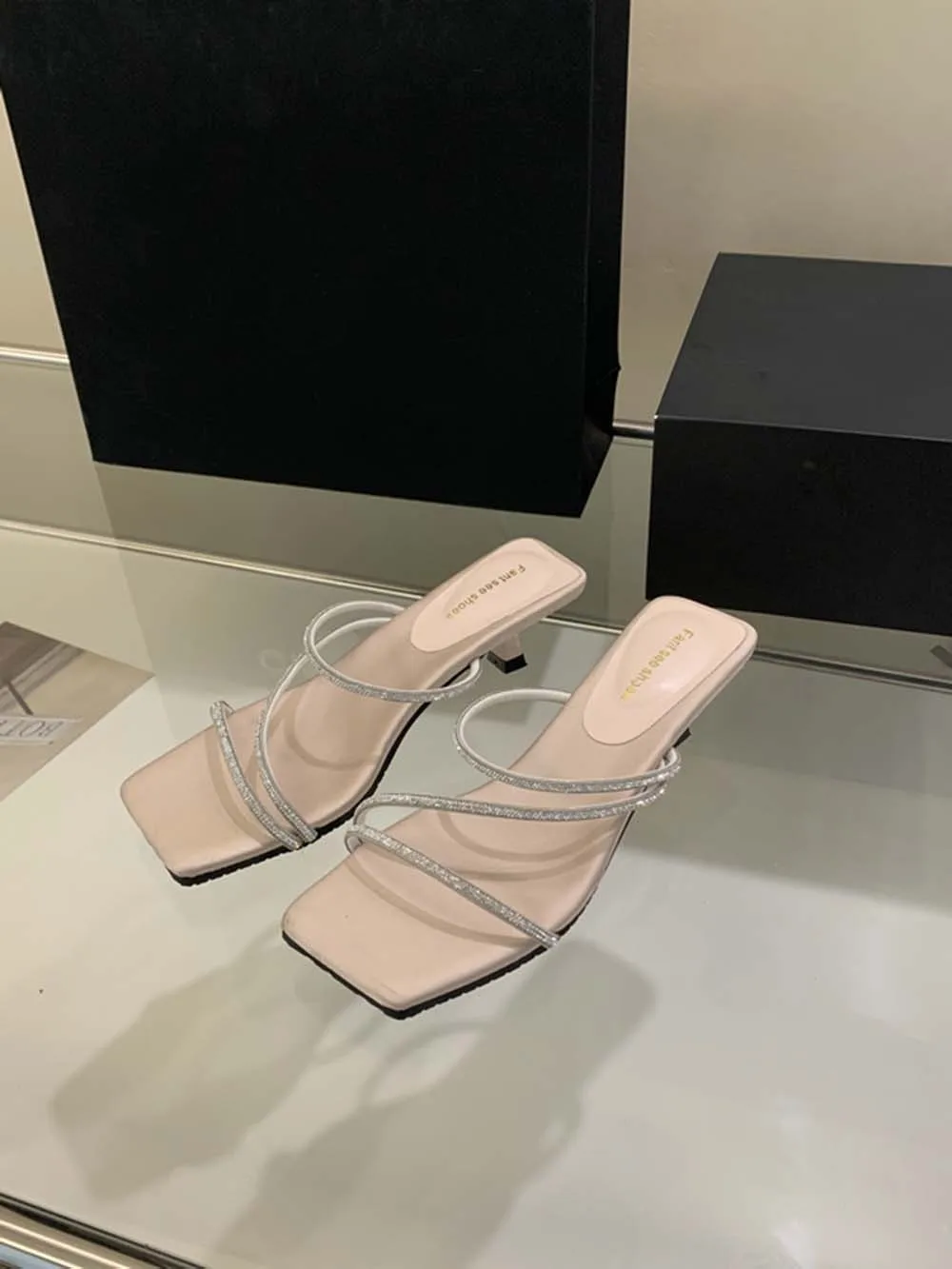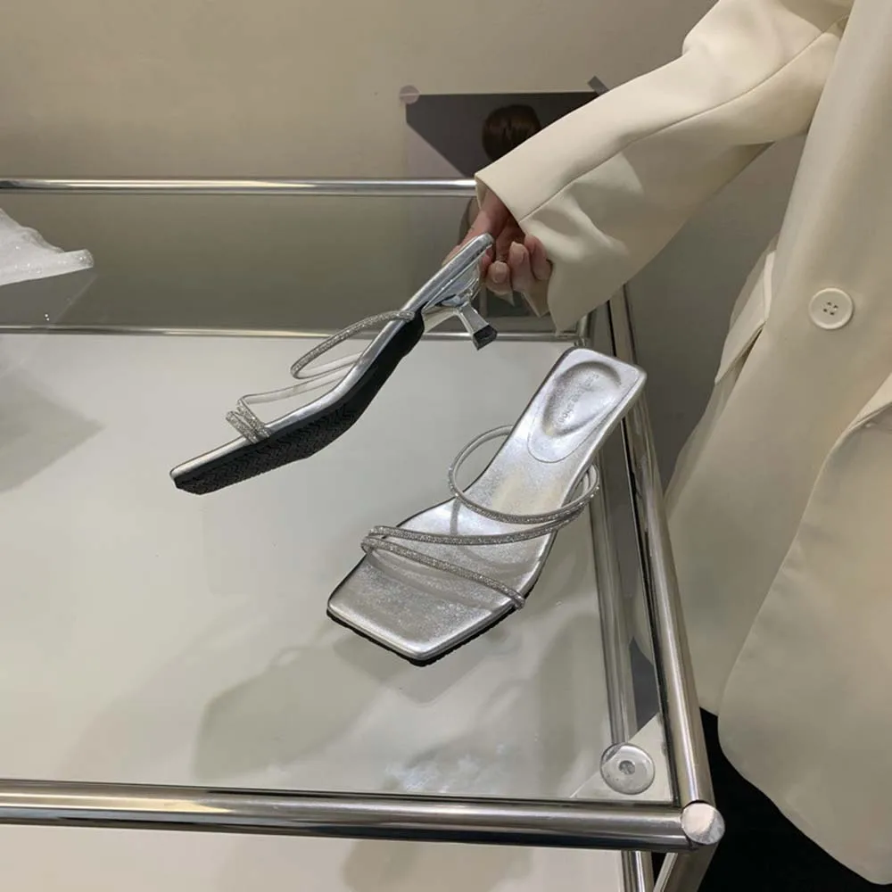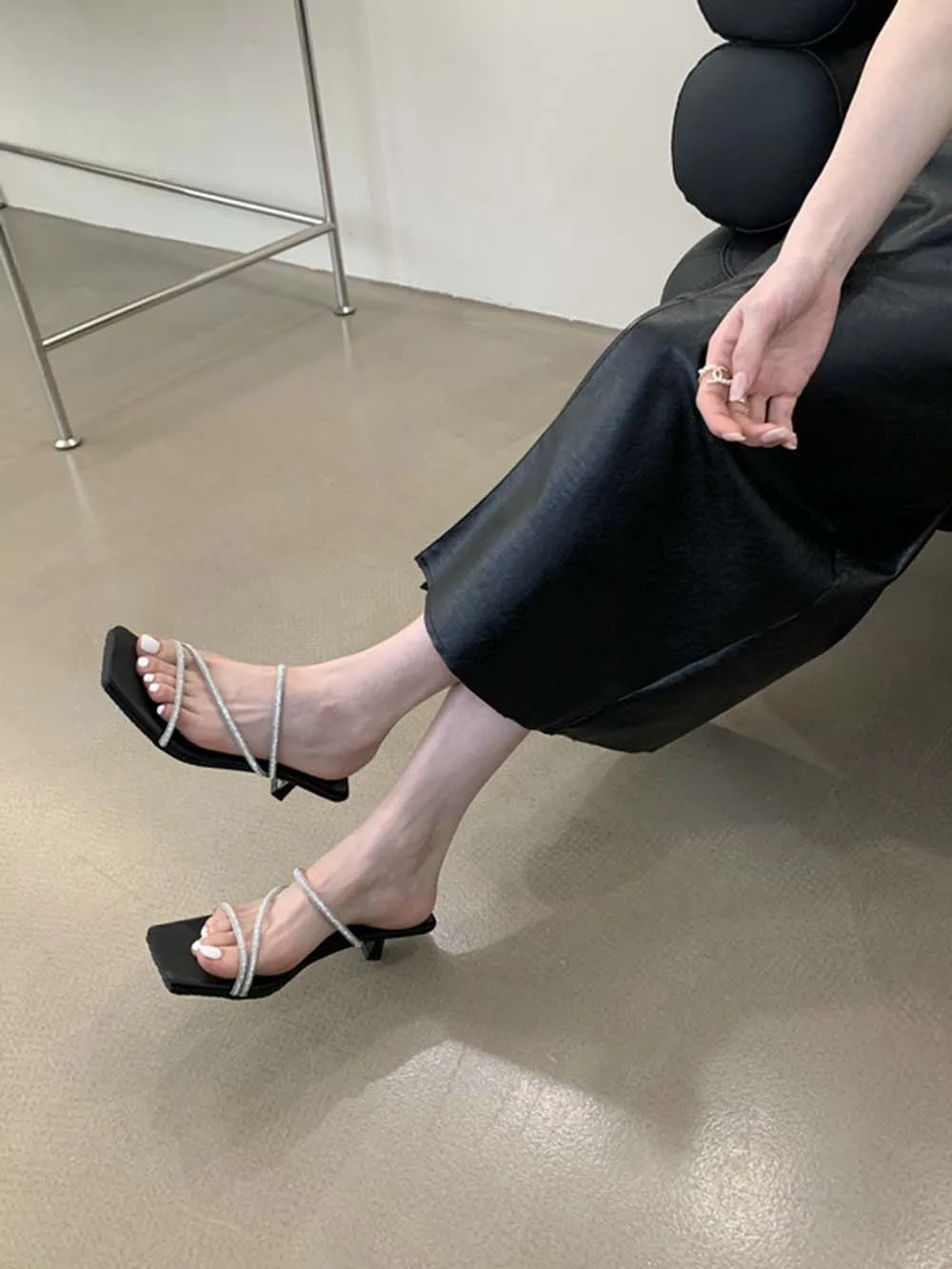 LBSFY - Chain Women Slides Slippers Thin Low Heels Black Silver Gold Summer Outside Low Heeled Sexy Party Pumps Size 35-39