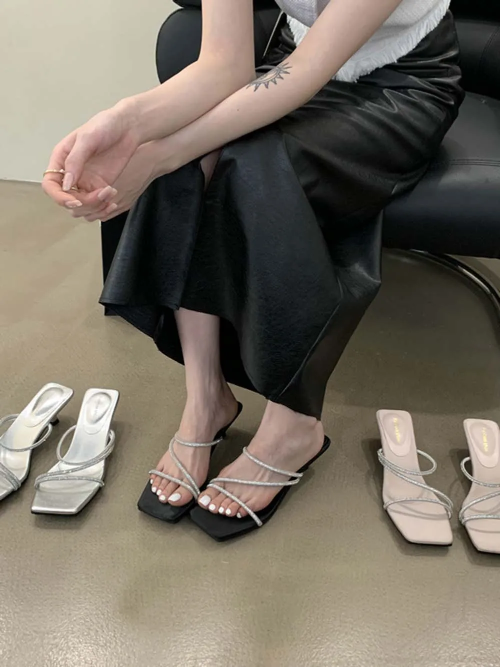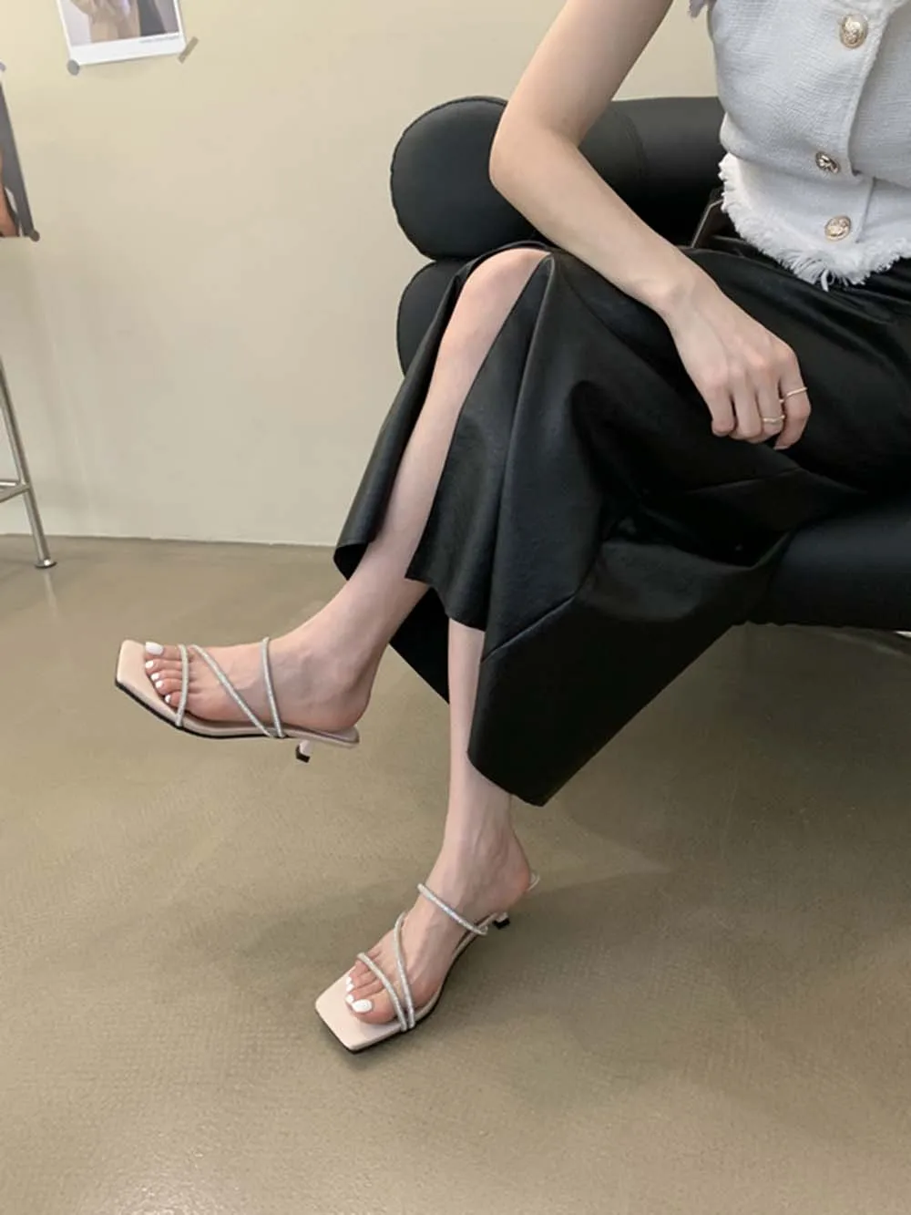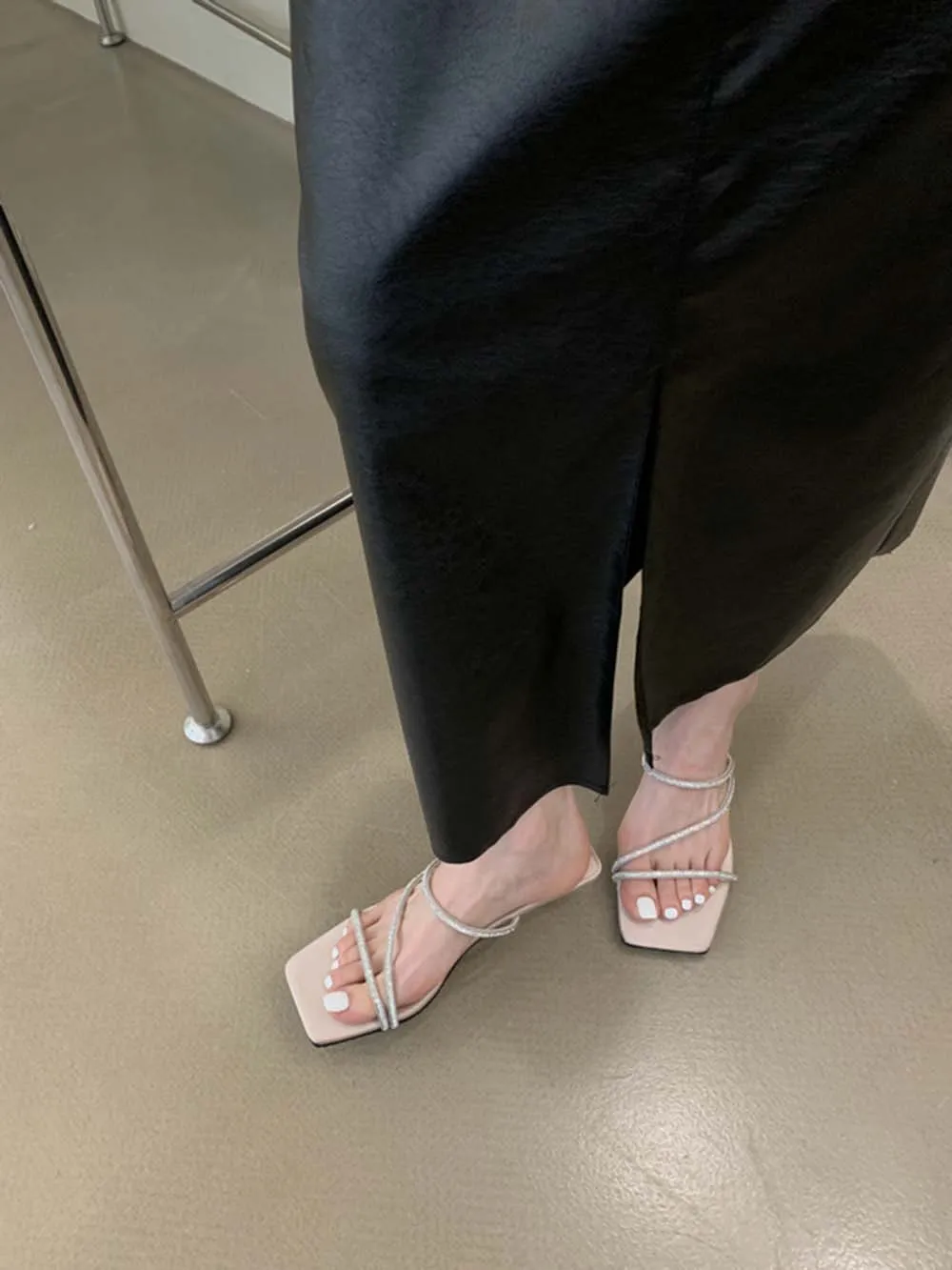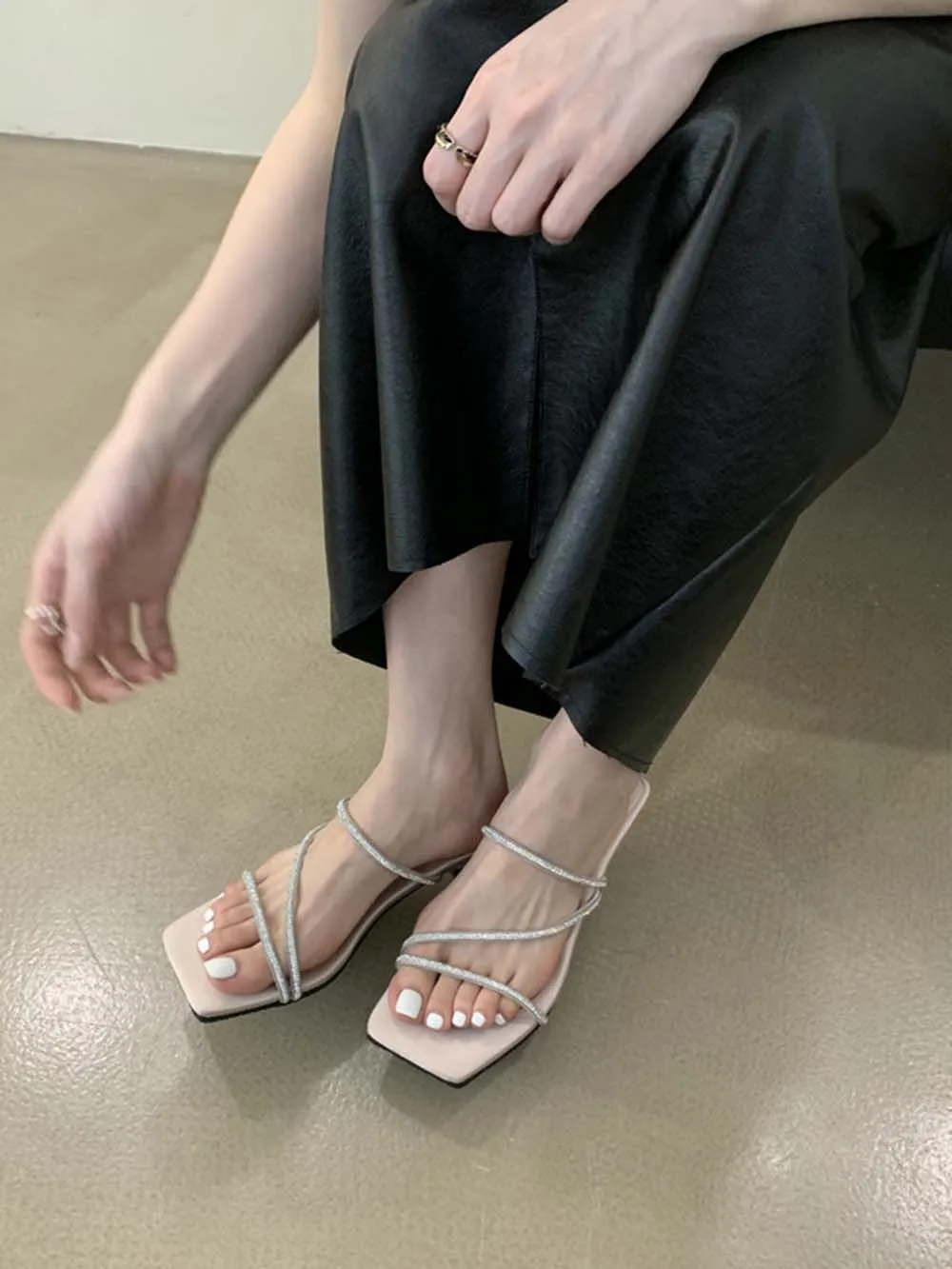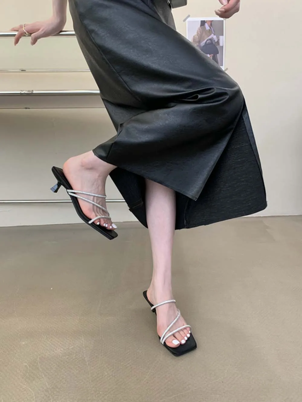 LBSFY - Chain Women Slides Slippers Thin Low Heels Black Silver Gold Summer Outside Low Heeled Sexy Party Pumps Size 35-39
