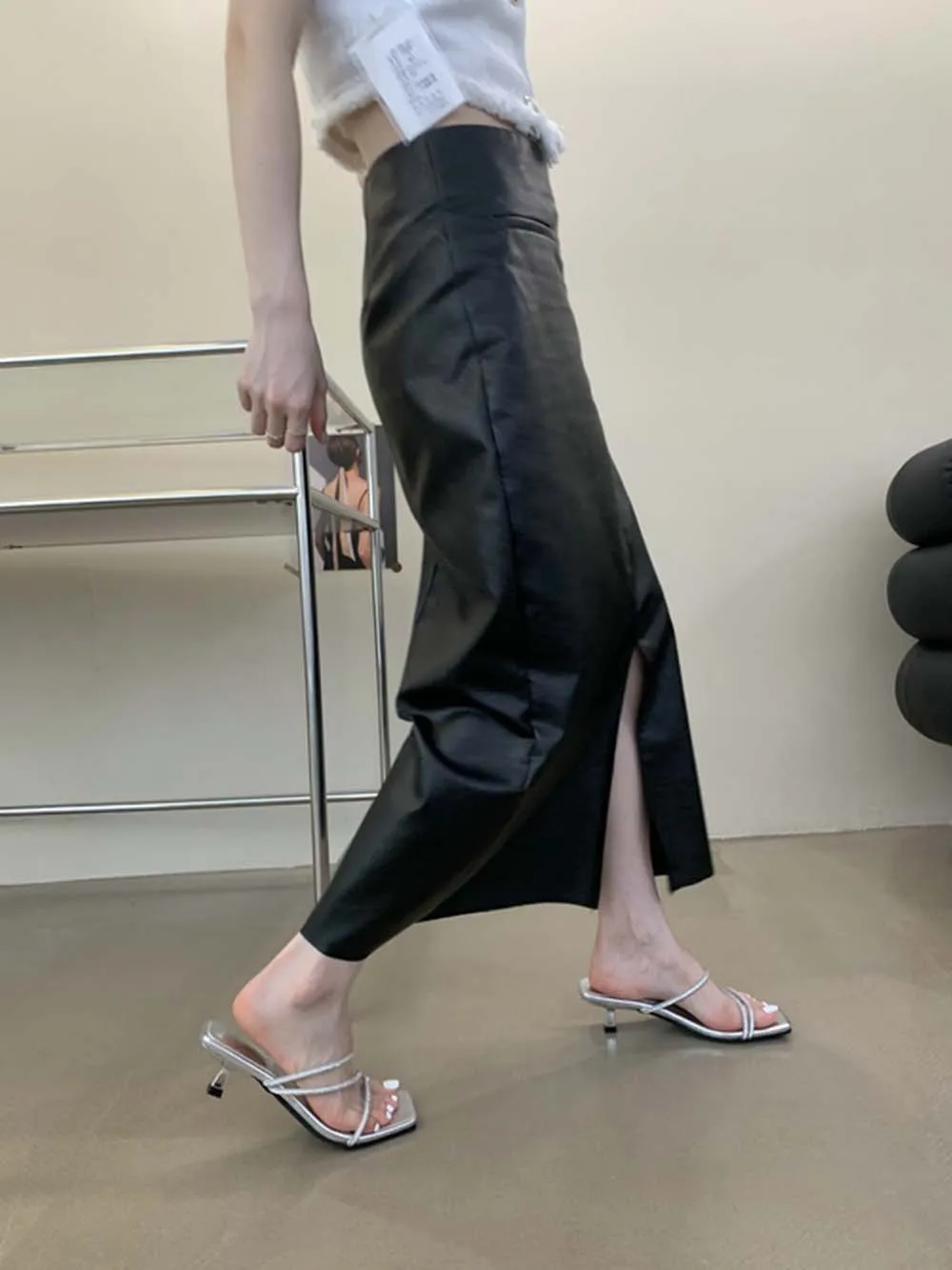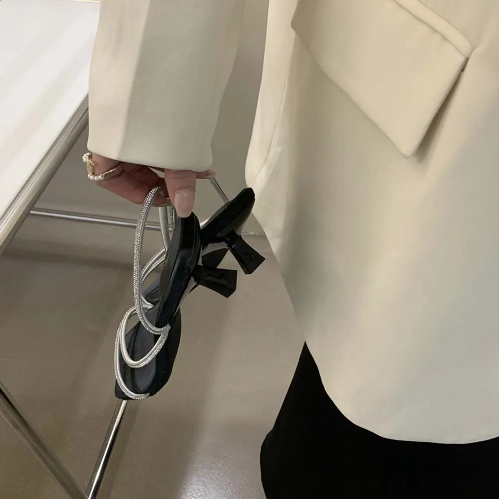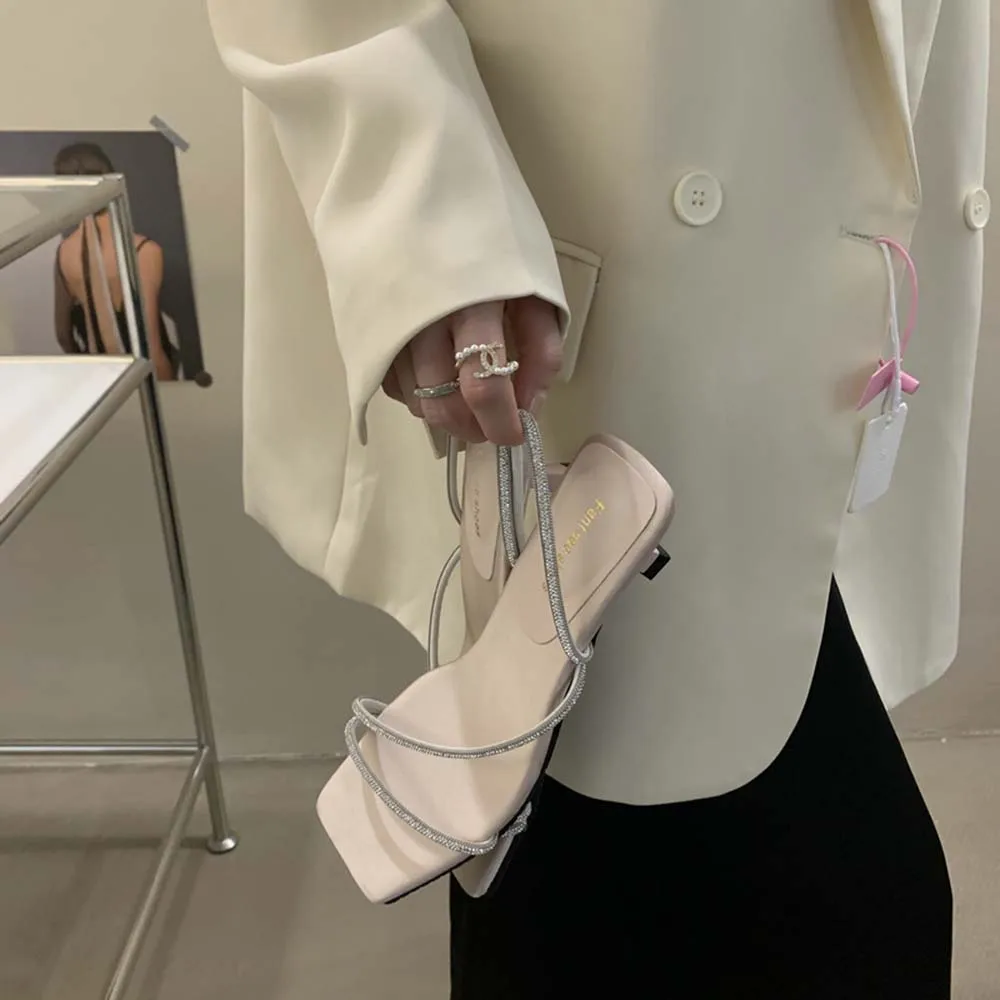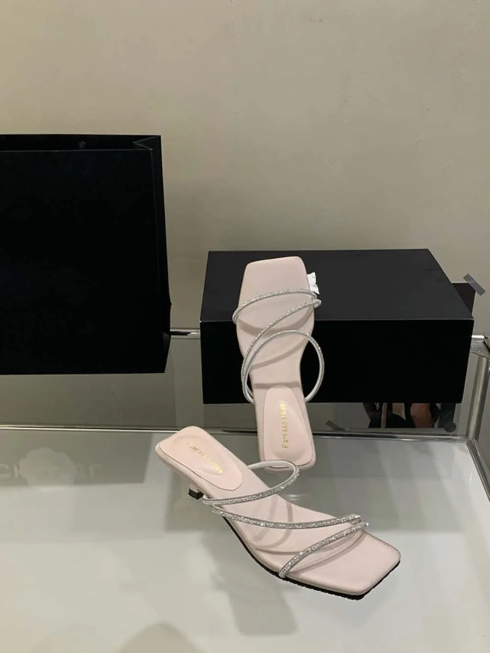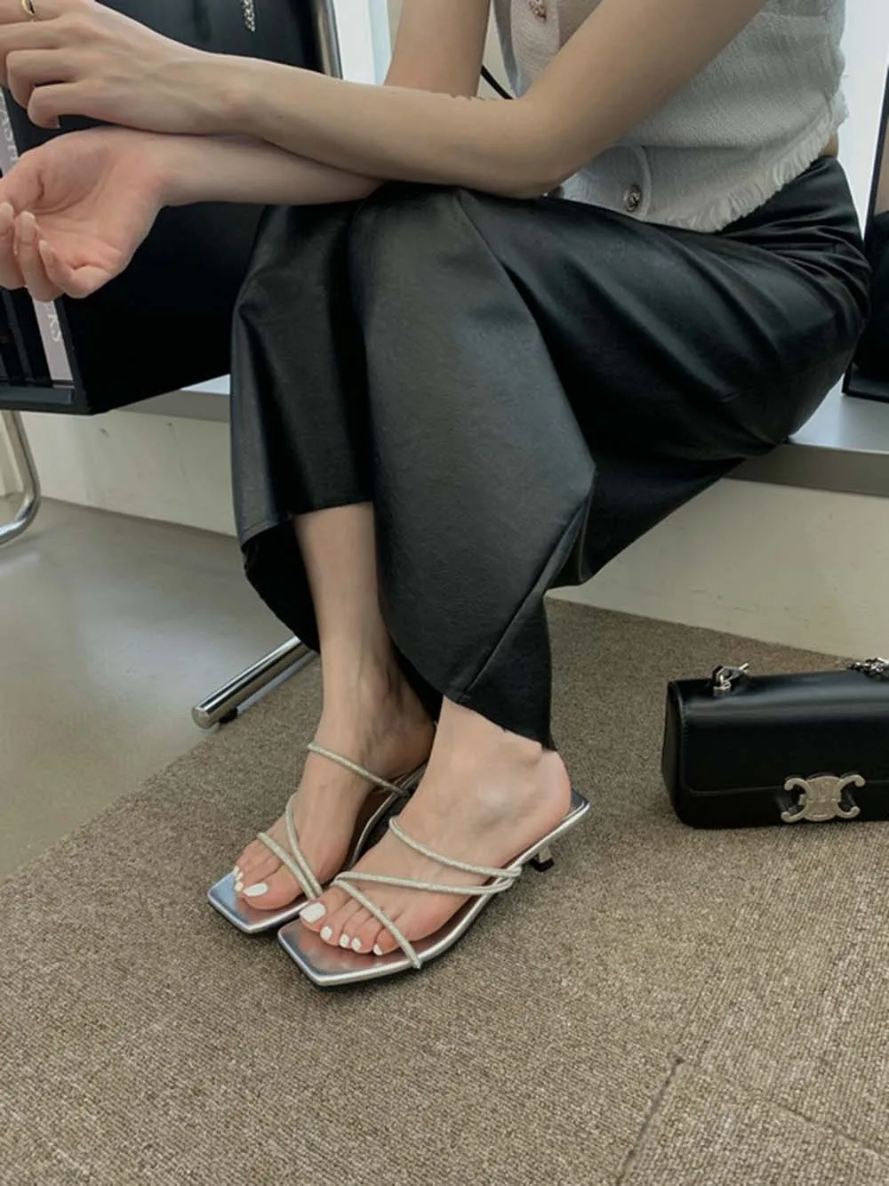 LBSFY - Chain Women Slides Slippers Thin Low Heels Black Silver Gold Summer Outside Low Heeled Sexy Party Pumps Size 35-39