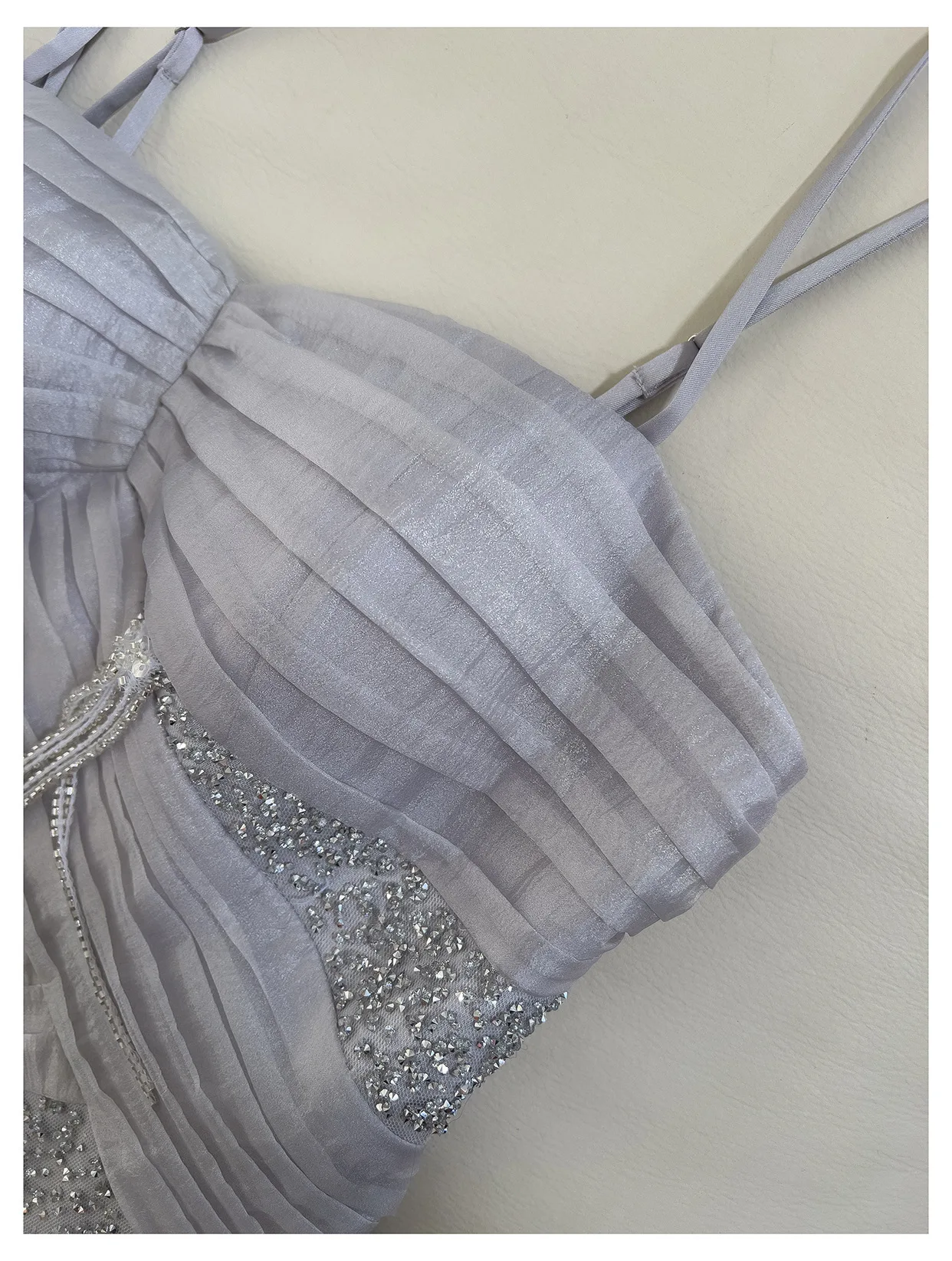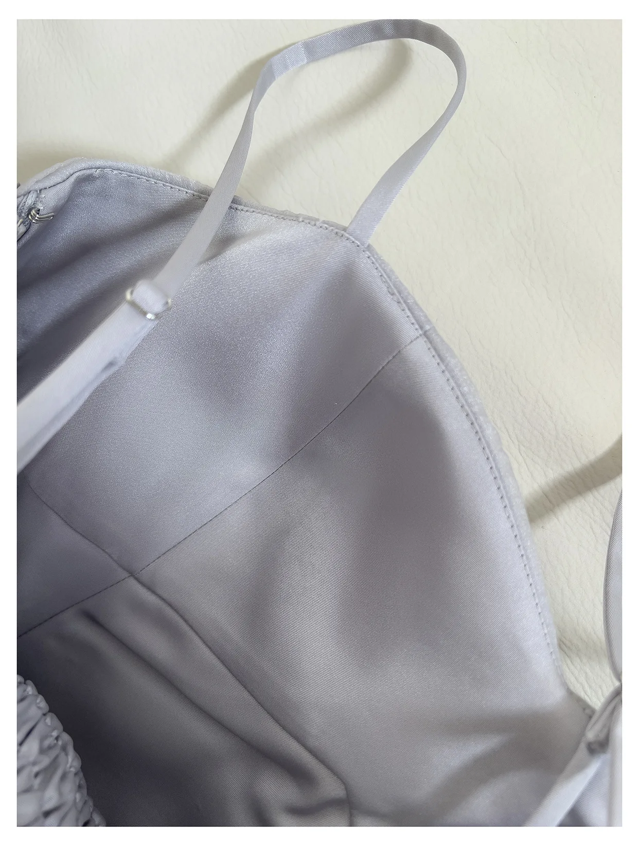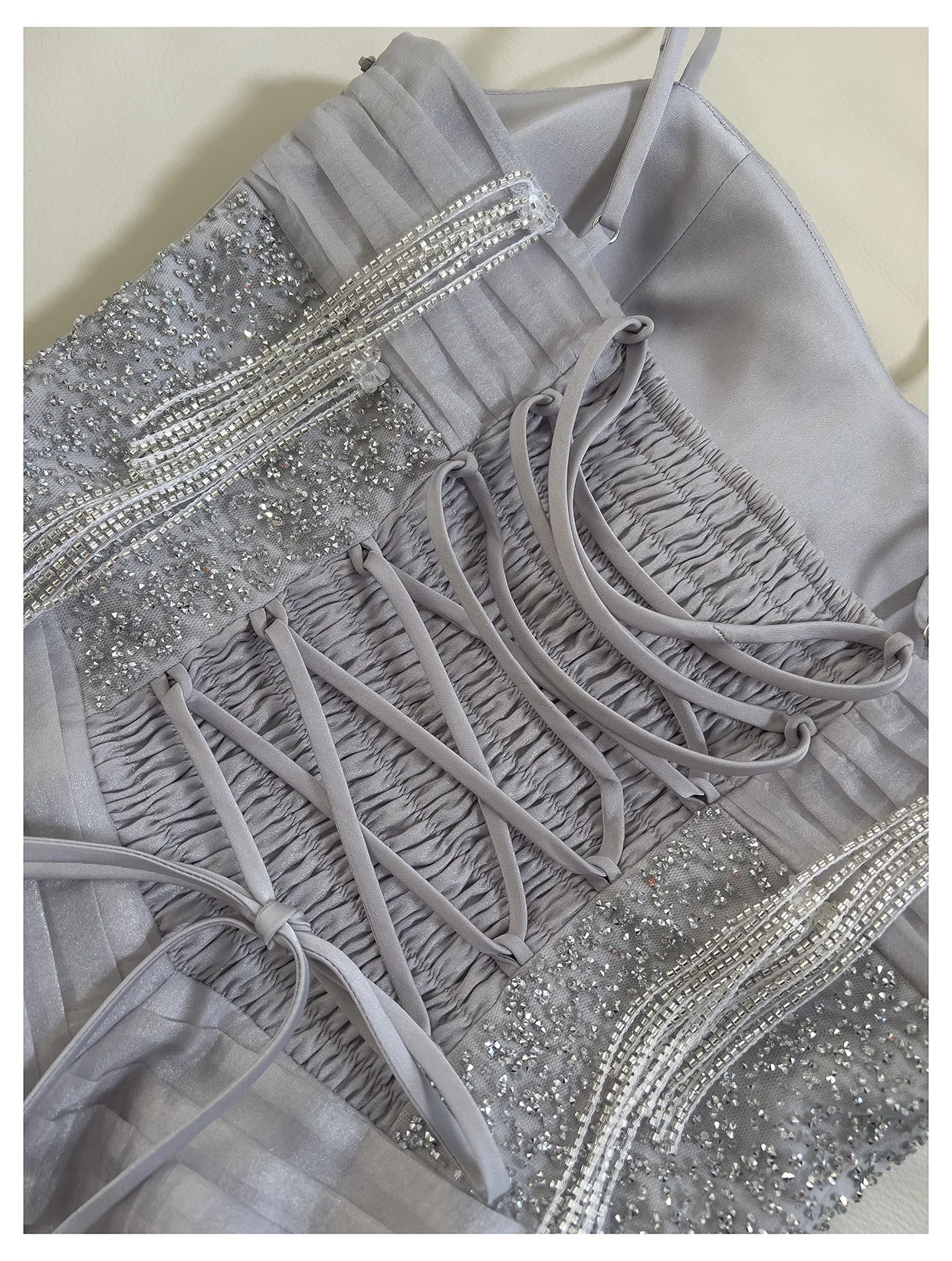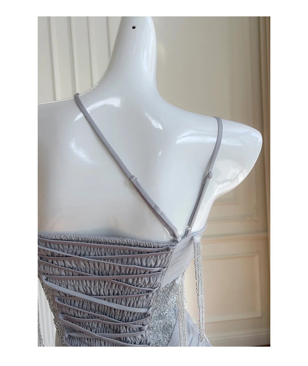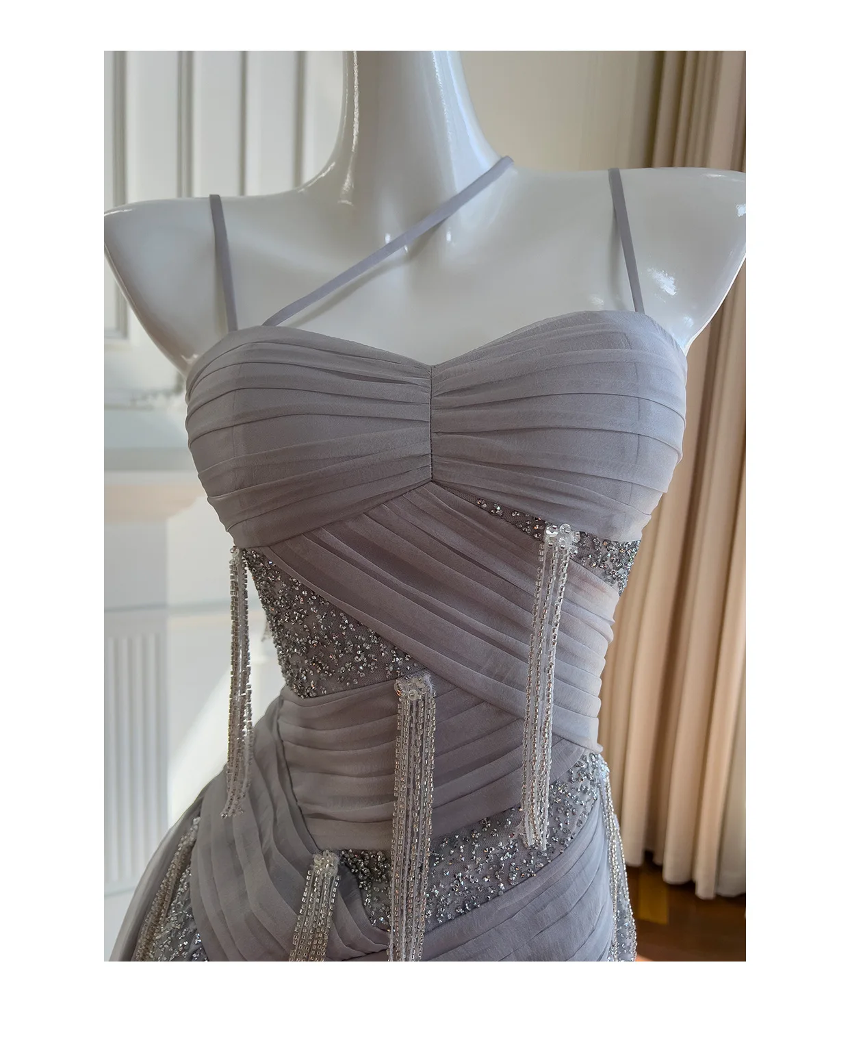 LBSFY -Charming Women's Gray Tulle Midi Dress With Lace Appliques Neckline Sleeveless Party Formal Gown Elegant
