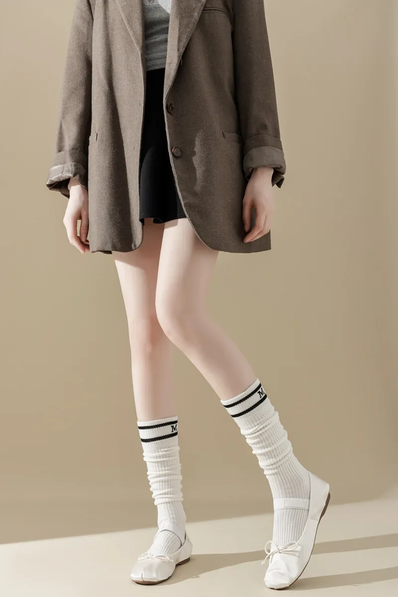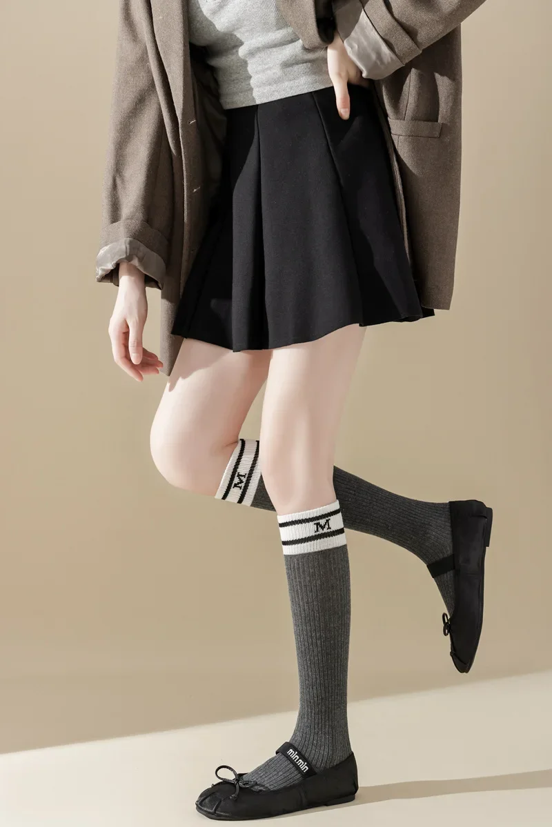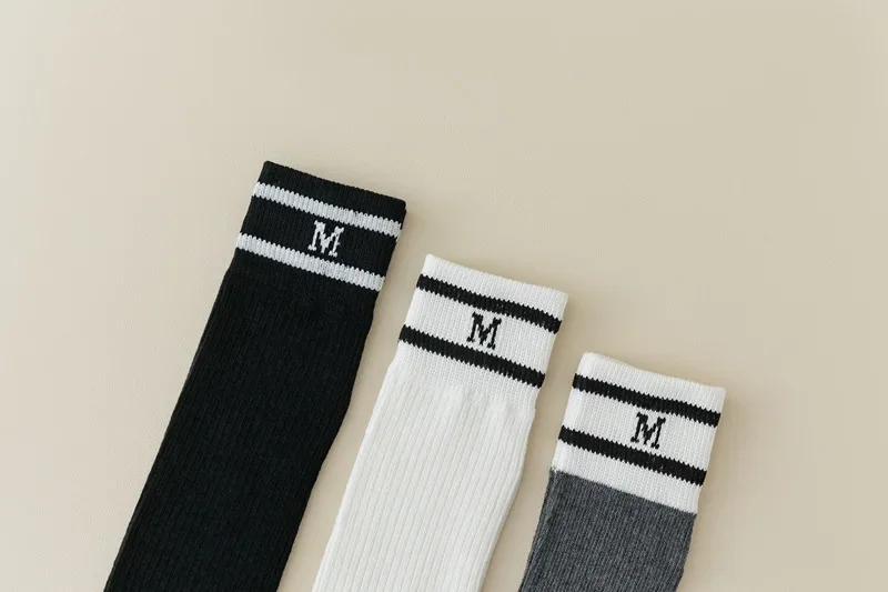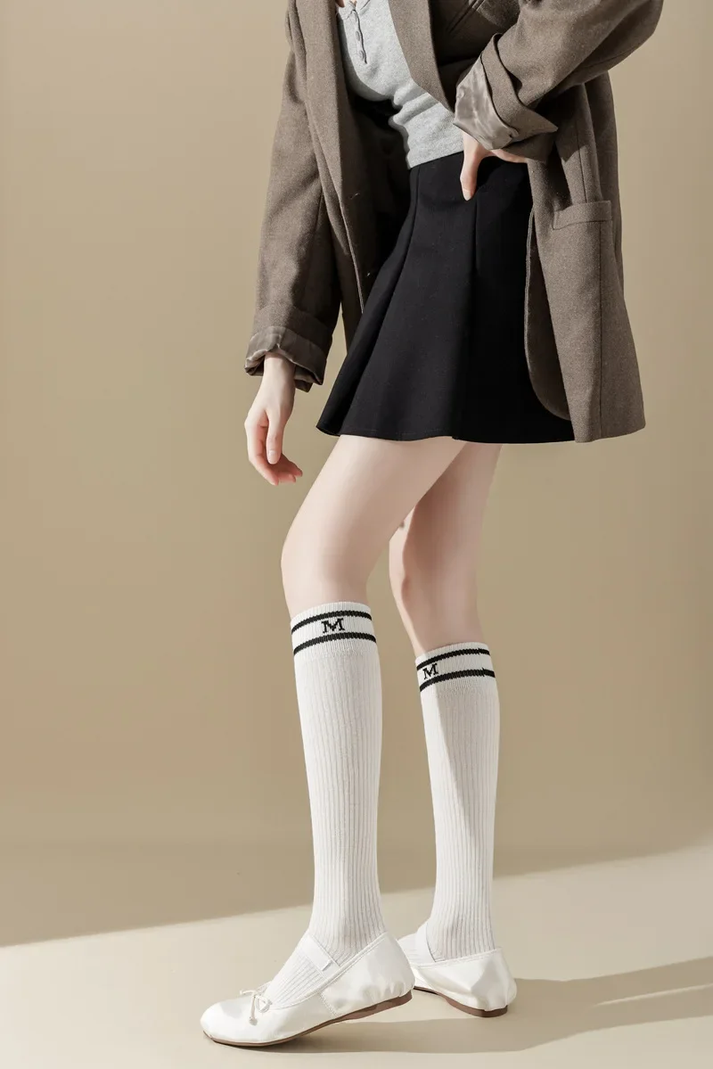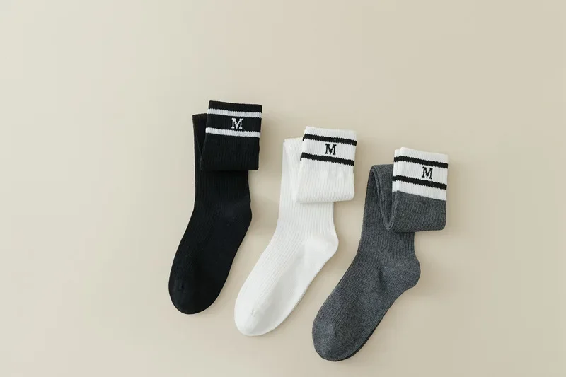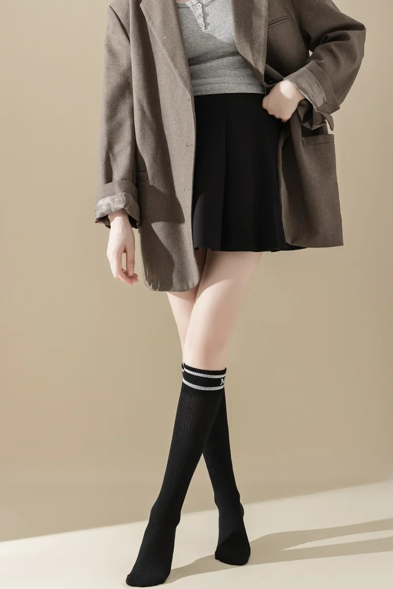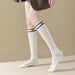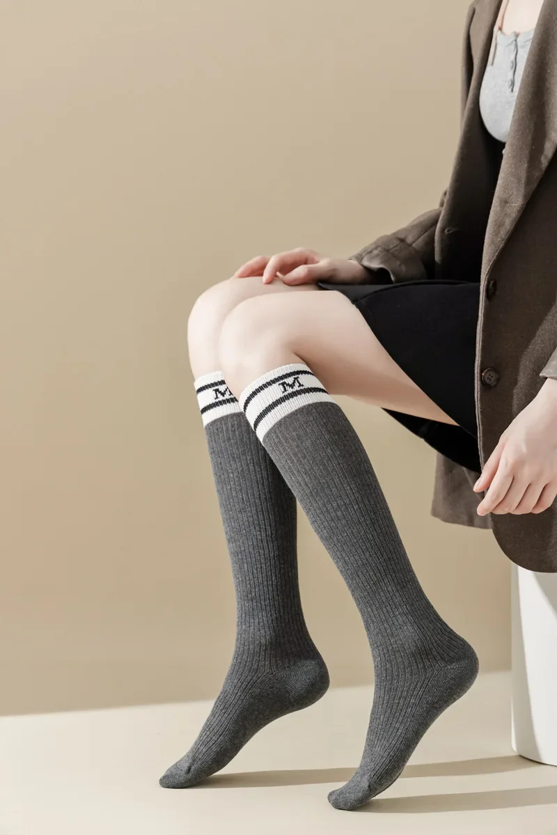 Lbsfy Cotton Women Stockings Japanese Style School Girls Long Socks Stocking Letter Embroidery Solid Color Black White Gray Knee Socks