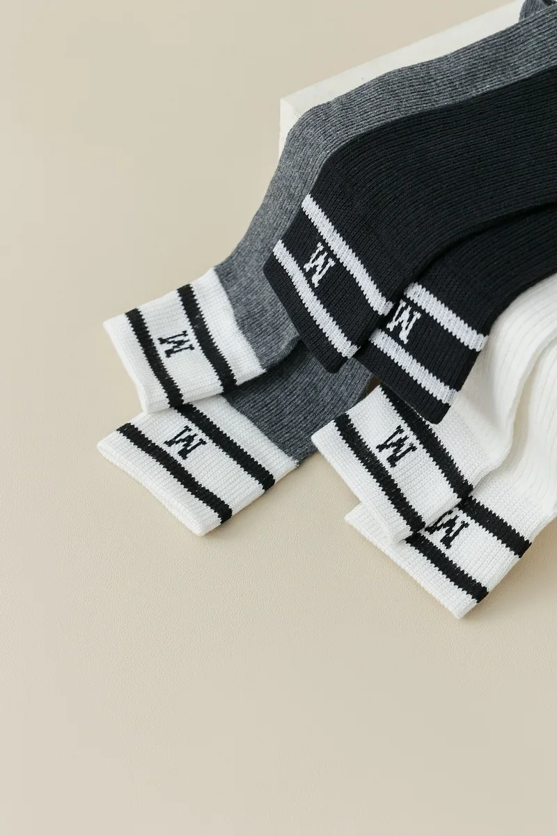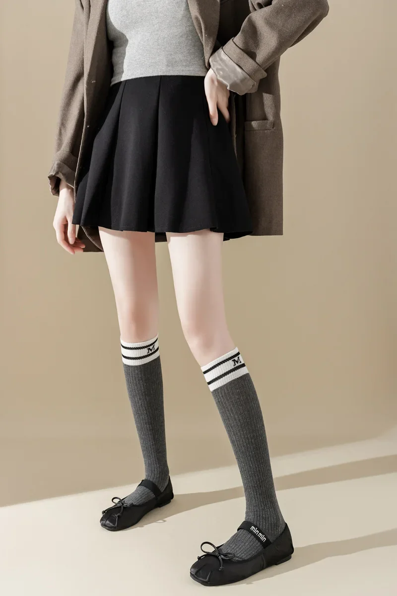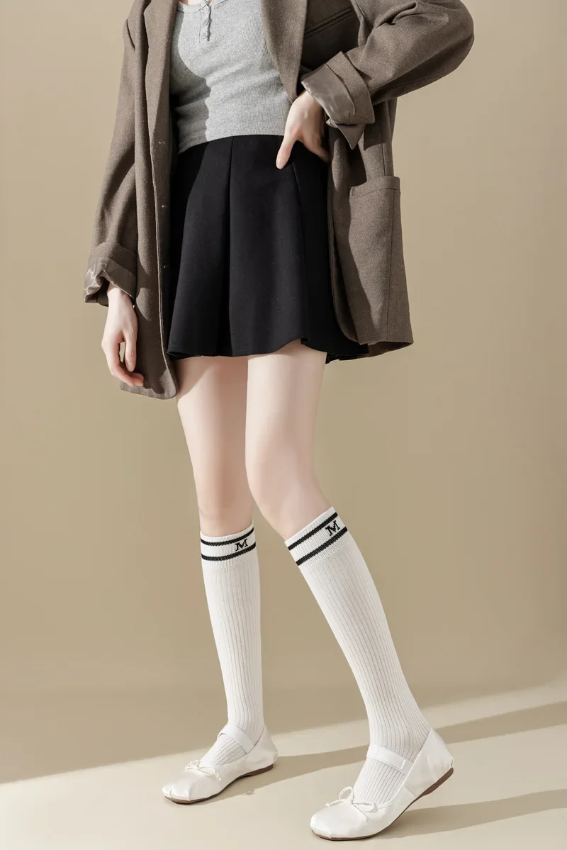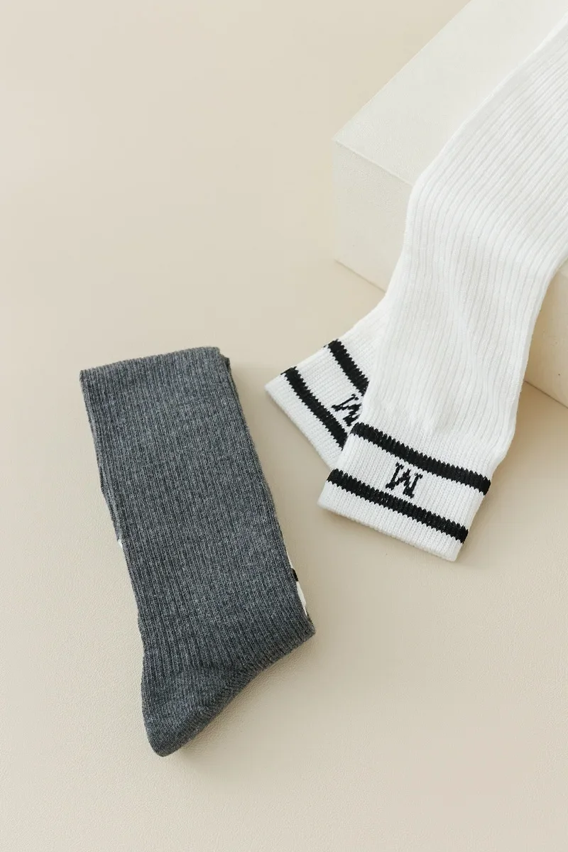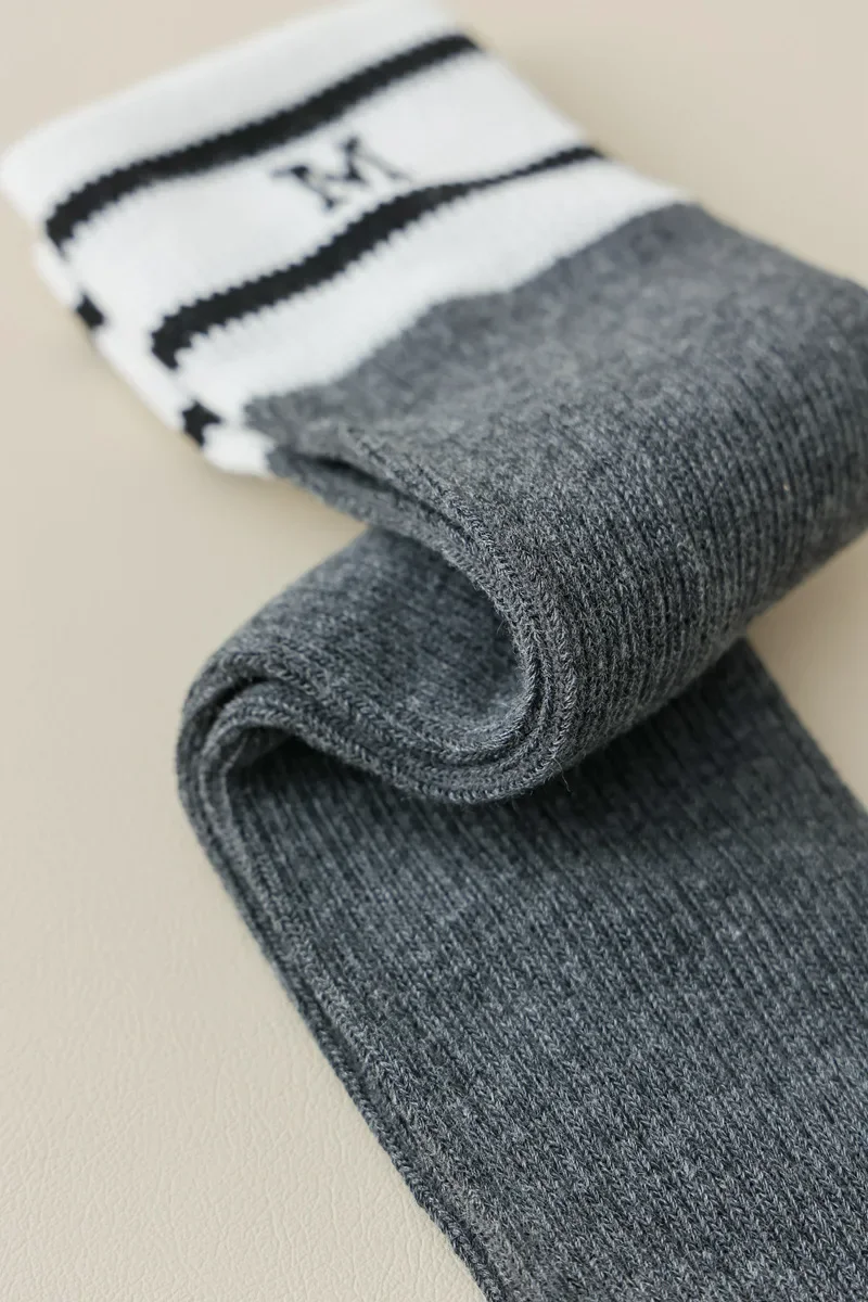 Lbsfy Cotton Women Stockings Japanese Style School Girls Long Socks Stocking Letter Embroidery Solid Color Black White Gray Knee Socks