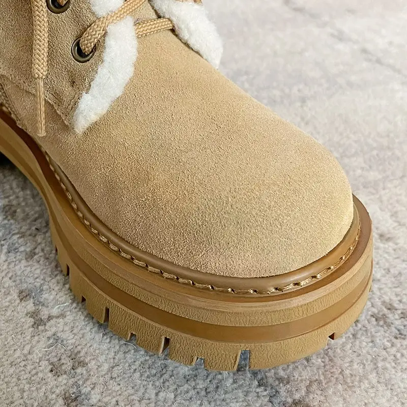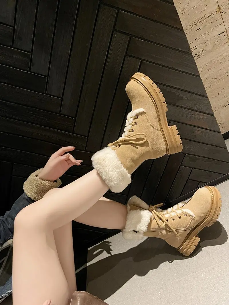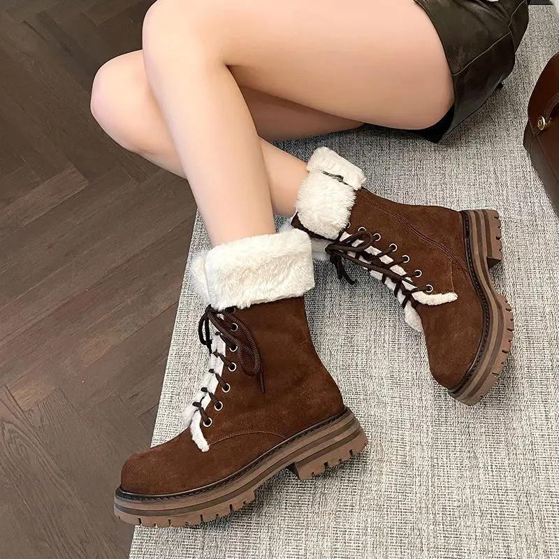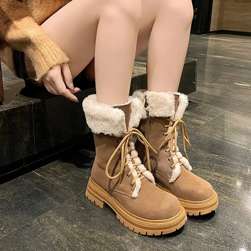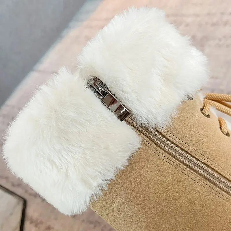 LBSFY - Cow Suede Leather Boots Women Lace Up Platform Thick Fur Warm Winter Snow Boots Ladies Fashion Ankle Boots Shoes