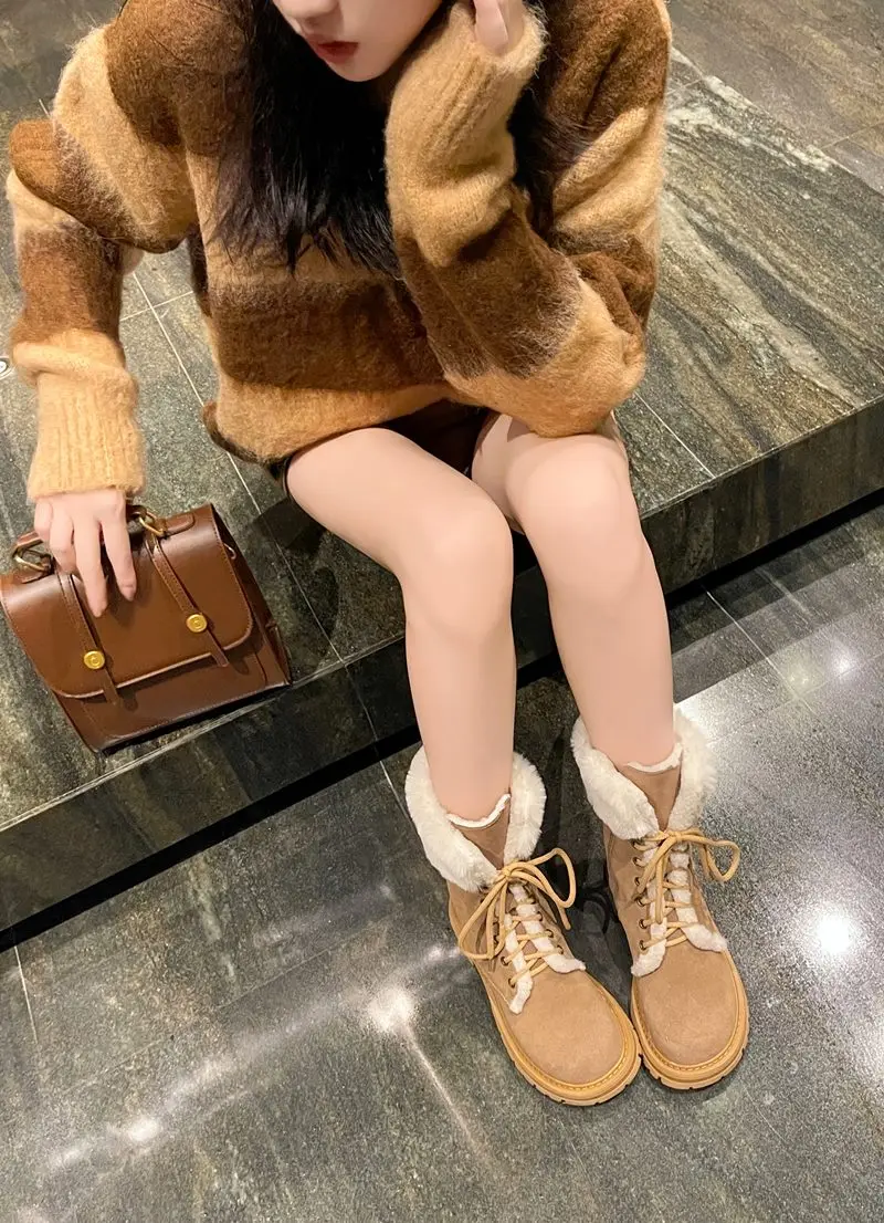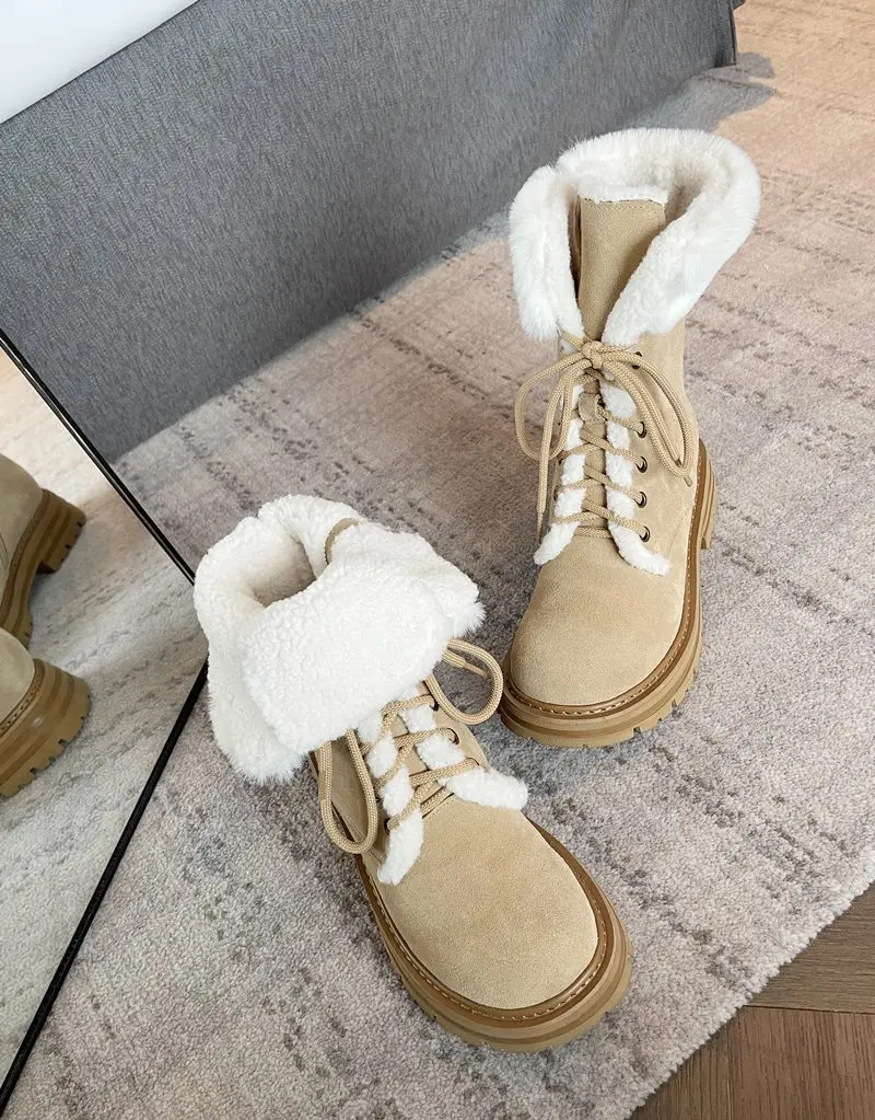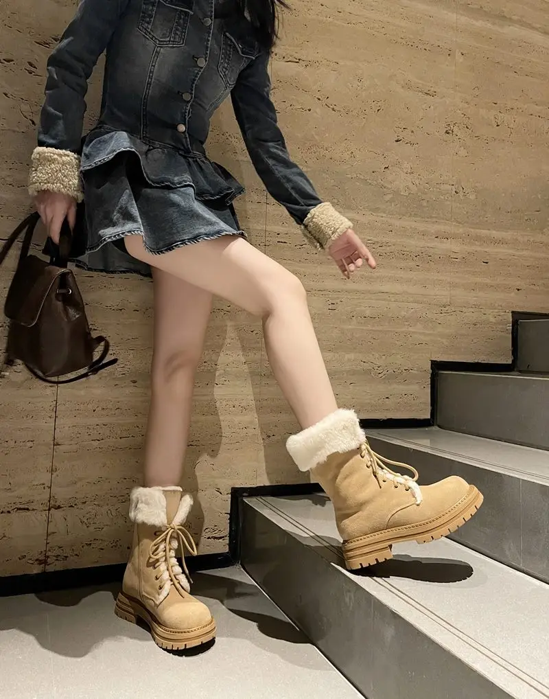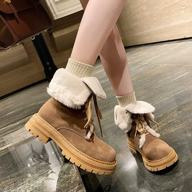 LBSFY - Cow Suede Leather Boots Women Lace Up Platform Thick Fur Warm Winter Snow Boots Ladies Fashion Ankle Boots Shoes