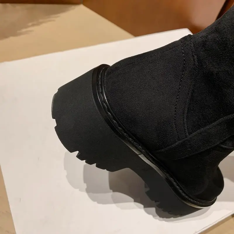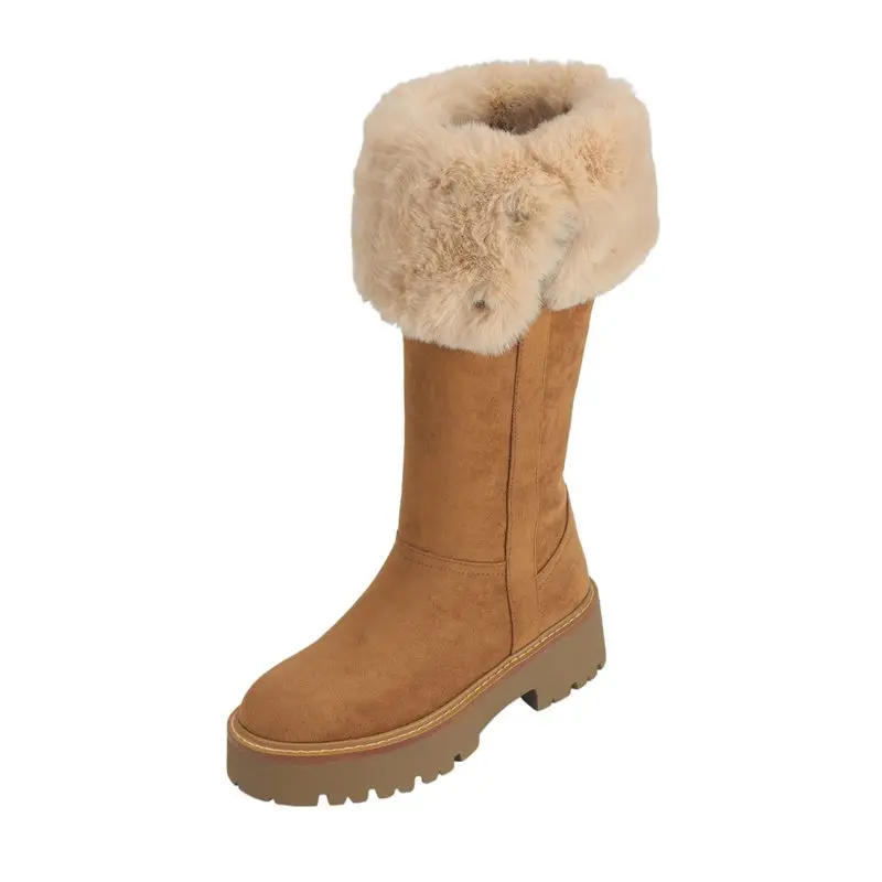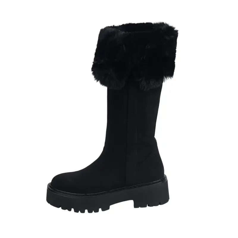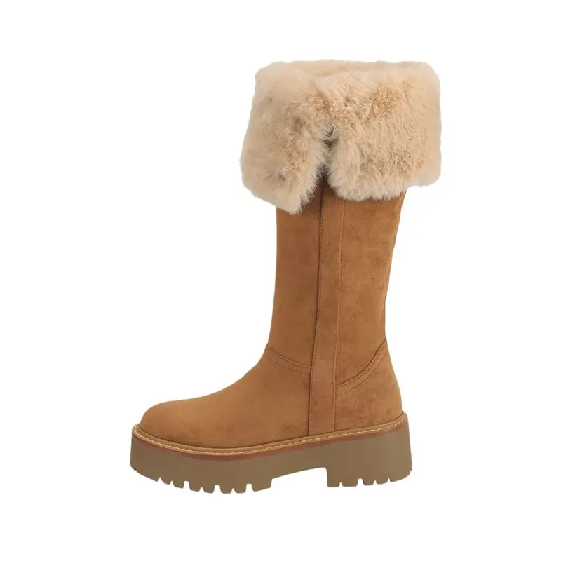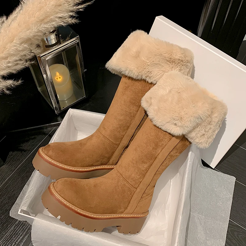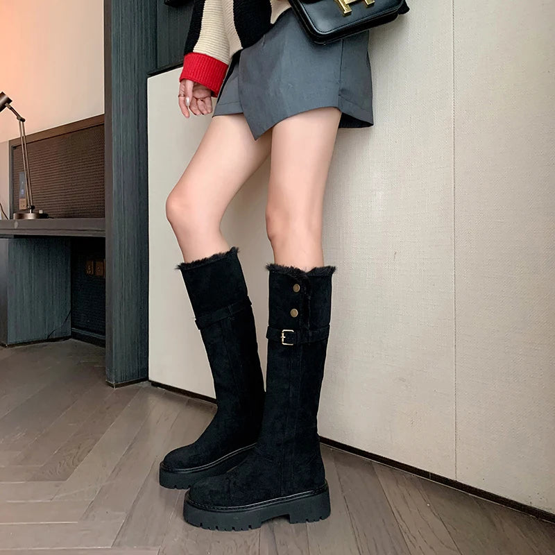 LBSFY - Cow Suede Leather Boots Women Slip On Wool Warm Winter Knee High Boots Handmade Ladies Platform Snow Boots Shoes