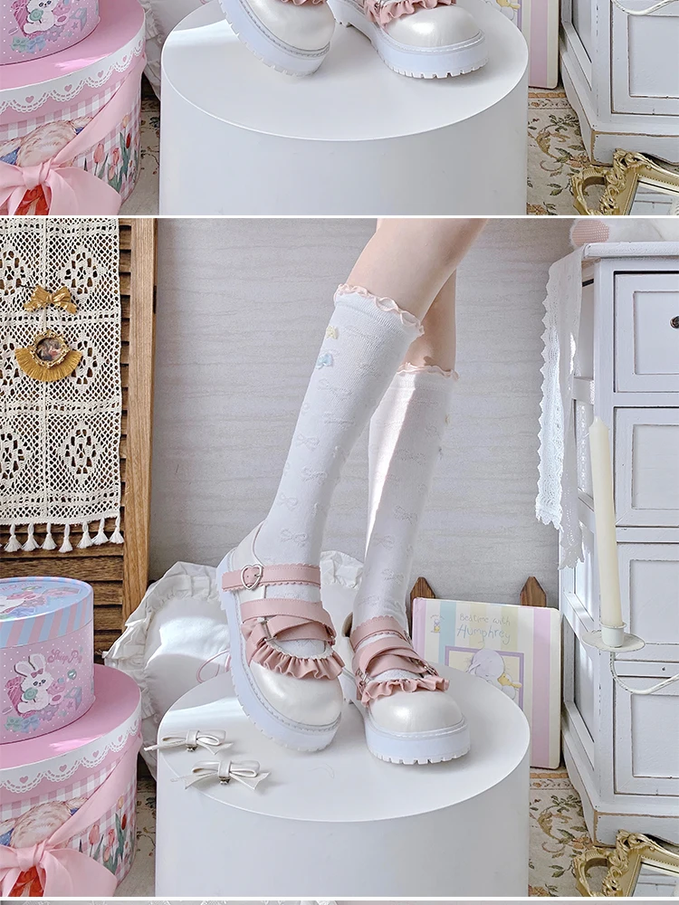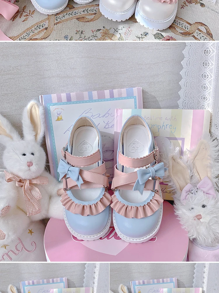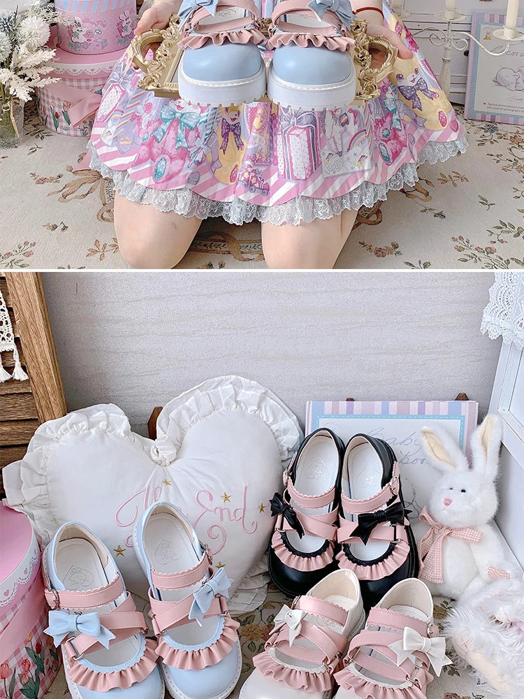 LBSFY - Cute Bowknot Loli Shoes Women's Fashion Tea Party Round-toe Wedge Lolita Shoes Kawaii Bow Lolita Jk Girls' Shoes