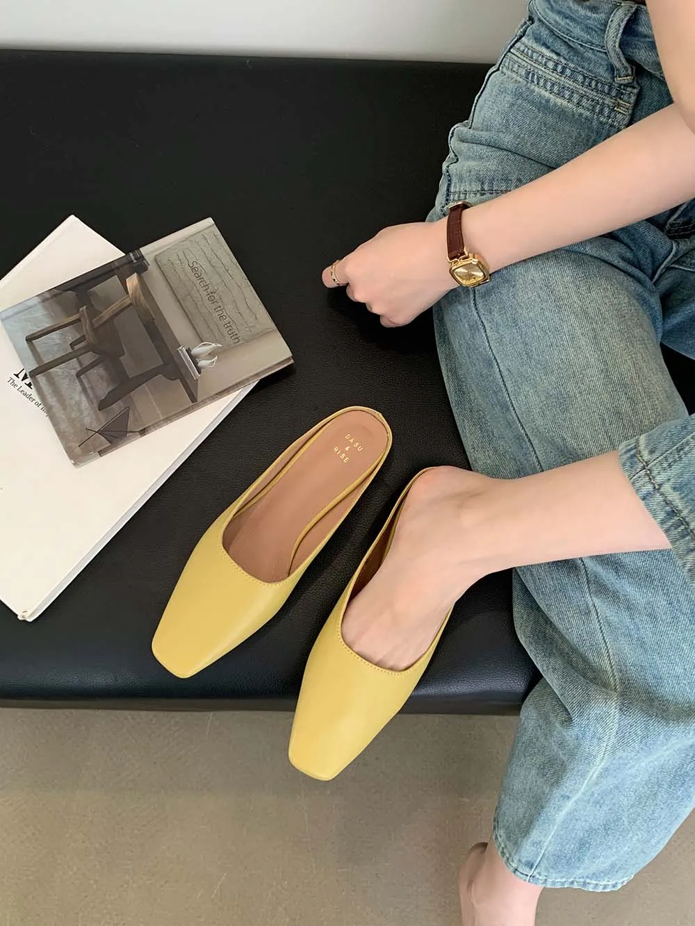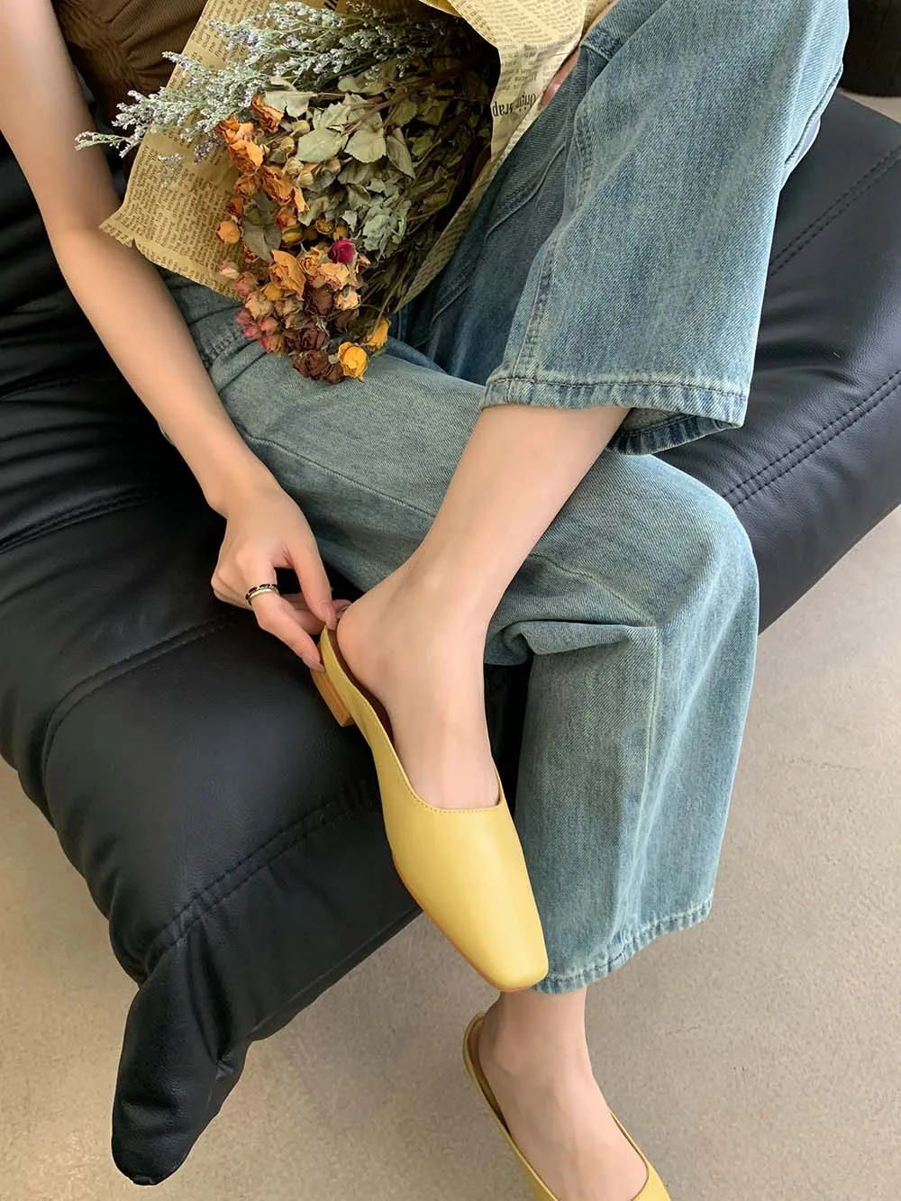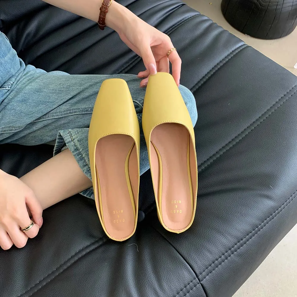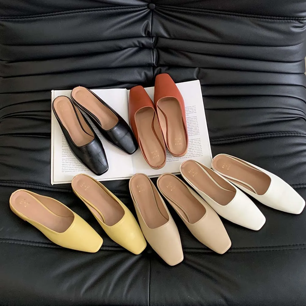 LBSFY - Cute Women Slippers Round Toe Summer Outside Slides Mules Shoes Flat Low Heeled Candy Color Party Dress Shoes Woman Size 35-39