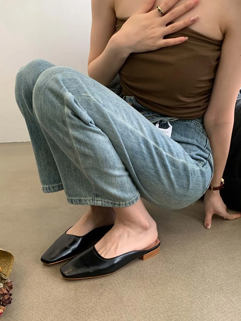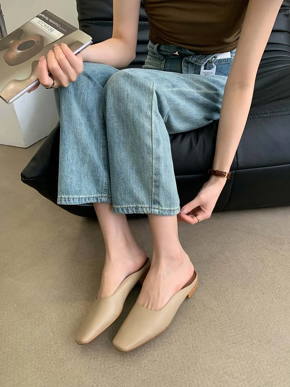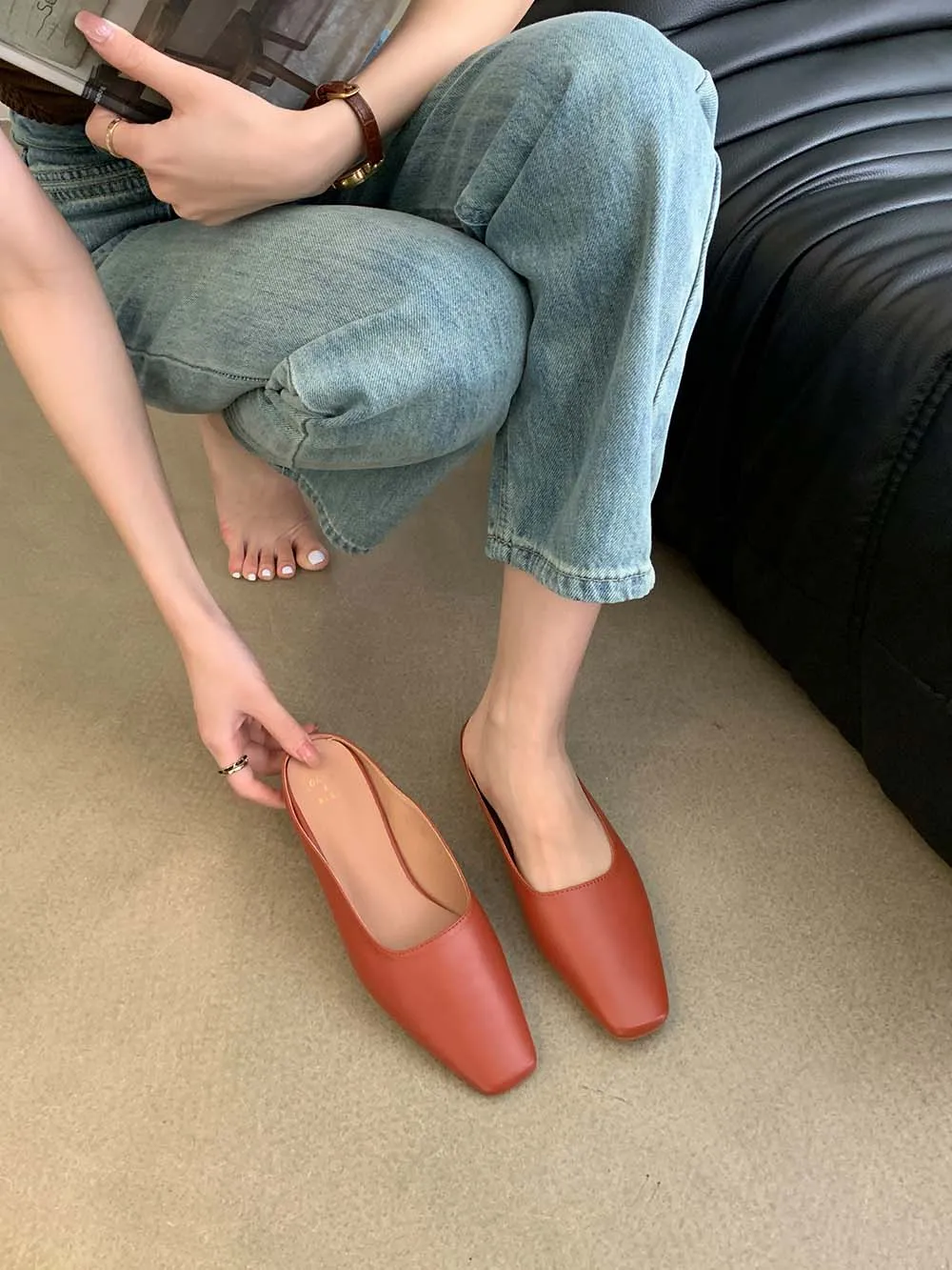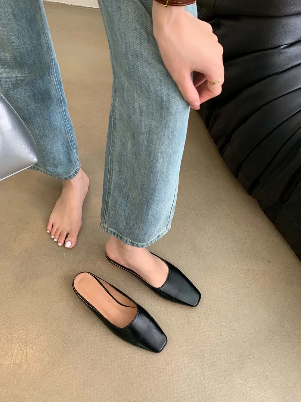 LBSFY - Cute Women Slippers Round Toe Summer Outside Slides Mules Shoes Flat Low Heeled Candy Color Party Dress Shoes Woman Size 35-39