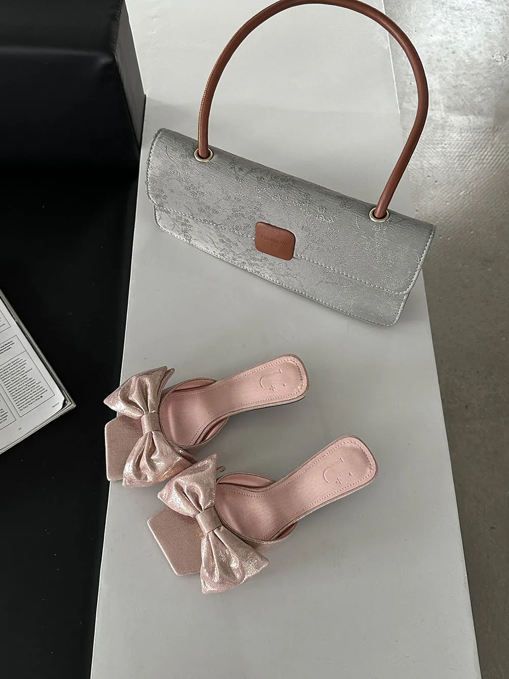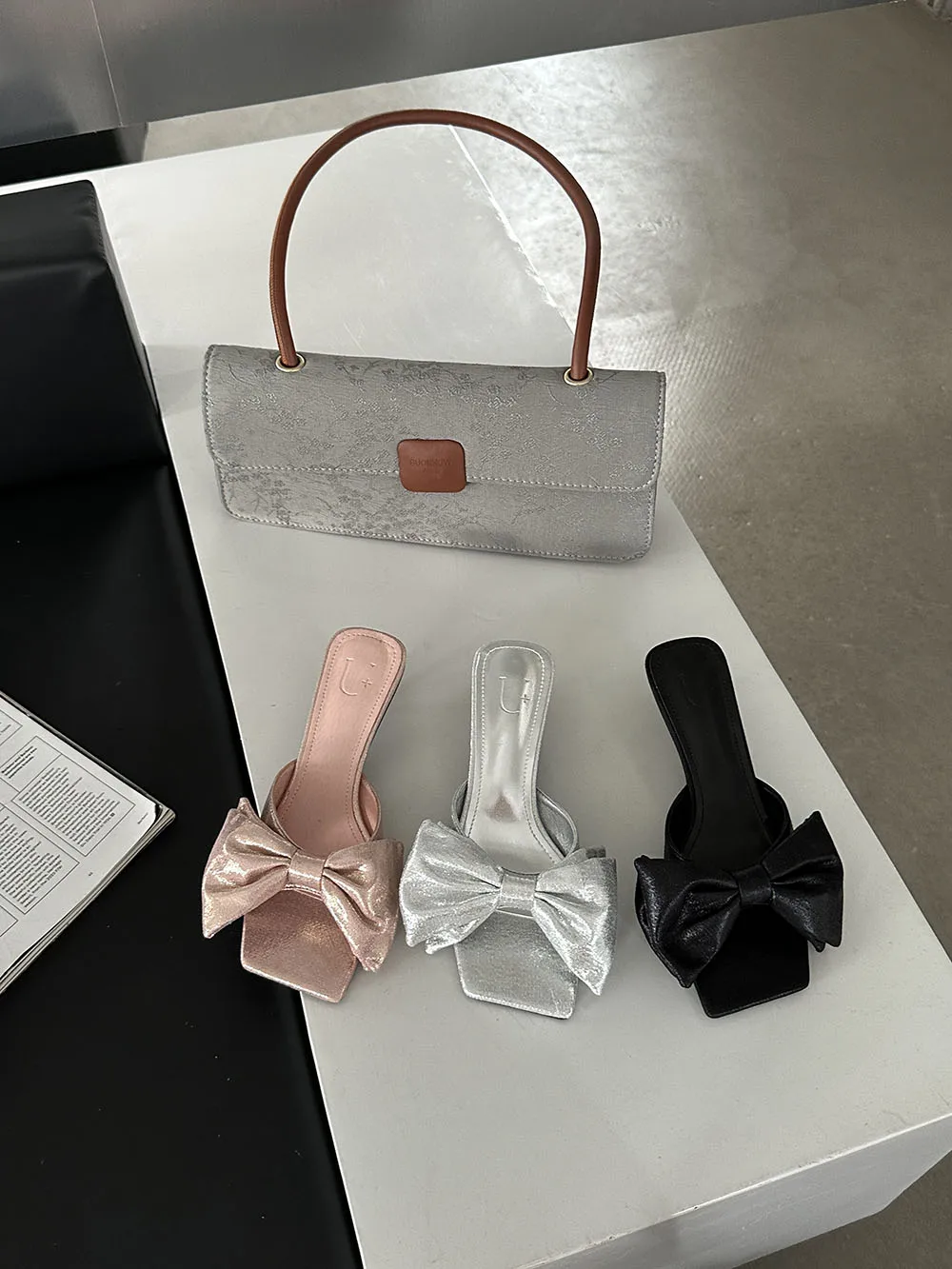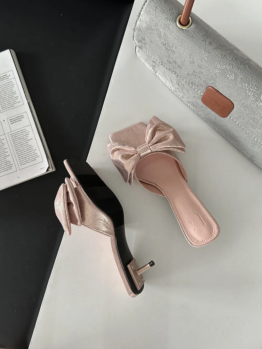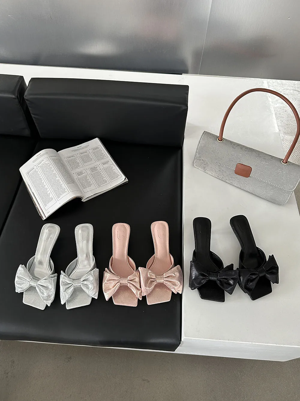 LBSFY - Design Women Sandals Slides Slippers Black Pink Silver Summer Outside Mules Shoes Thin Mid Heels Party Pumps Casual Dress 39