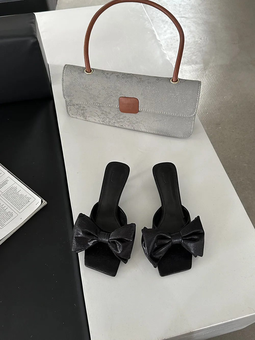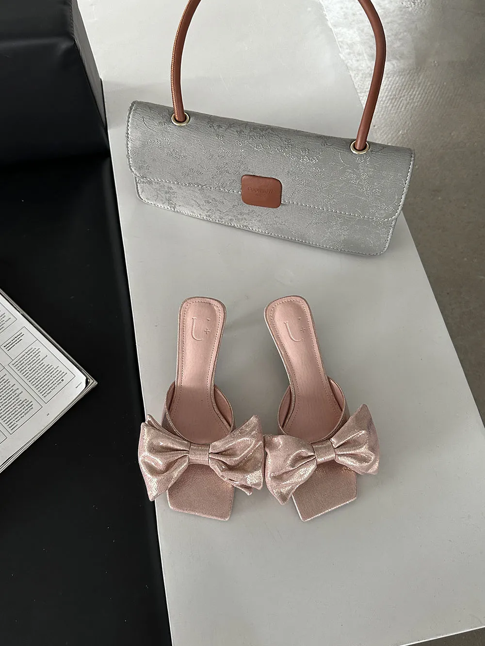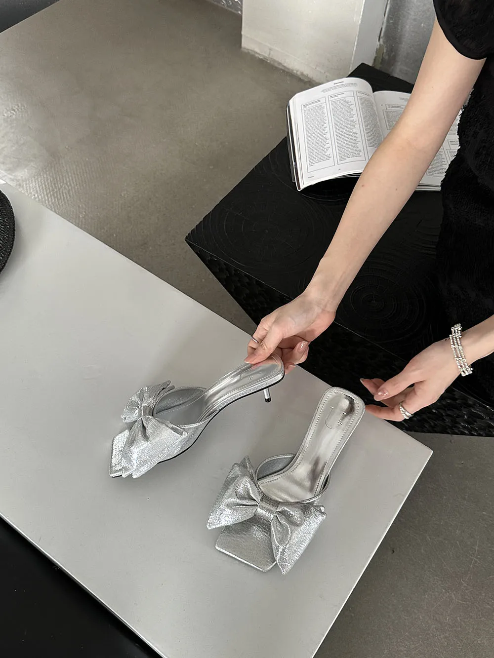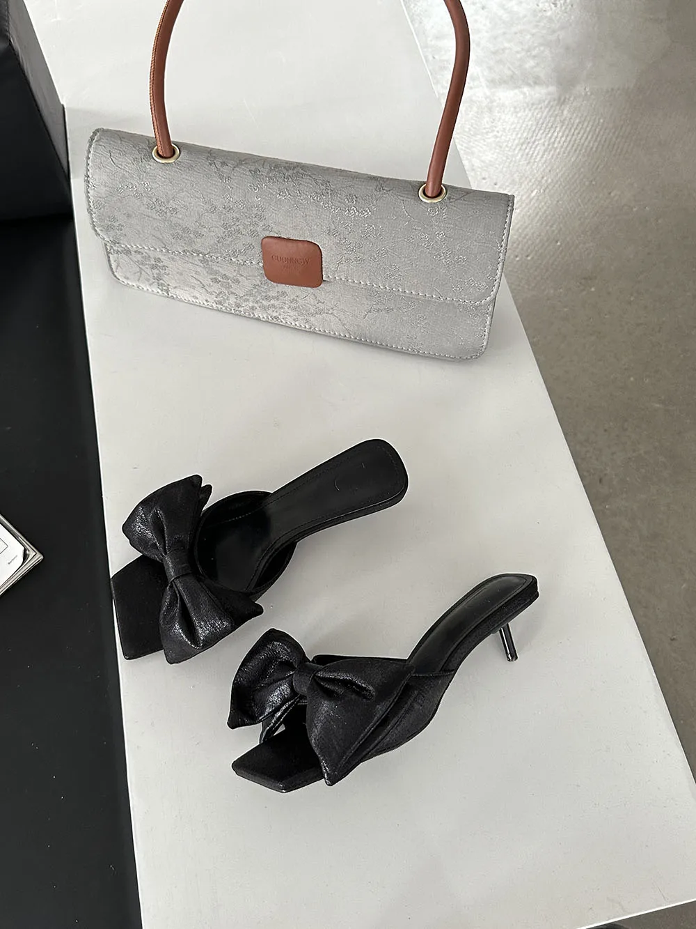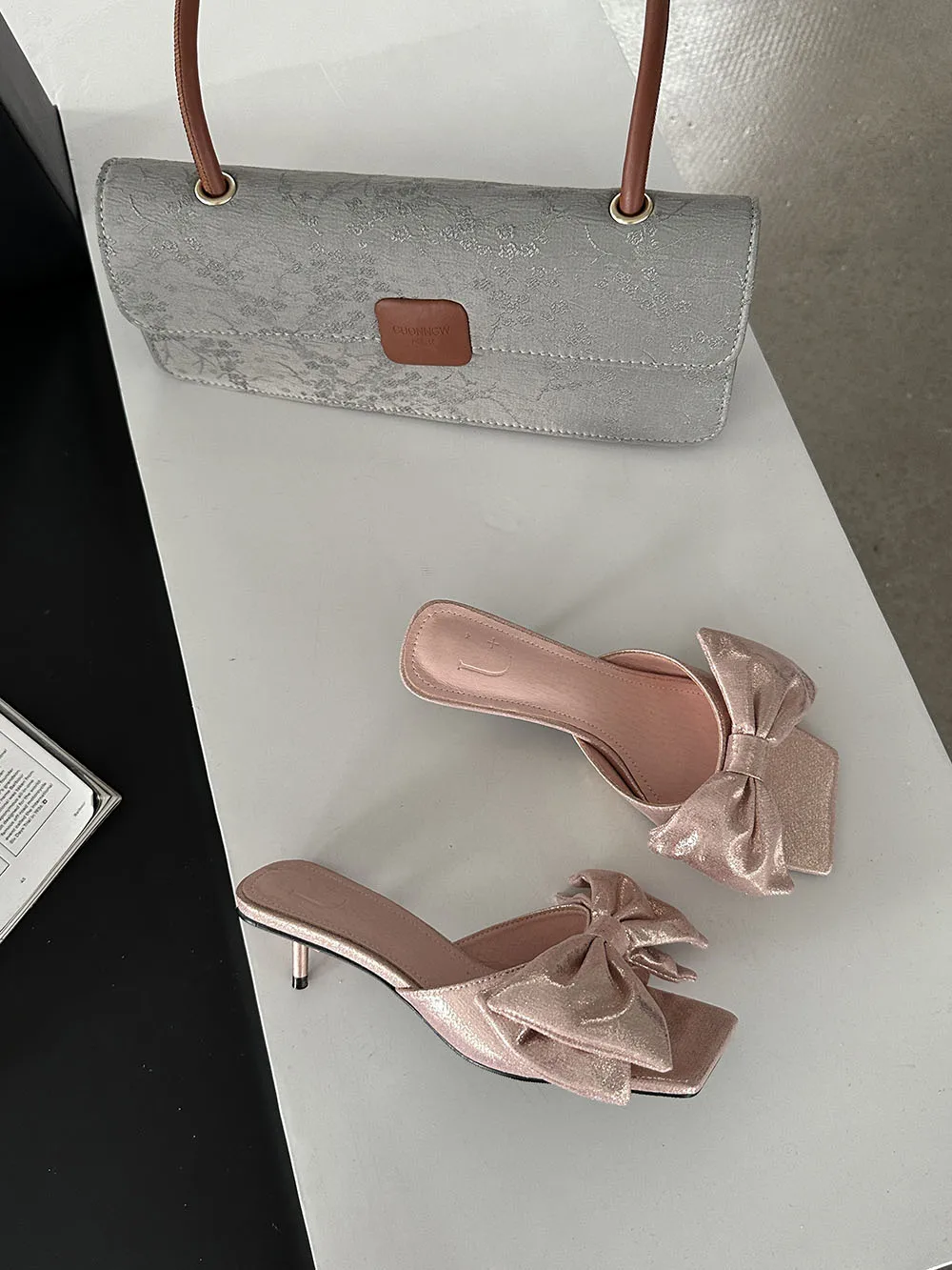 LBSFY - Design Women Sandals Slides Slippers Black Pink Silver Summer Outside Mules Shoes Thin Mid Heels Party Pumps Casual Dress 39