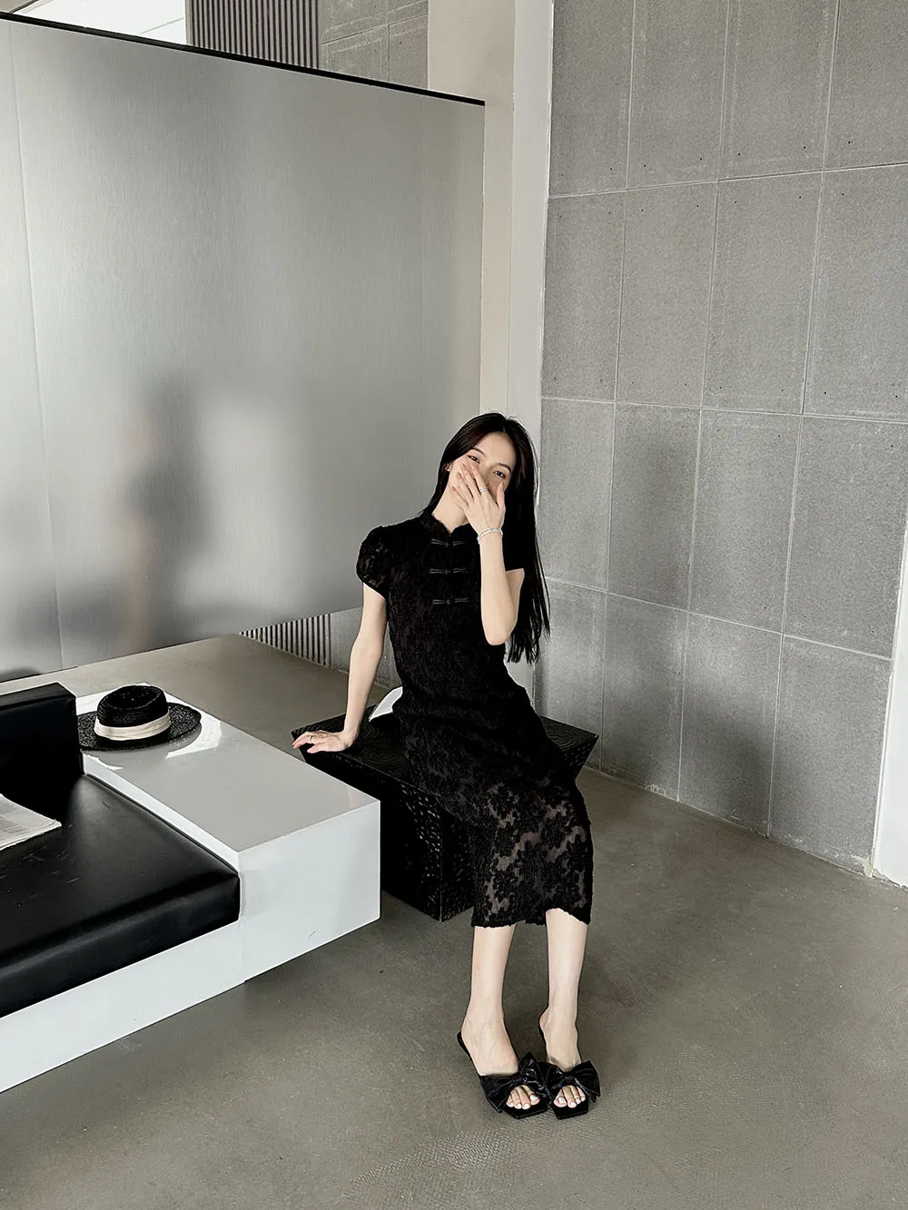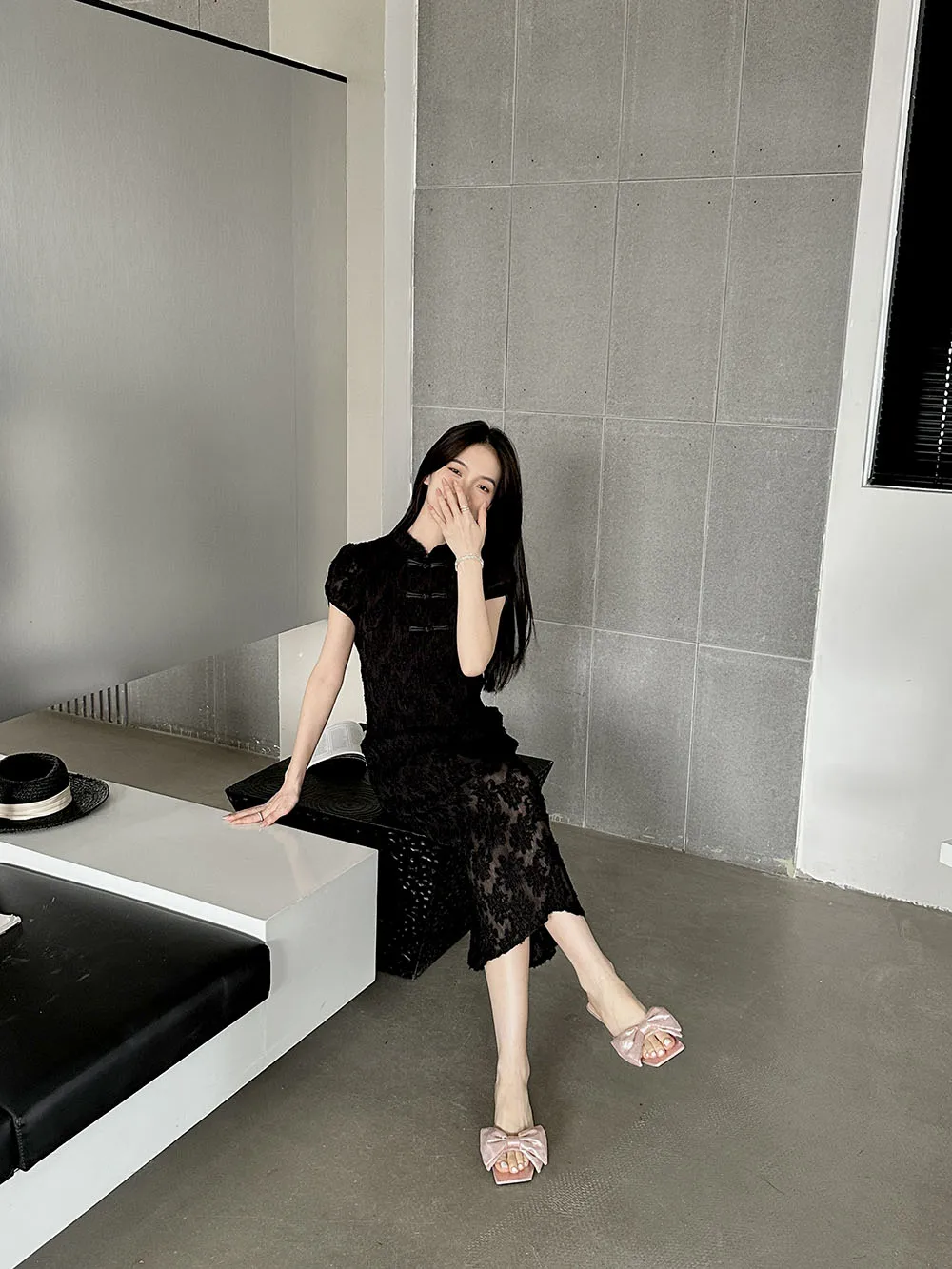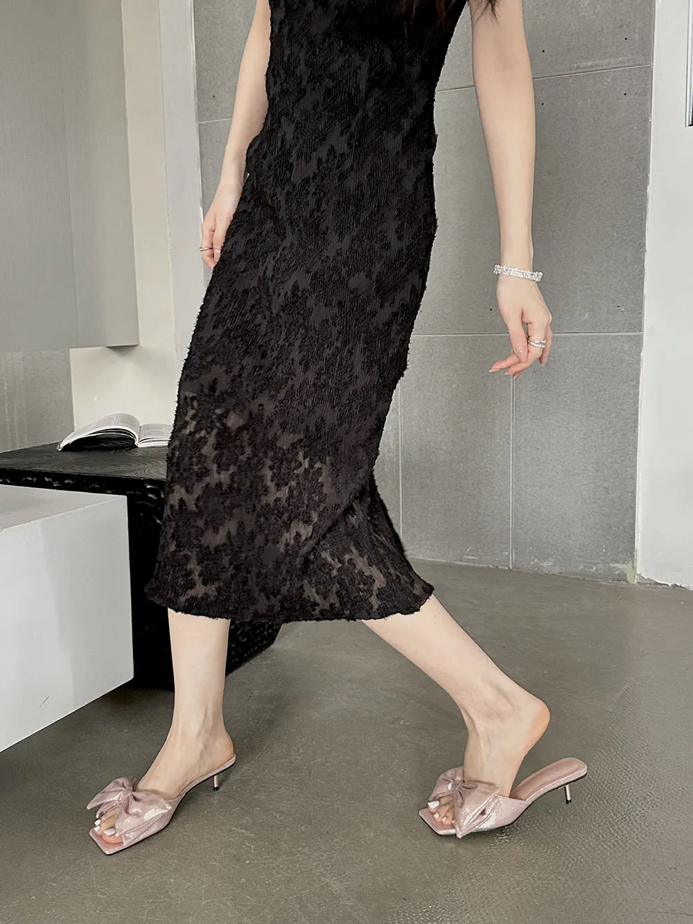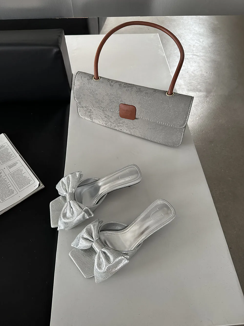 LBSFY - Design Women Sandals Slides Slippers Black Pink Silver Summer Outside Mules Shoes Thin Mid Heels Party Pumps Casual Dress 39