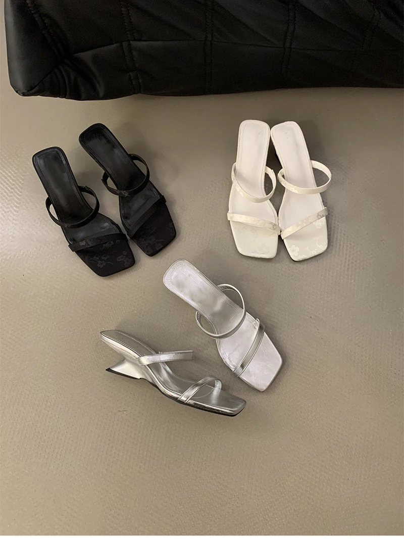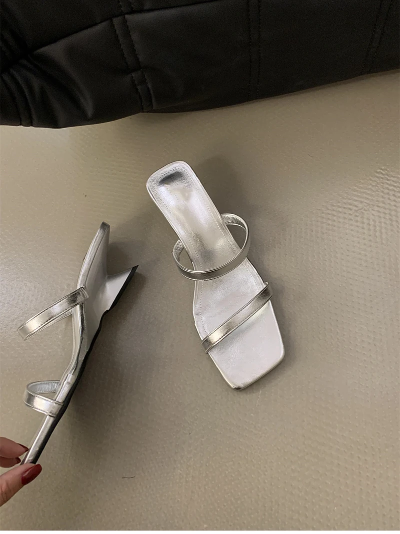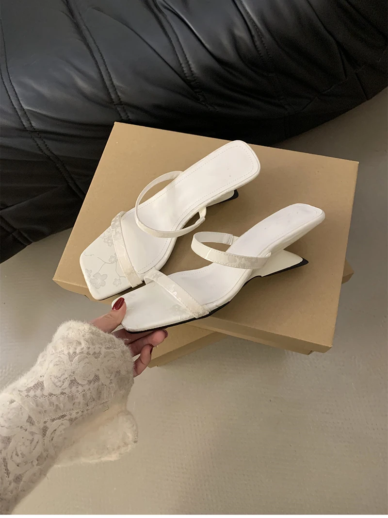LBSFY - Designer 2024 Summer Women Slippers Fashion Narrow Band Slides Outdoor Casual Alien Heel Office Lady Sandalias