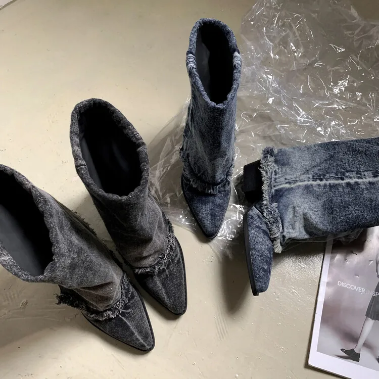LBSFY - Designer cowboy boots western ankle denim boots for women