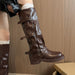 LBSFY -Designer Pleated Buckle Knight Boots Women Autumn Brown PU Leather Mid Calf Boots Woman Slip-On Thick Heel Riding Botas Mujer