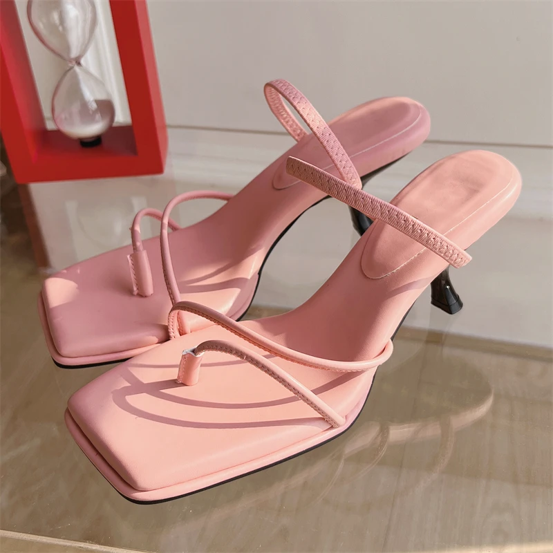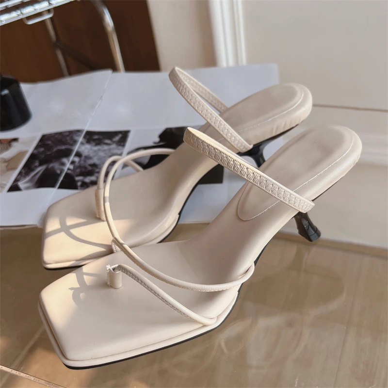 LBSFY - Designer Square Clip Toe Slide Woman Slippers Summer Narrow Band Party Prom Low Heels Sandals Flip Flops Shoes