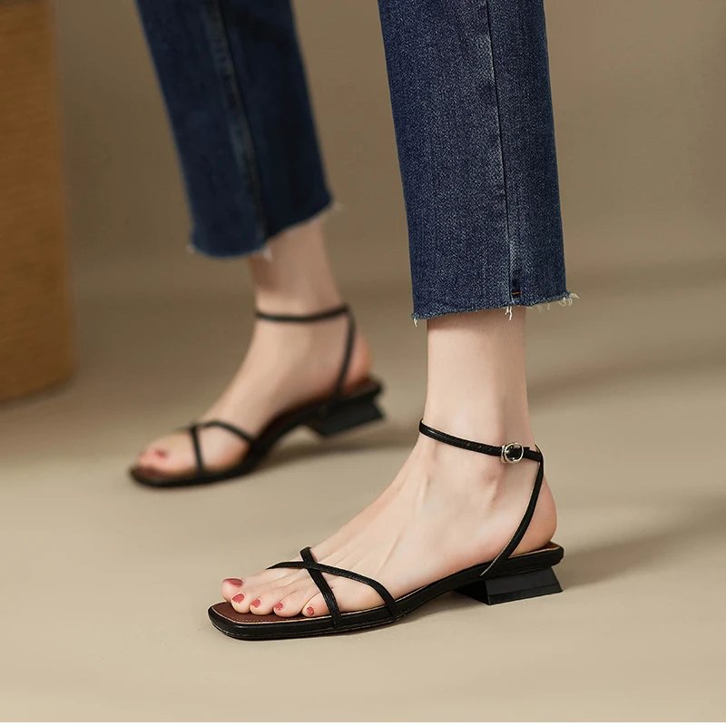 LBSFY - Designer Summer Gladiator Woman Sandals Fashion Open Toe Narrow Band Low Heel Ladies Outdoor Beach Vacation Sandalias