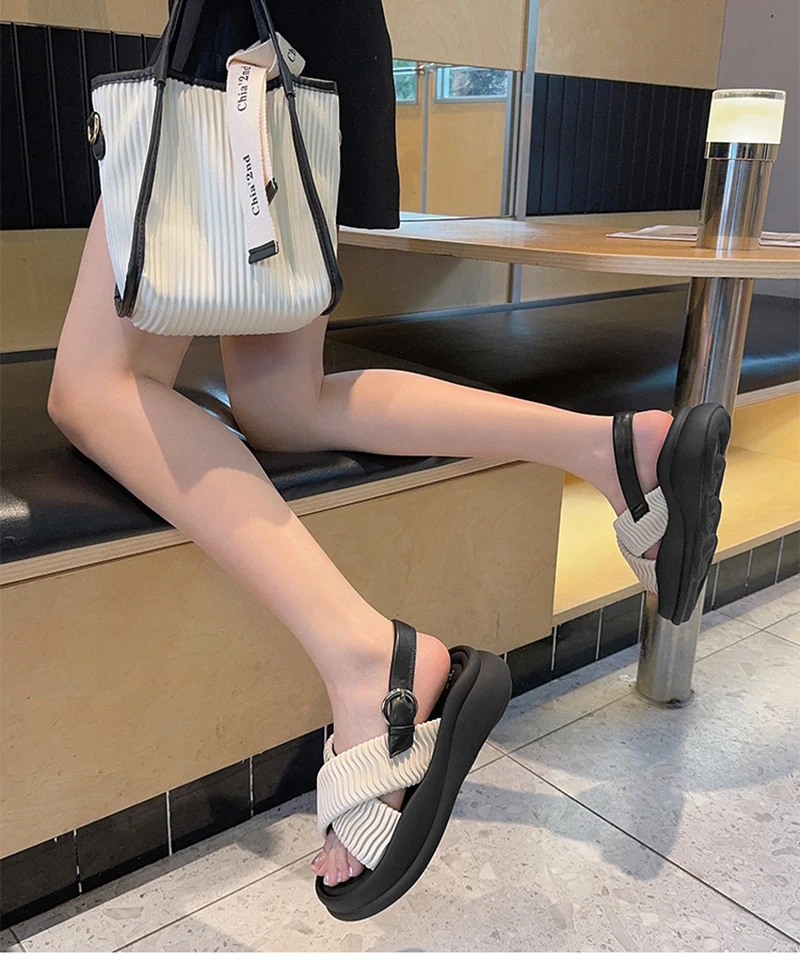 LBSFY - Designer Summer Open Toe Women Sandals Fashion Soft Sole Platform Flats Shoes Outdoor Casual Office Lady Sandalias