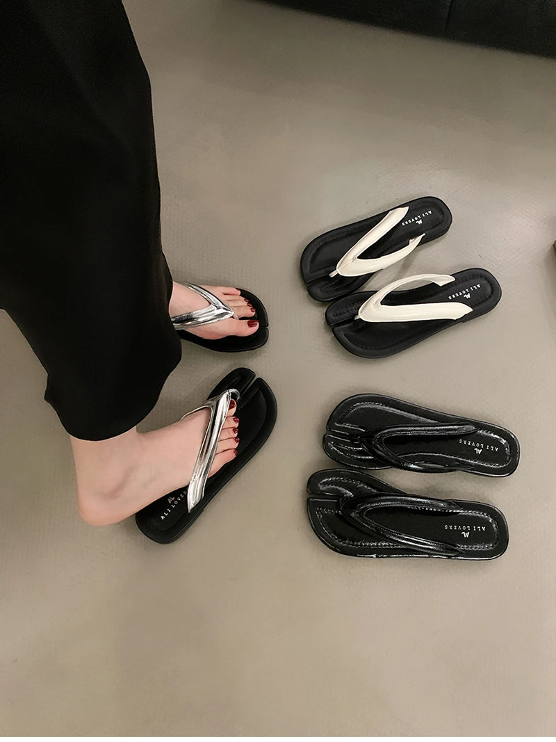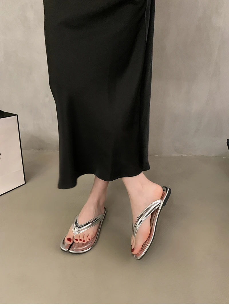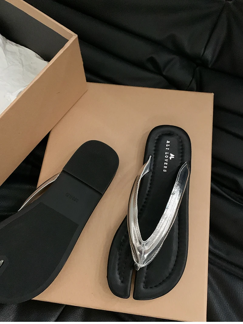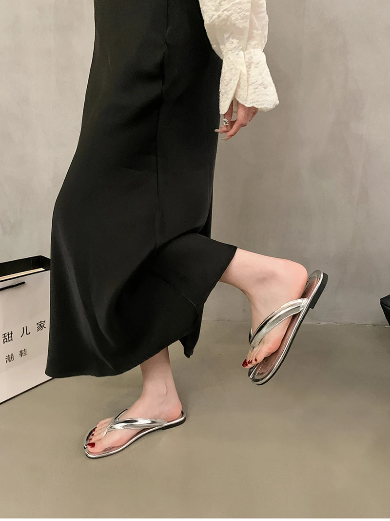 LBSFY - Designer Summer Woman Slippers Fashion Clip Toe Flats Silvery Ladies Outdoor Beach Vacation Sandalias Flip Flop