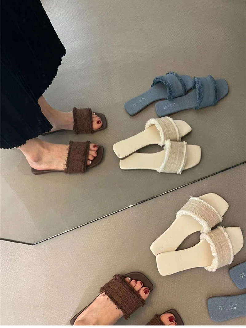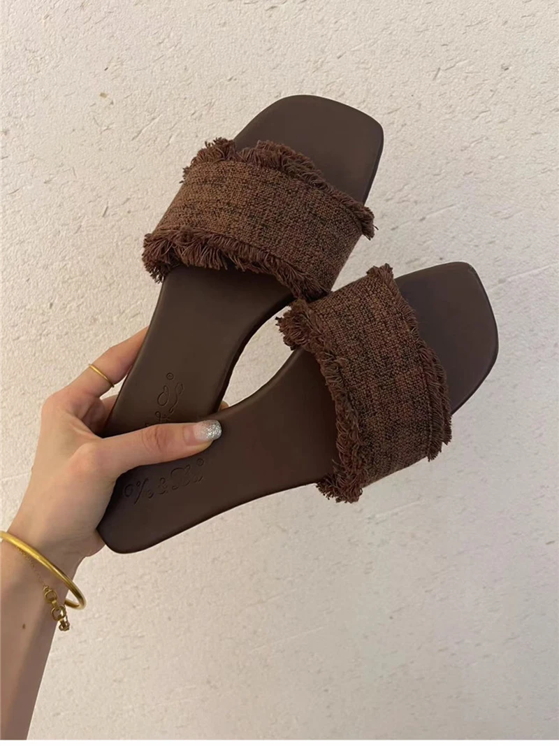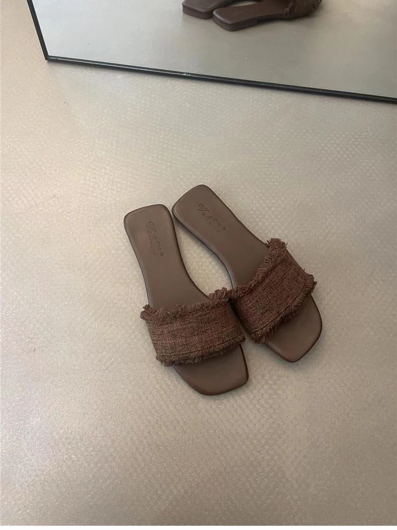 LBSFY - Designer Summers Tassels Women Slippers Fashion Elegant Open Toe Flats Slides Shoes Ladies Casaul Outdoor Beach Sandalias