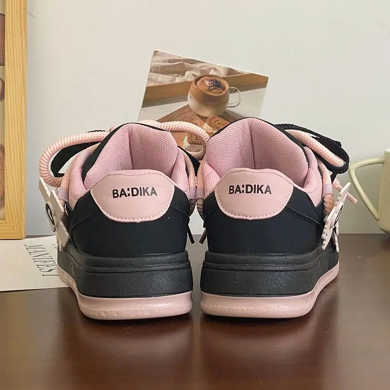 LBSFY - Designer Women Pink Breathable Flower Sneakers Cute Patchwork Shoes Thick Heel Sneakers Casual Running Platform Y2K Bread Shoes