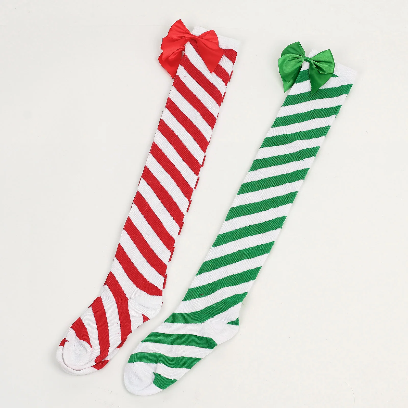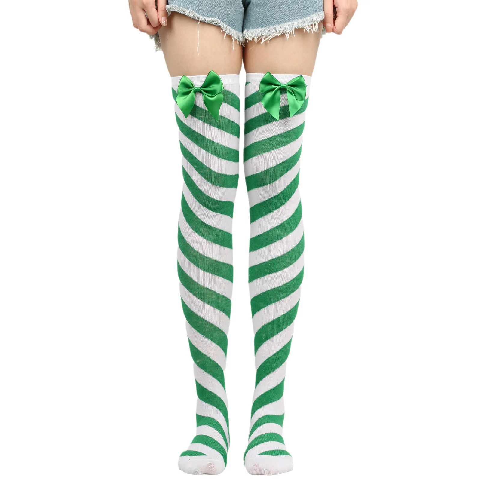 Lbsfy Diagonal Striped Women Christmas Stocking Candy Bow Socks Red Twill Stockings Stockings Knee Socks Halloween