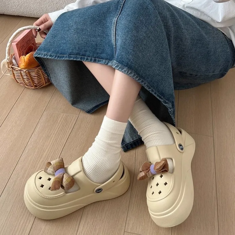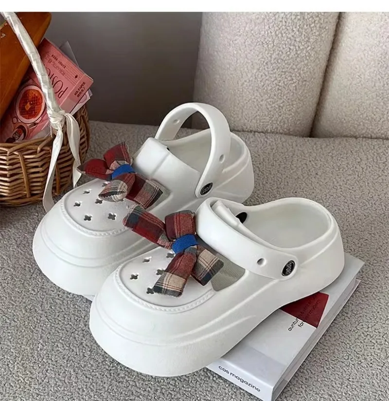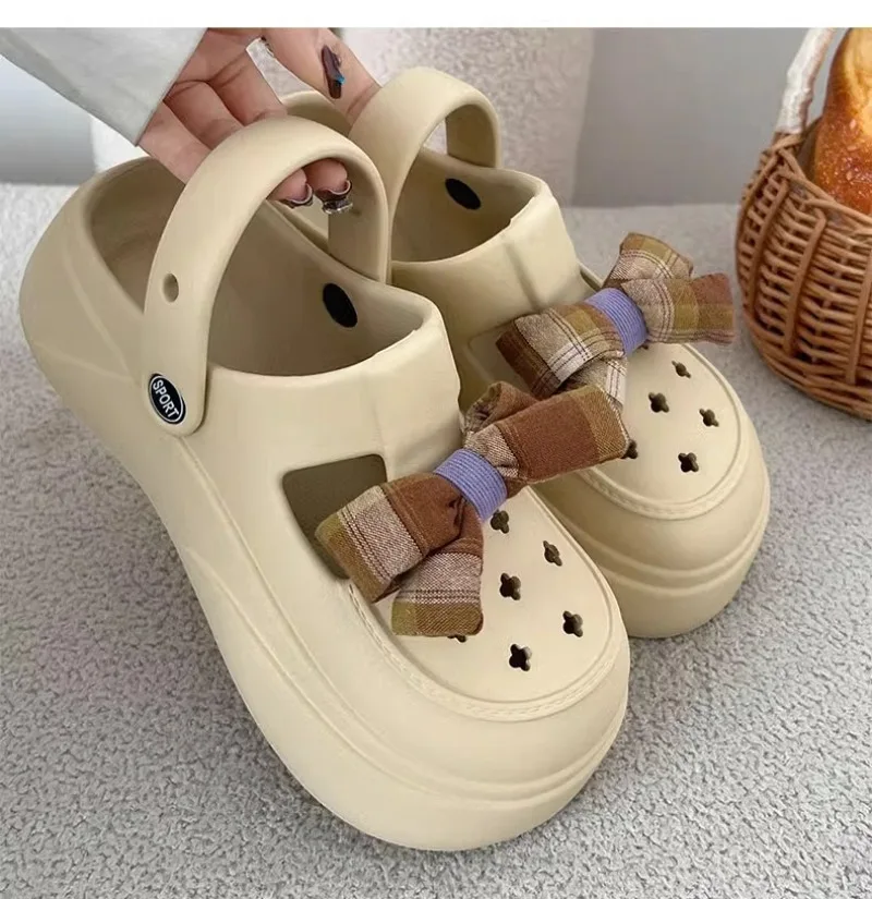 LBSFY - DIY Bow Sandals Thick Soled Women's Hole Shoes Female Summer Wear EVA Increase Beach Shoes Feeling Baotou Hole Slippers